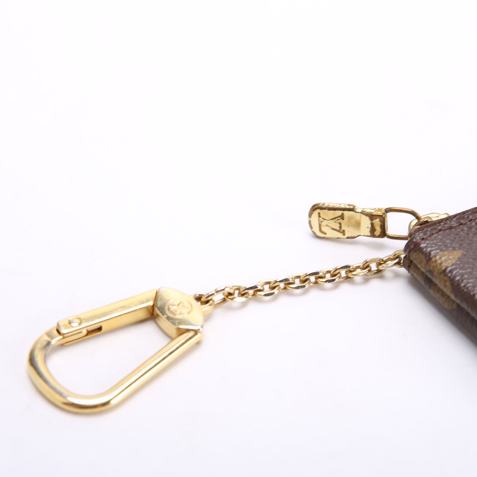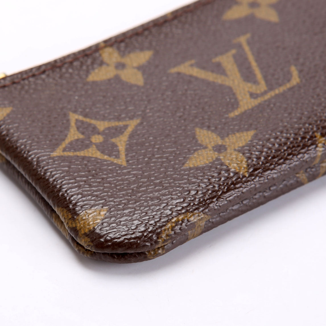 This pre-owned Louis Vuitton Pochette Cles is guaranteed 100% authentic. The exterior is in the classic Louis Vuitton Monogram coated canvas.