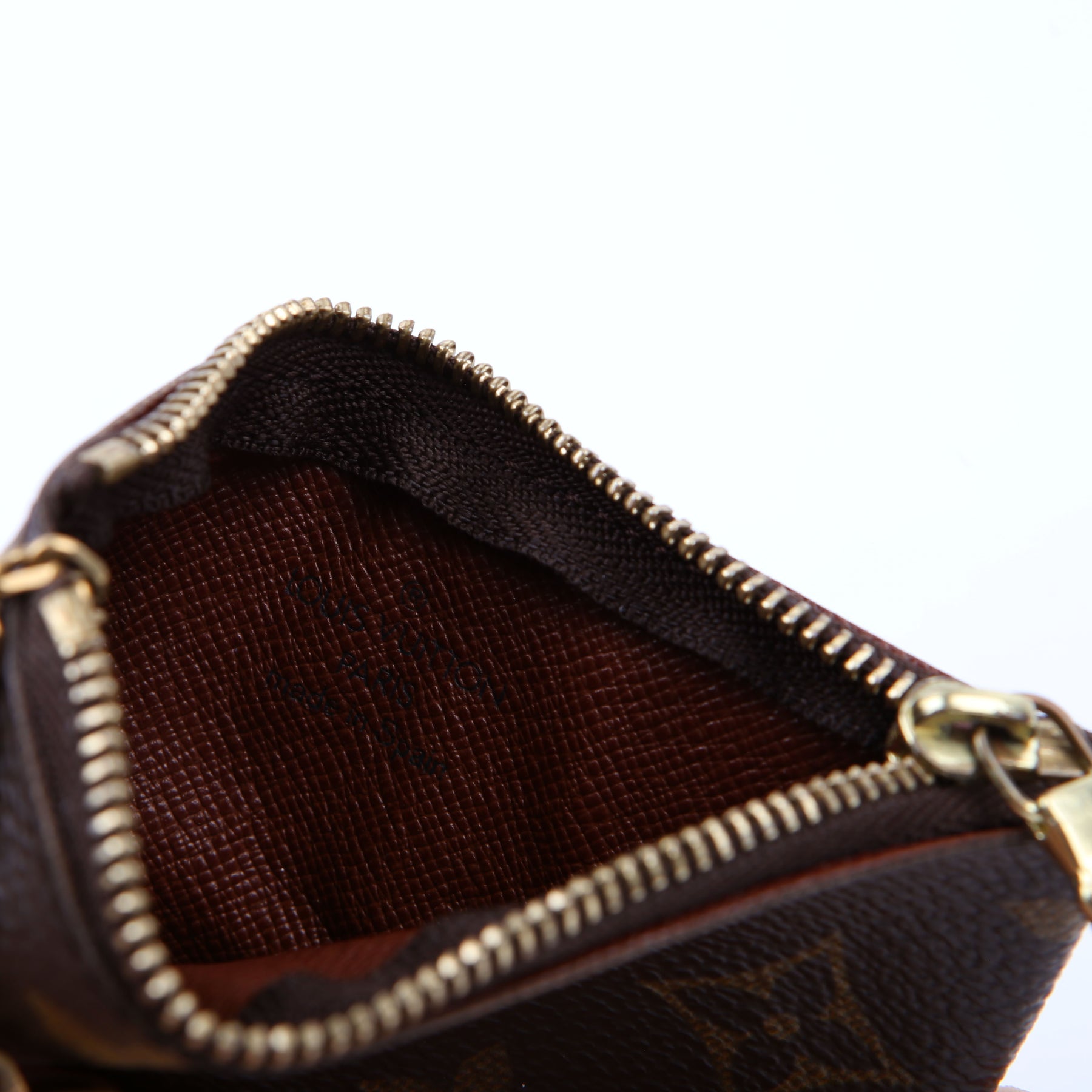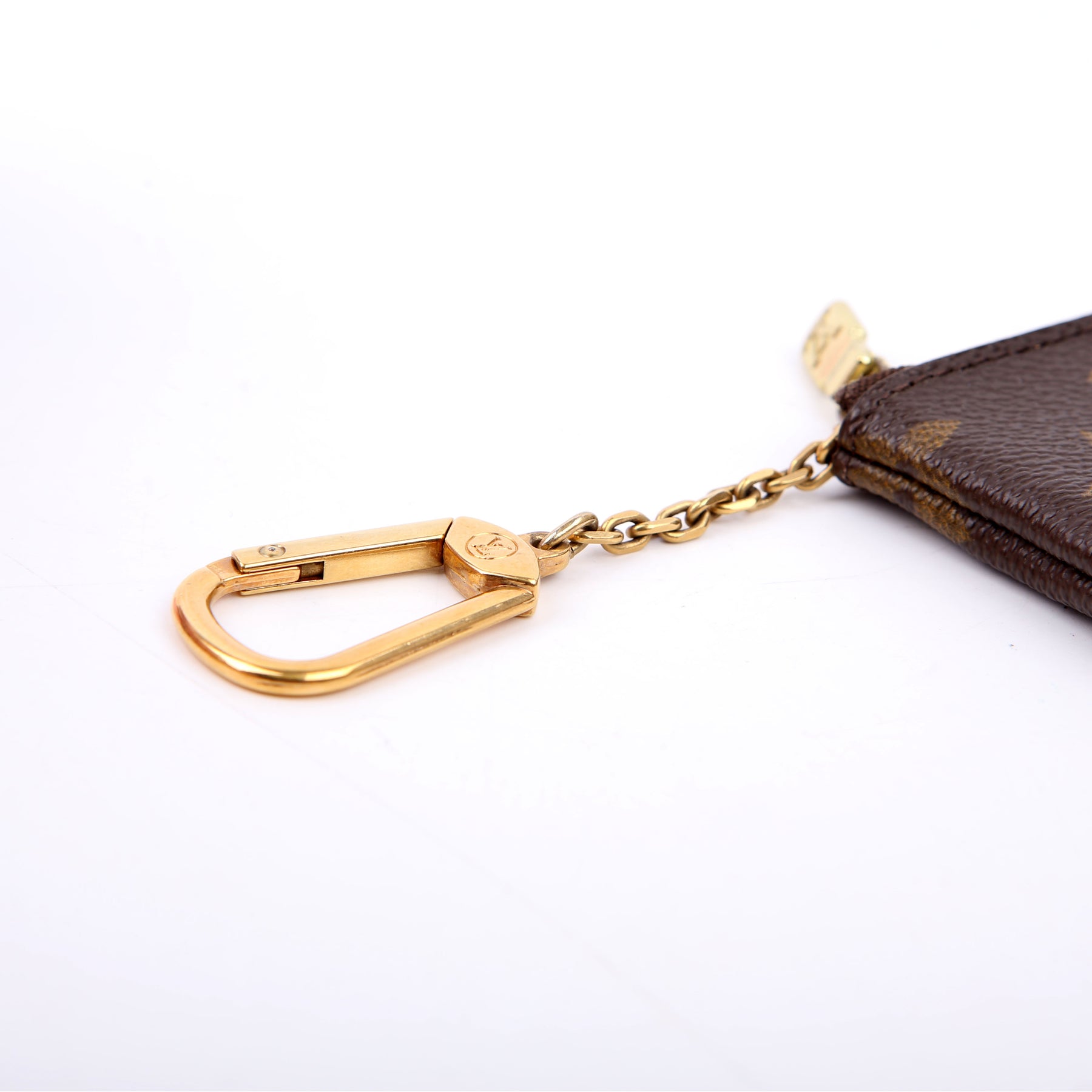 This pre-owned Louis Vuitton Pochette Cles is guaranteed 100% authentic. The exterior is in the classic Louis Vuitton Monogram coated canvas.