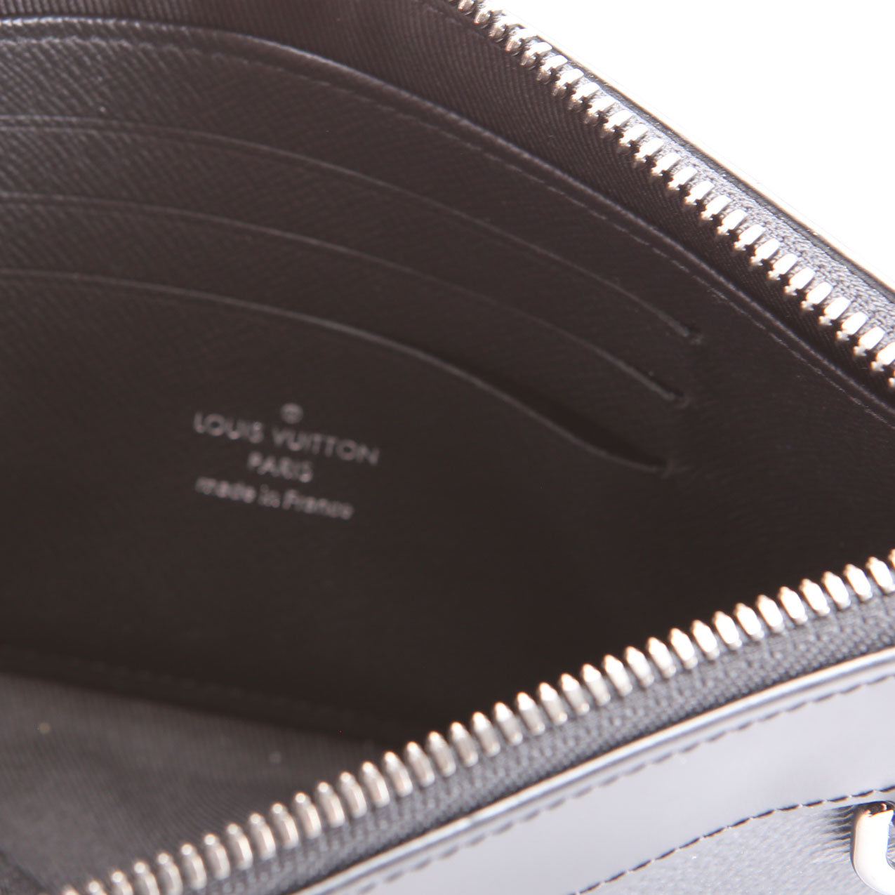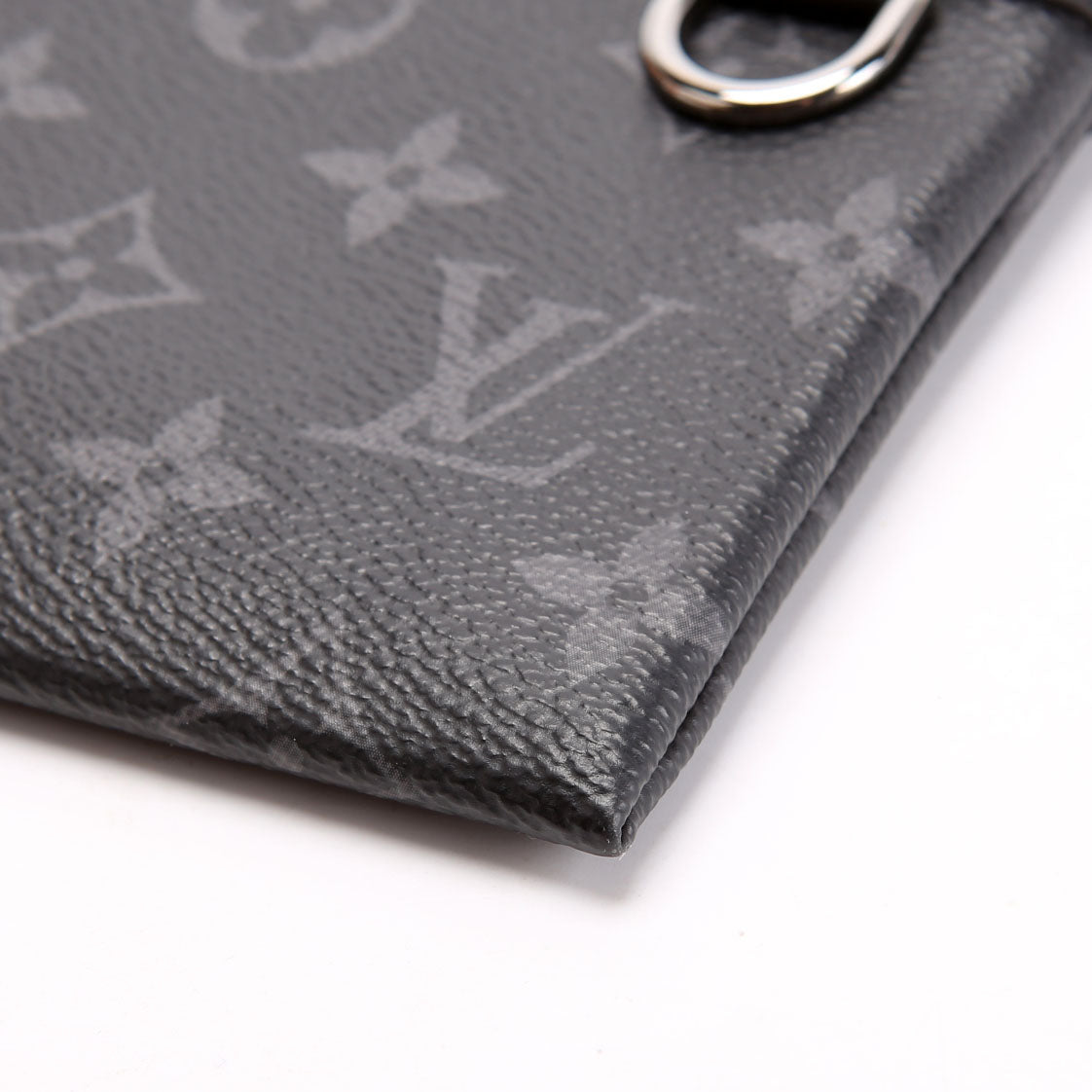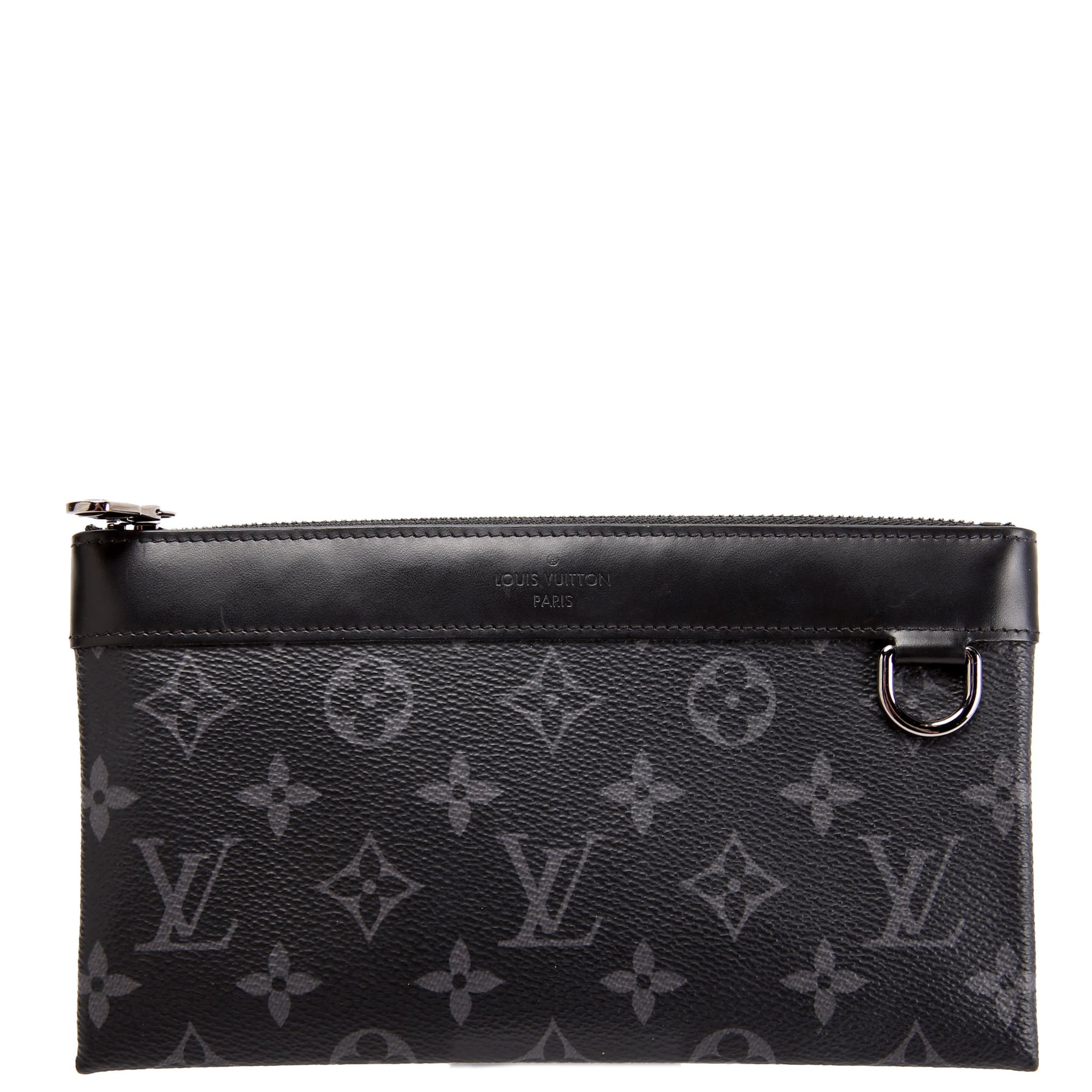 This pre-owned Louis Vuitton Pochette Discovery PM is guaranteed 100% authentic. The exterior is in the classic Louis Vuitton Monogram Eclipse coated canvas.