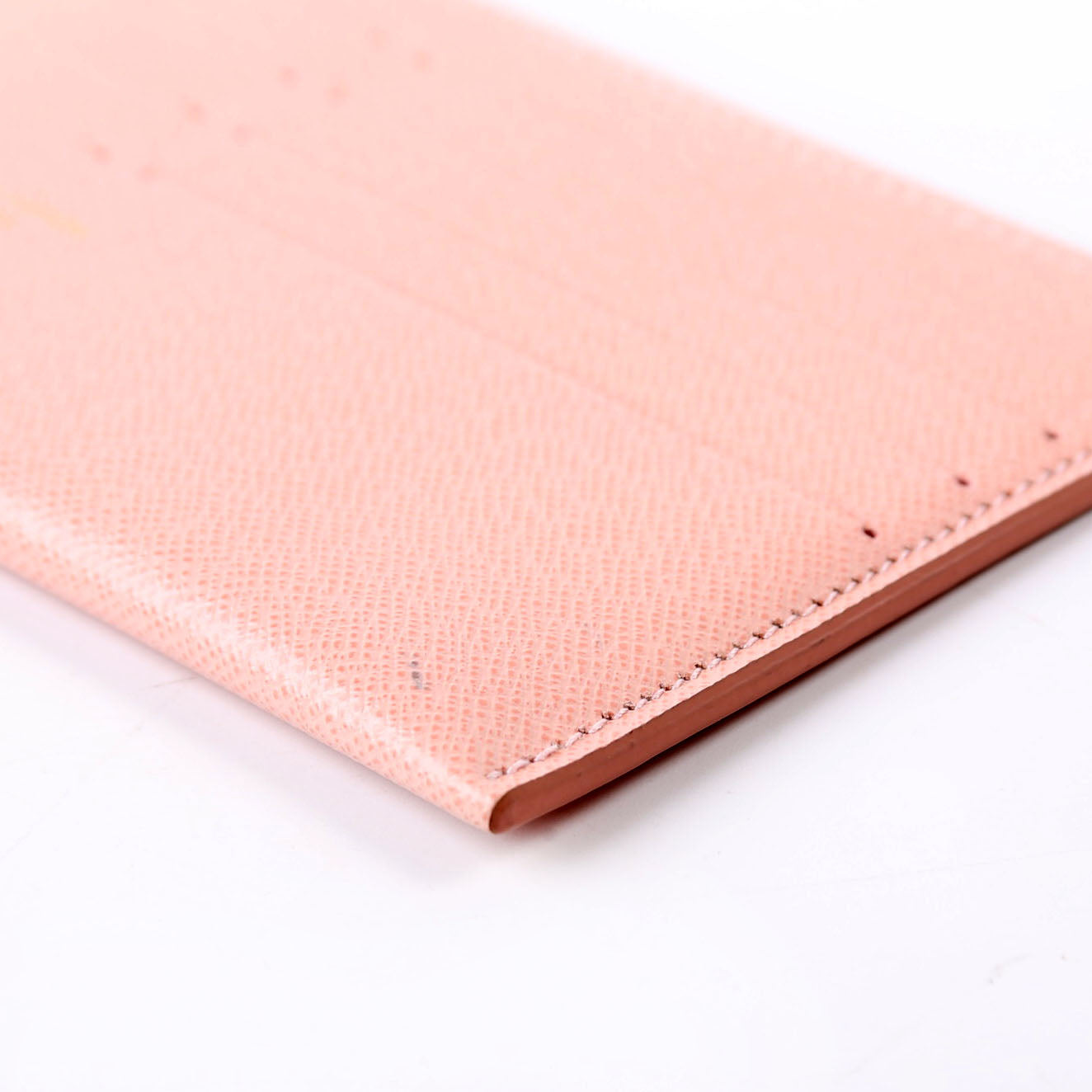Exterior: The exterior leather has minor pen marks to one corner. It features 8 card slots and one bill slot.