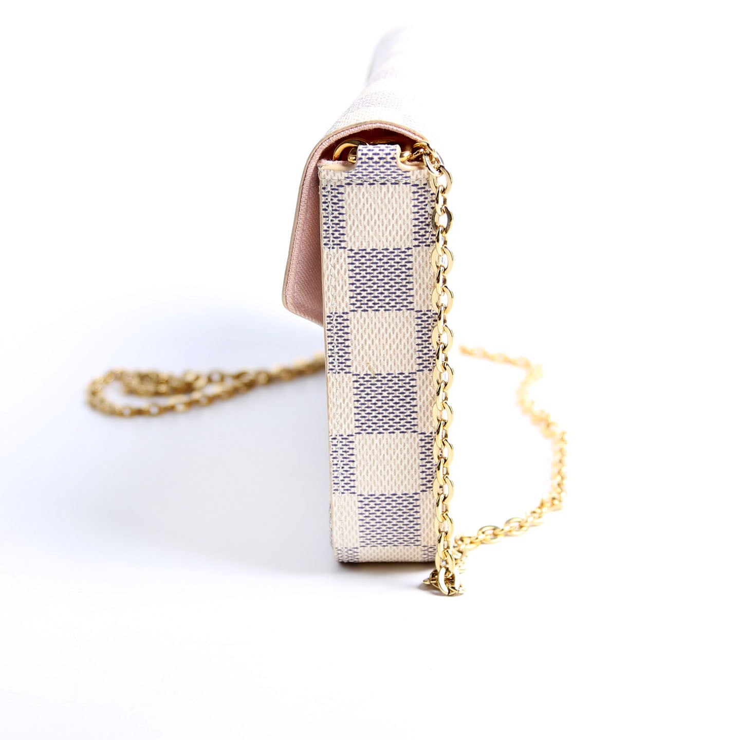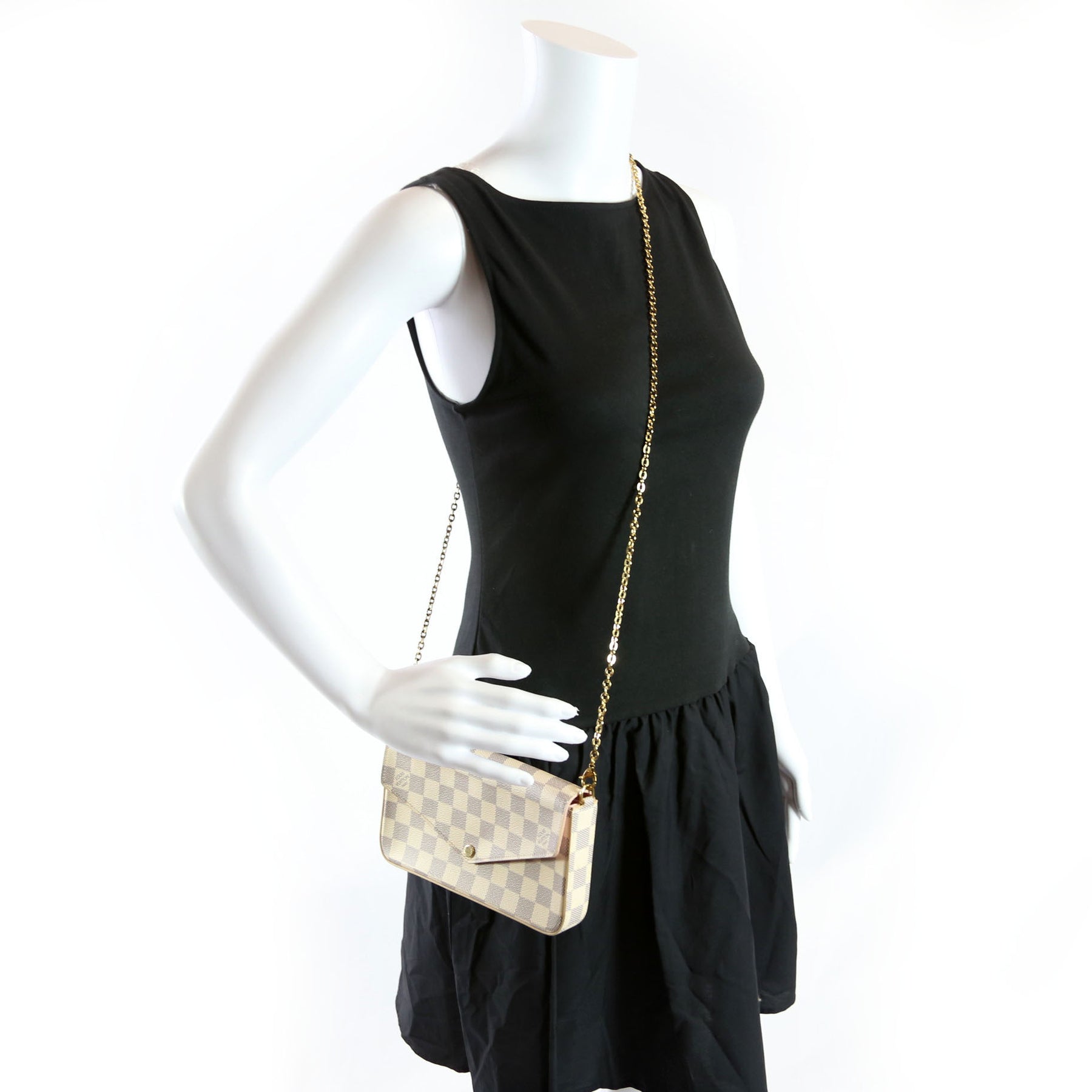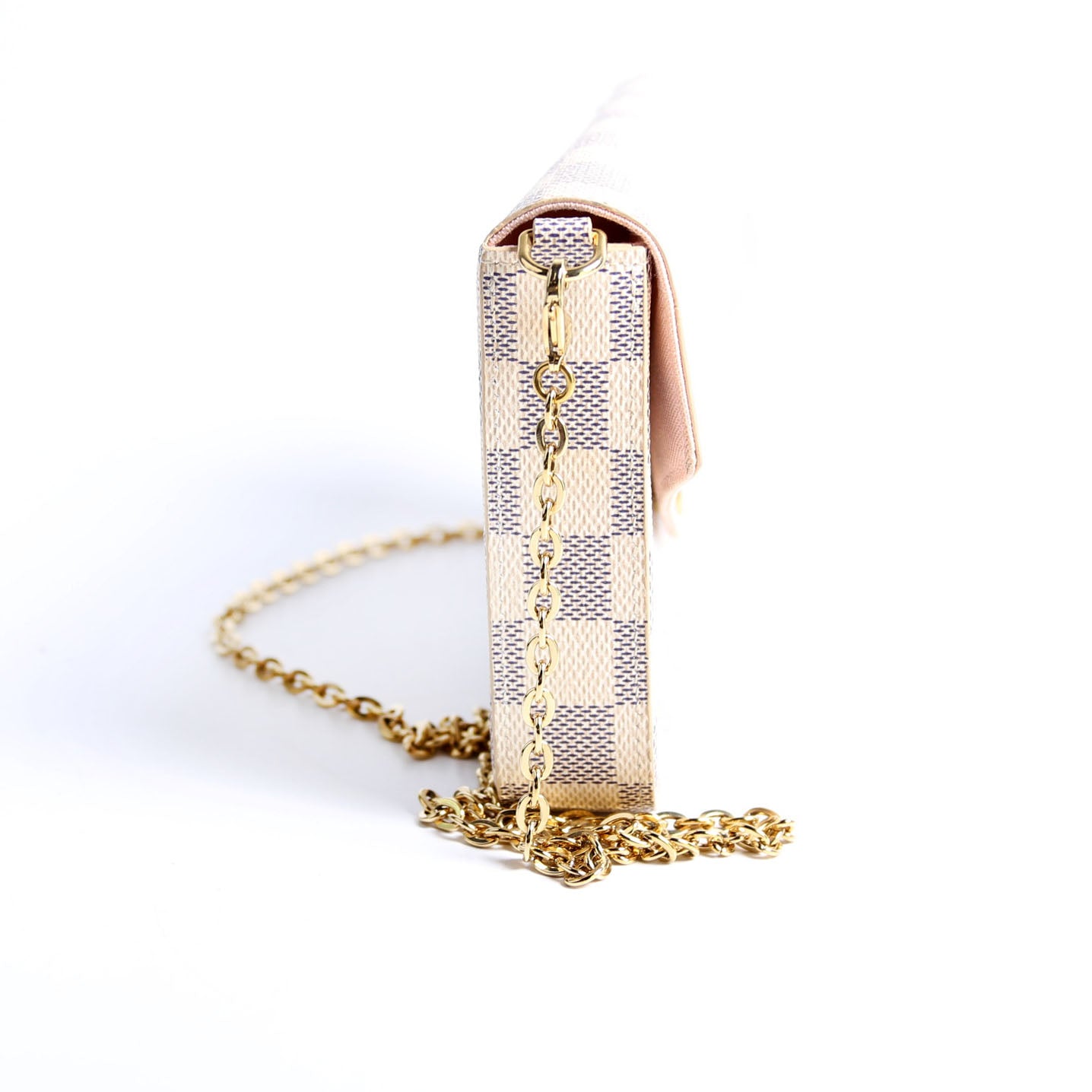 This pre-owned Louis Vuitton Pochette Felicie is guaranteed 100% authentic. The exterior is in the classic Louis Vuitton Damier Azur.