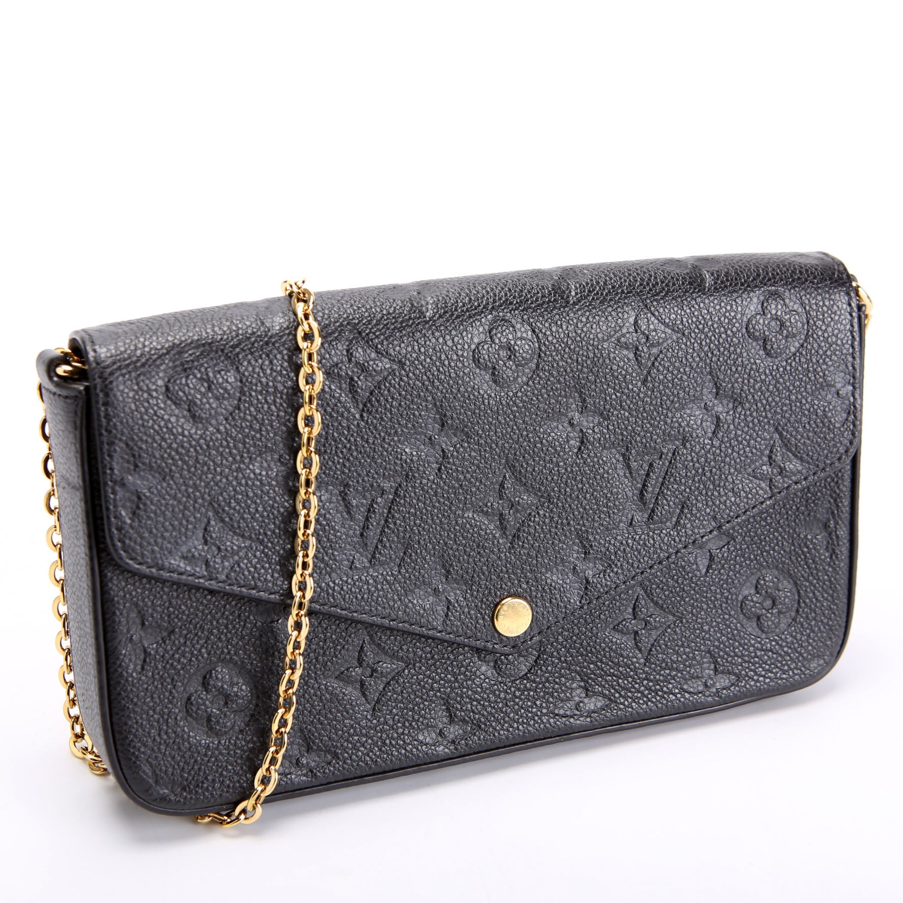 This pre-owned Louis Vuitton Pochette Felicie is guaranteed 100% authentic. The exterior is in the classic Louis Vuitton Empreinte leather.