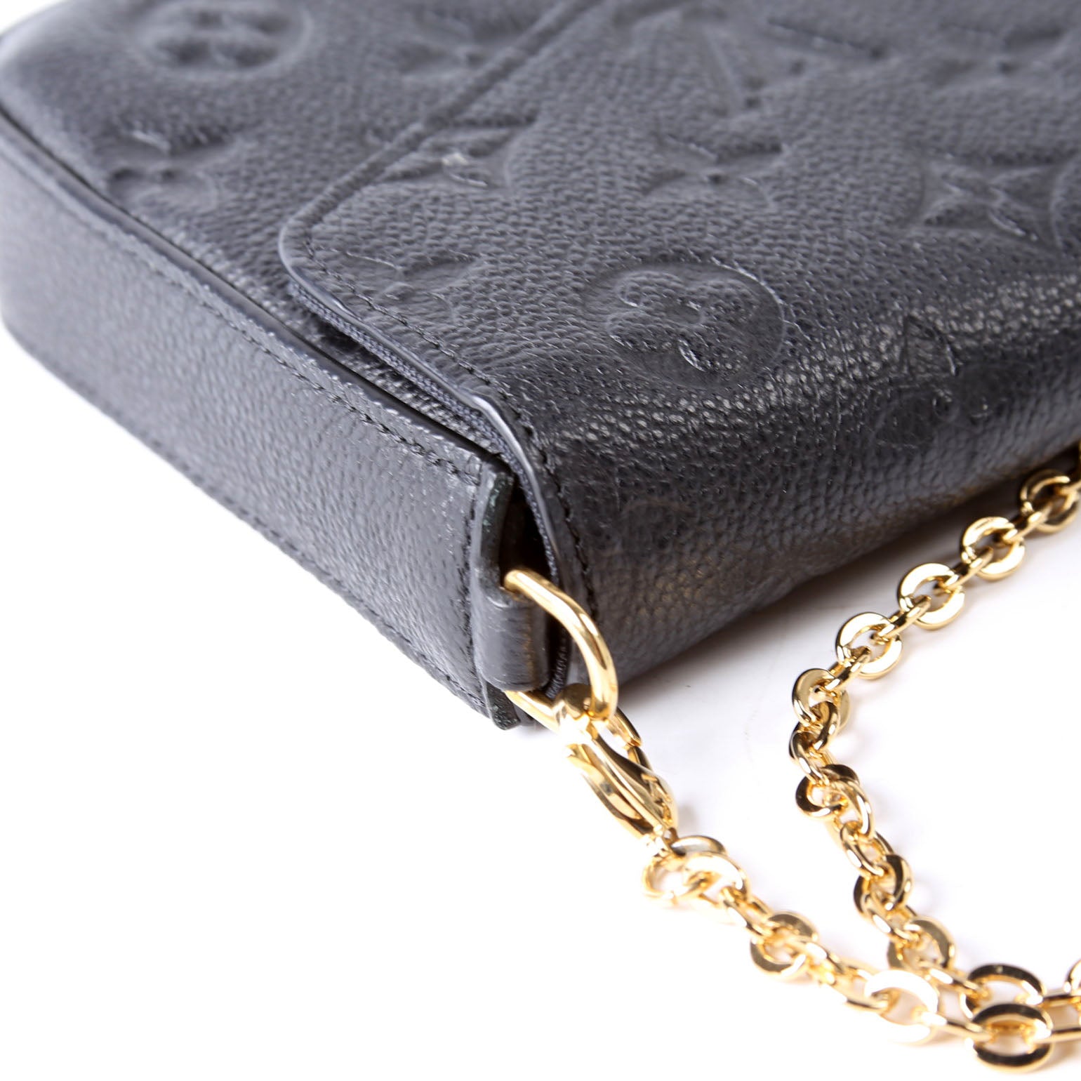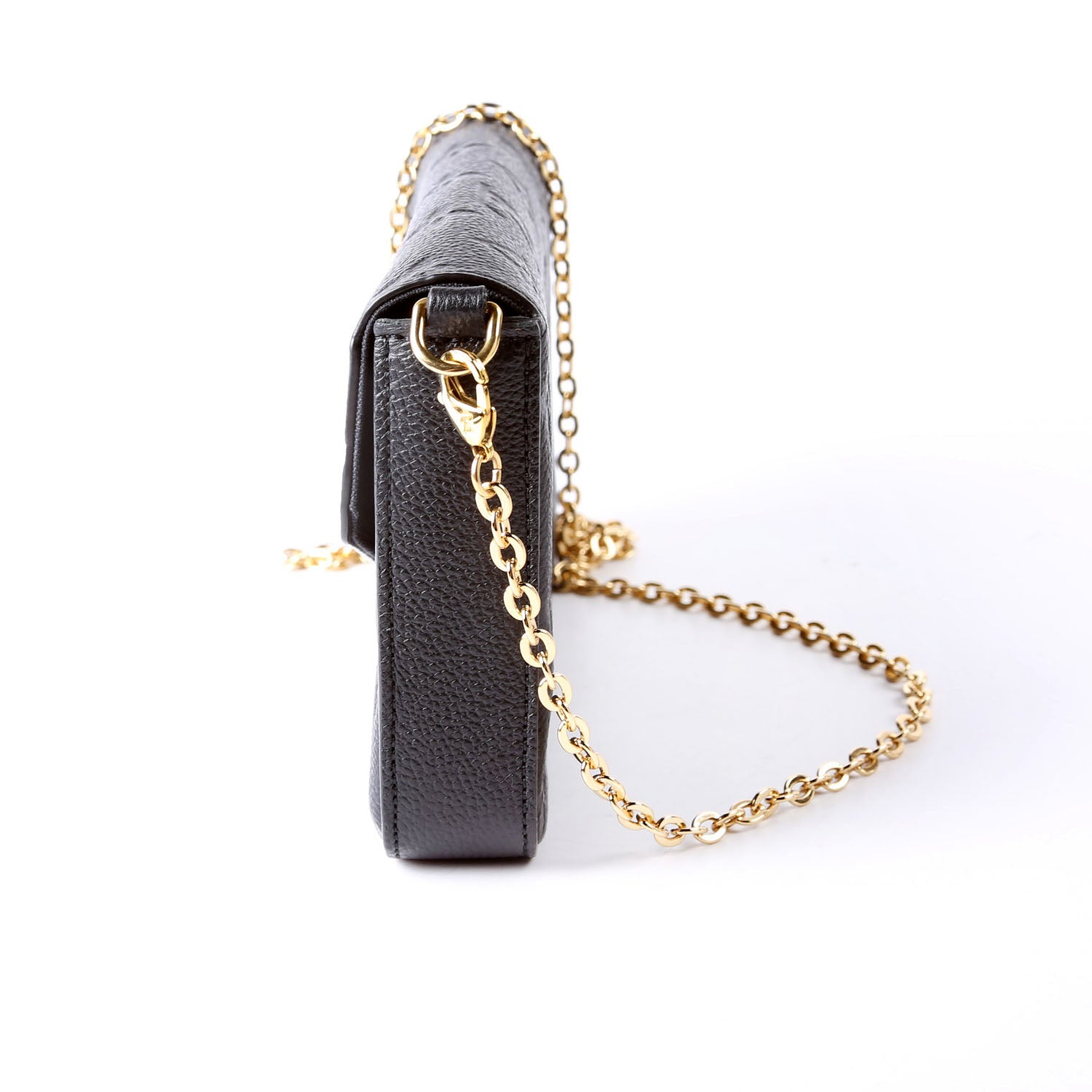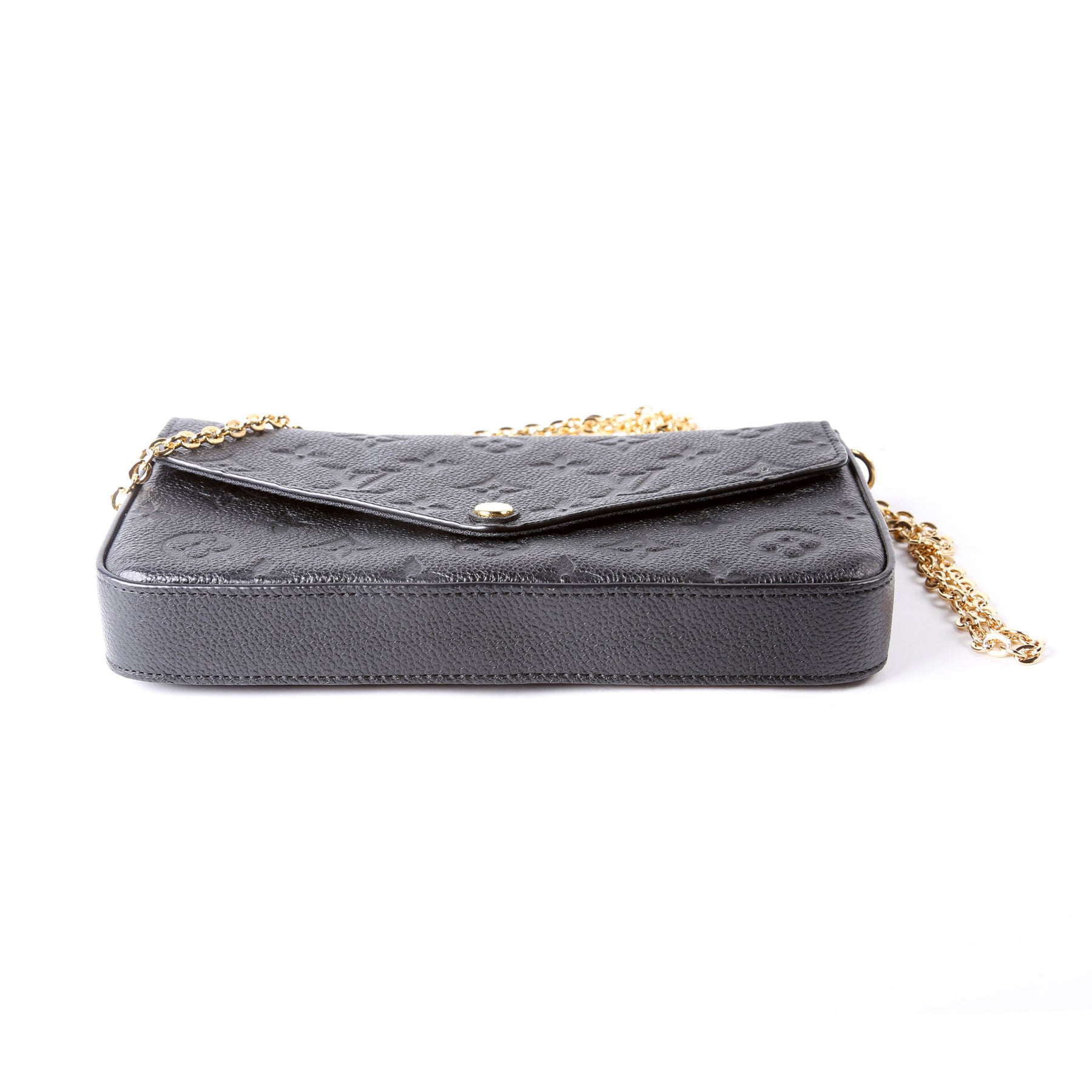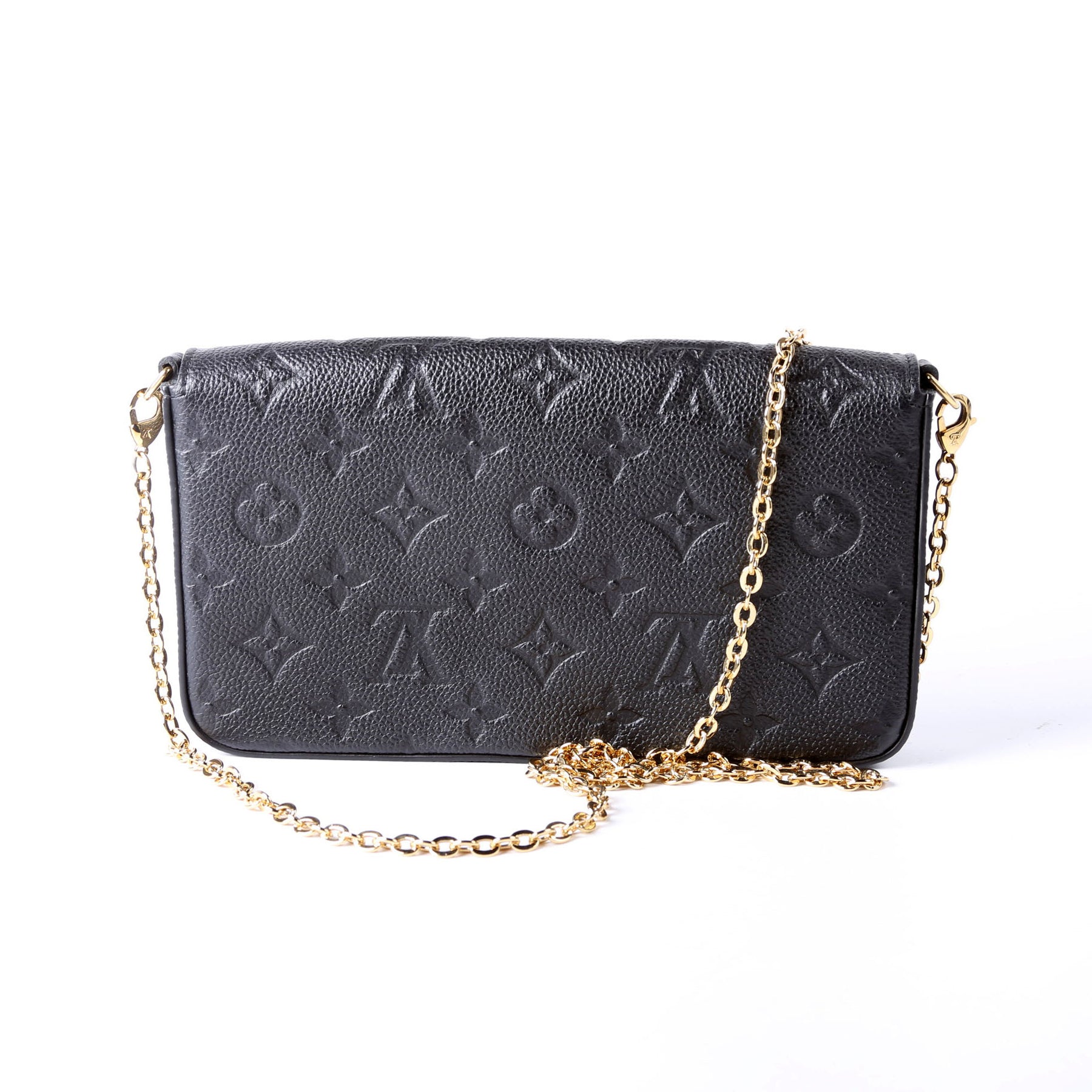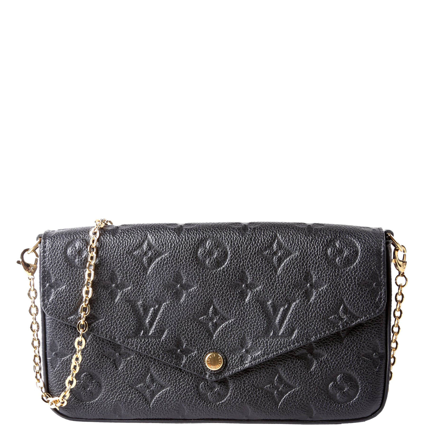 This pre-owned Louis Vuitton Pochette Felicie is guaranteed 100% authentic. The exterior is in the classic Louis Vuitton Empreitne leather.