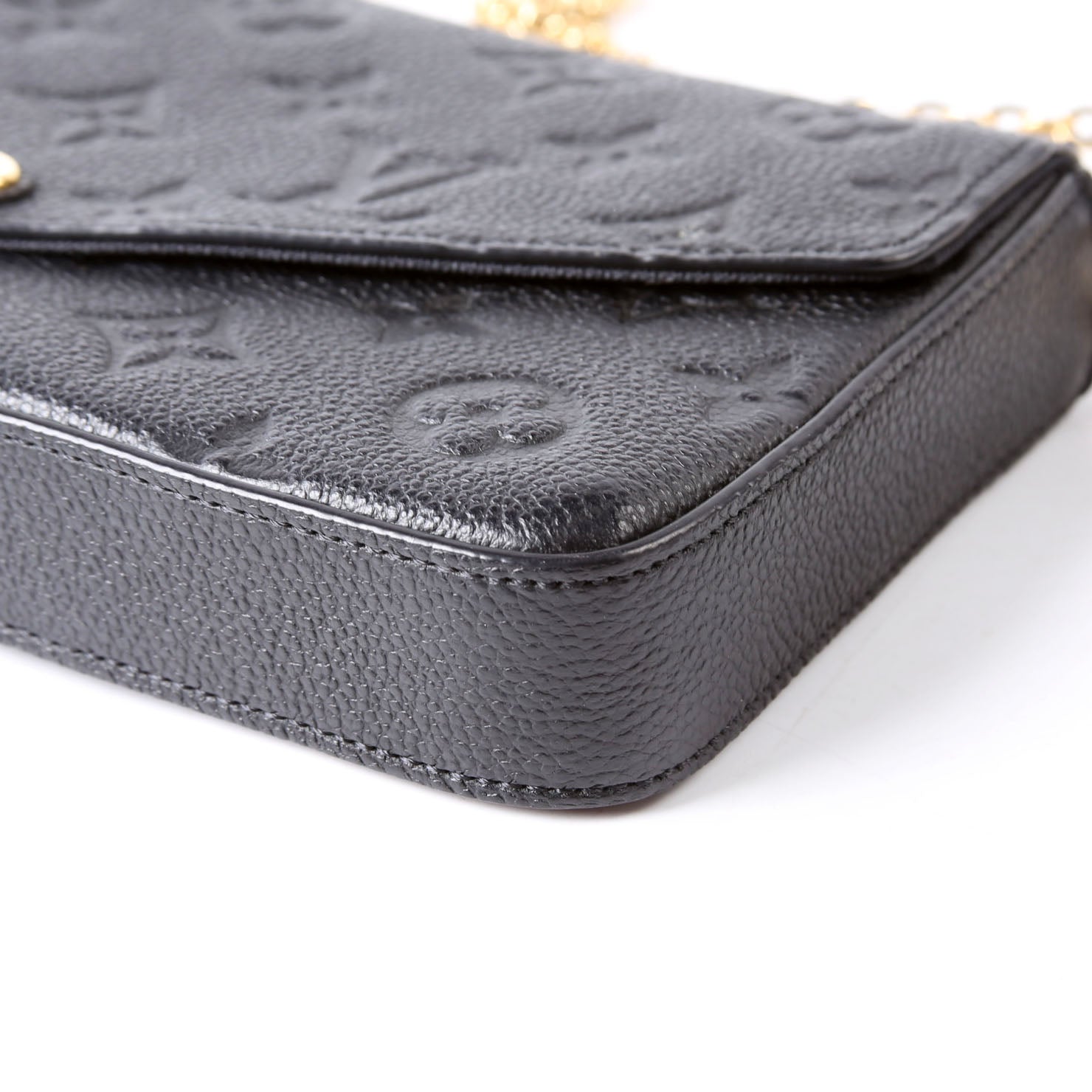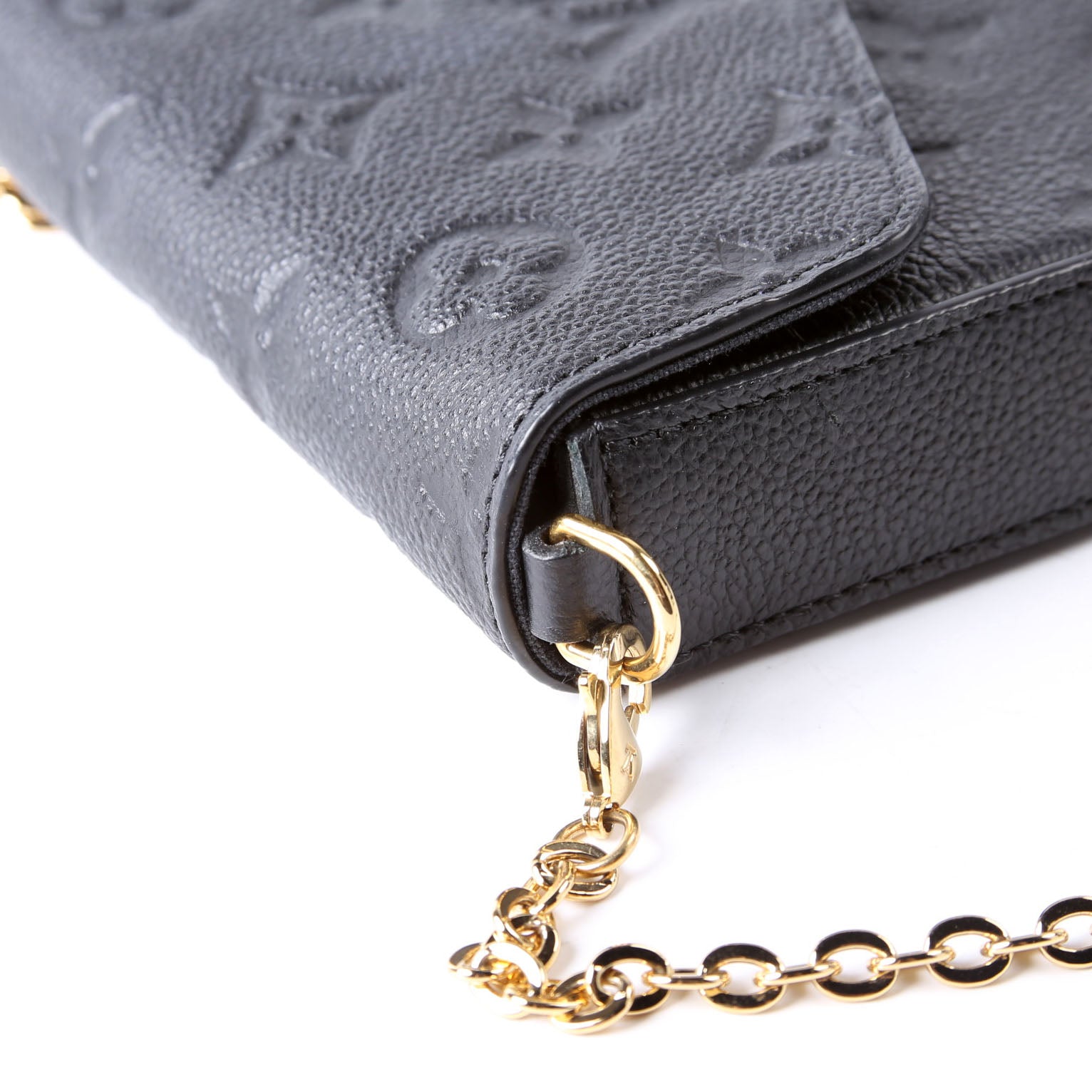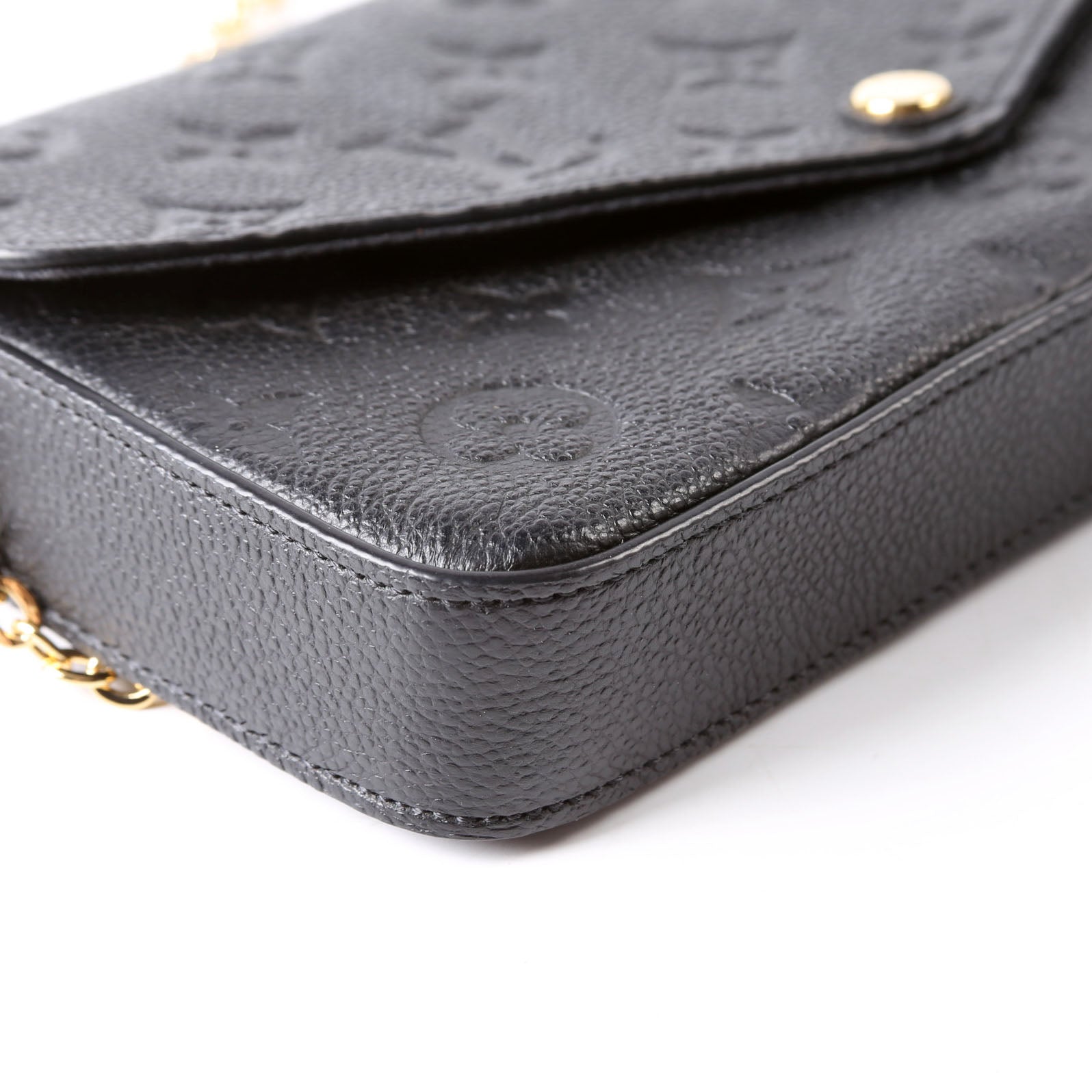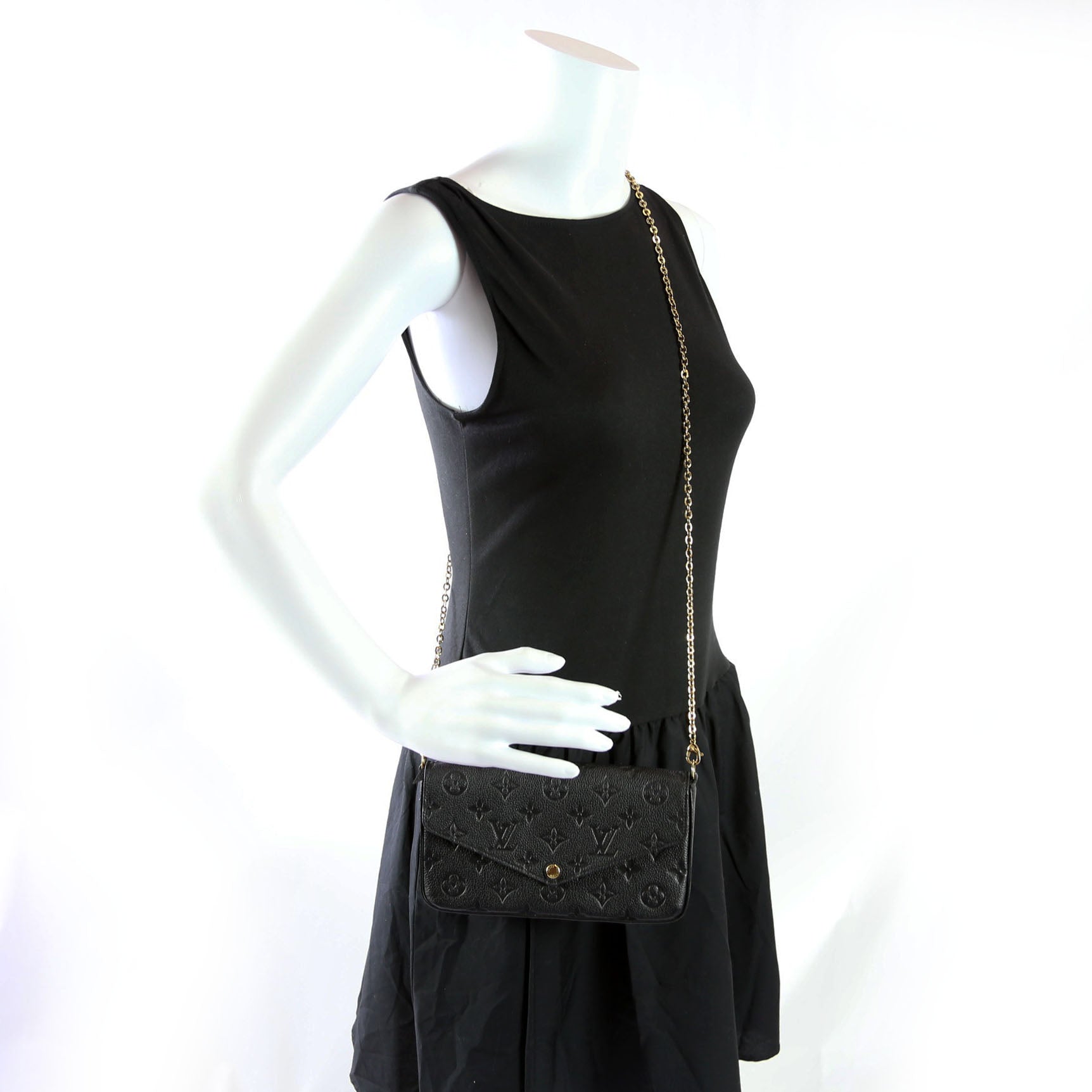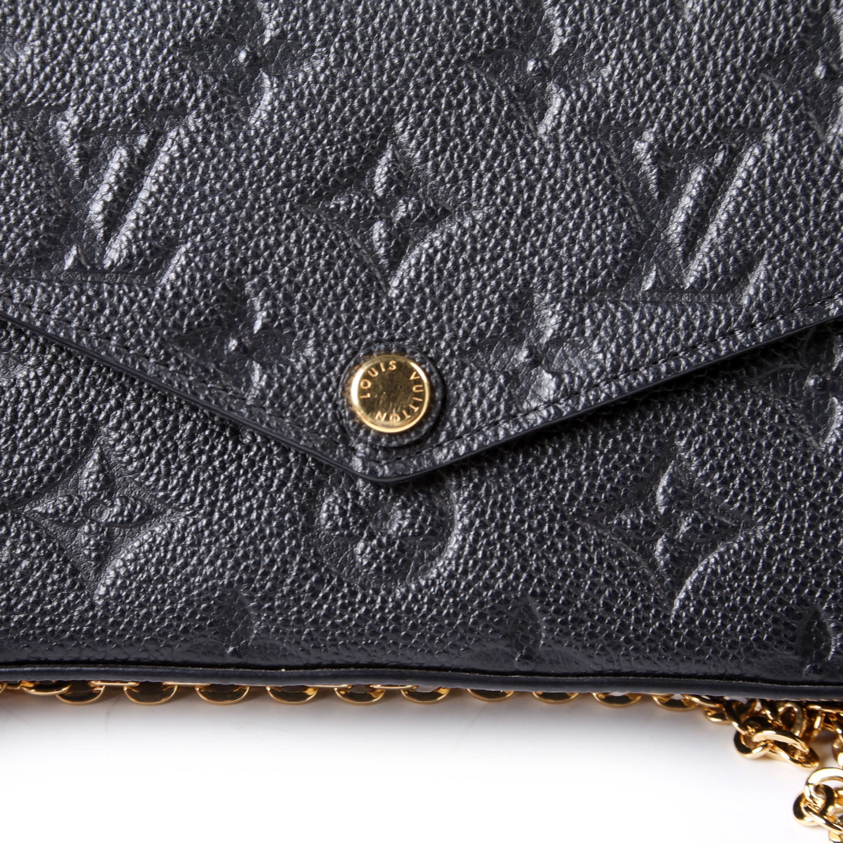 This pre-owned Louis Vuitton Pochette Felicie is guaranteed 100% authentic. The exterior is in the classic Louis Vuitton Empreitne leather.