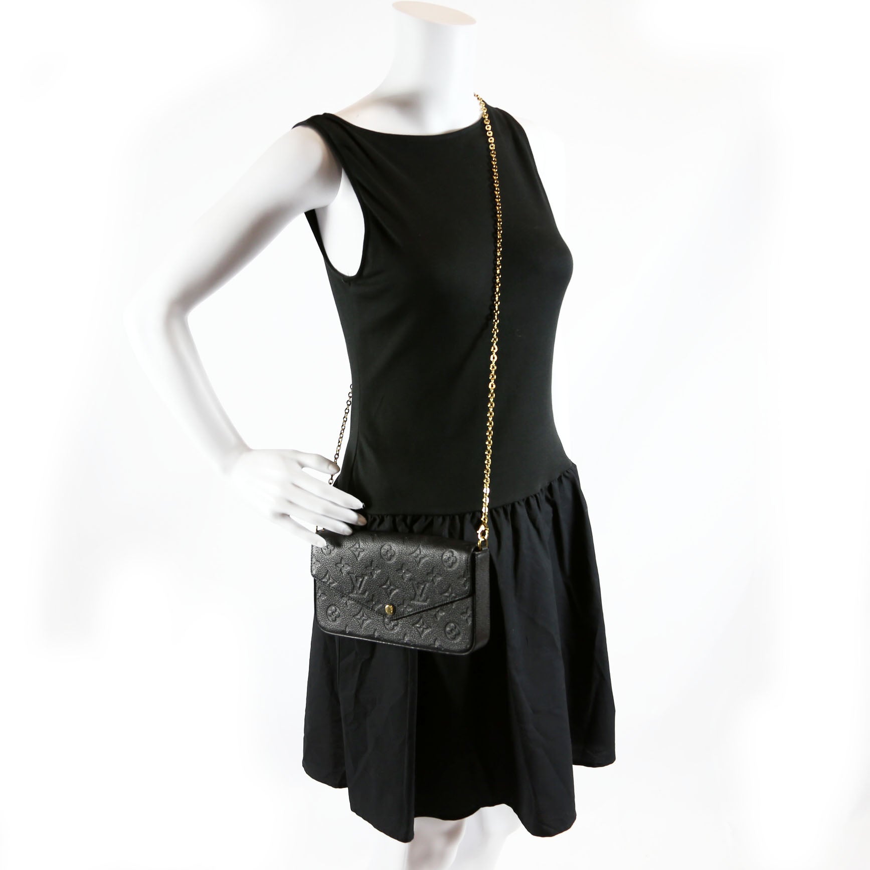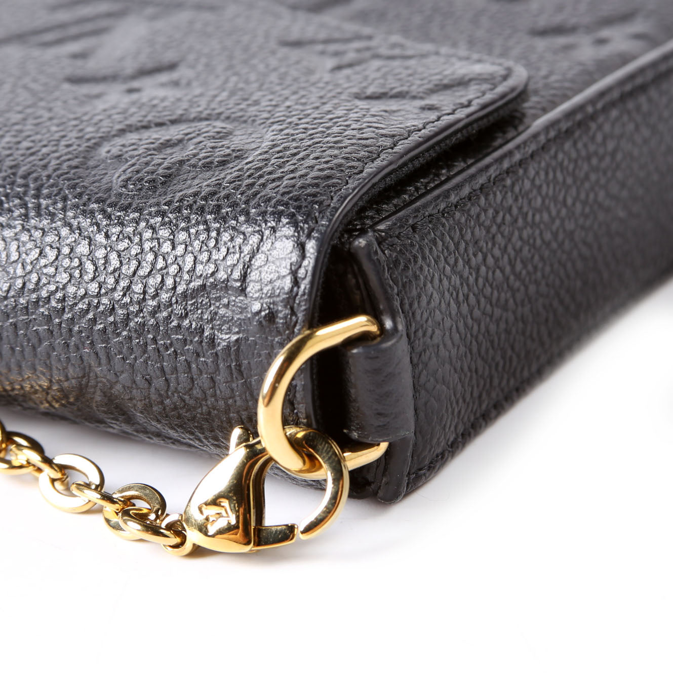 This pre-owned Louis Vuitton Pochette Felicie is guaranteed 100% authentic. The exterior is in the classic Louis Vuitton Empreinte leather.