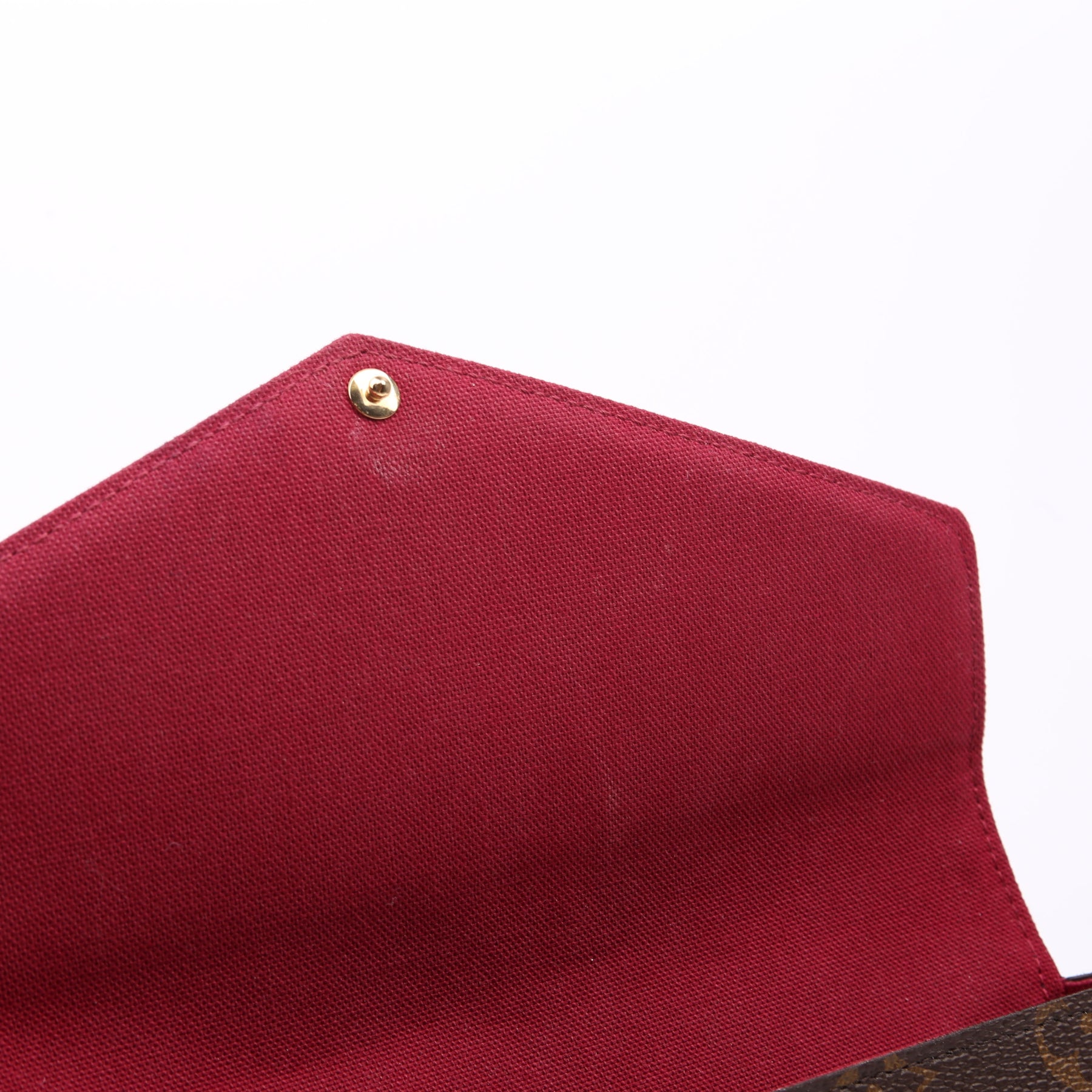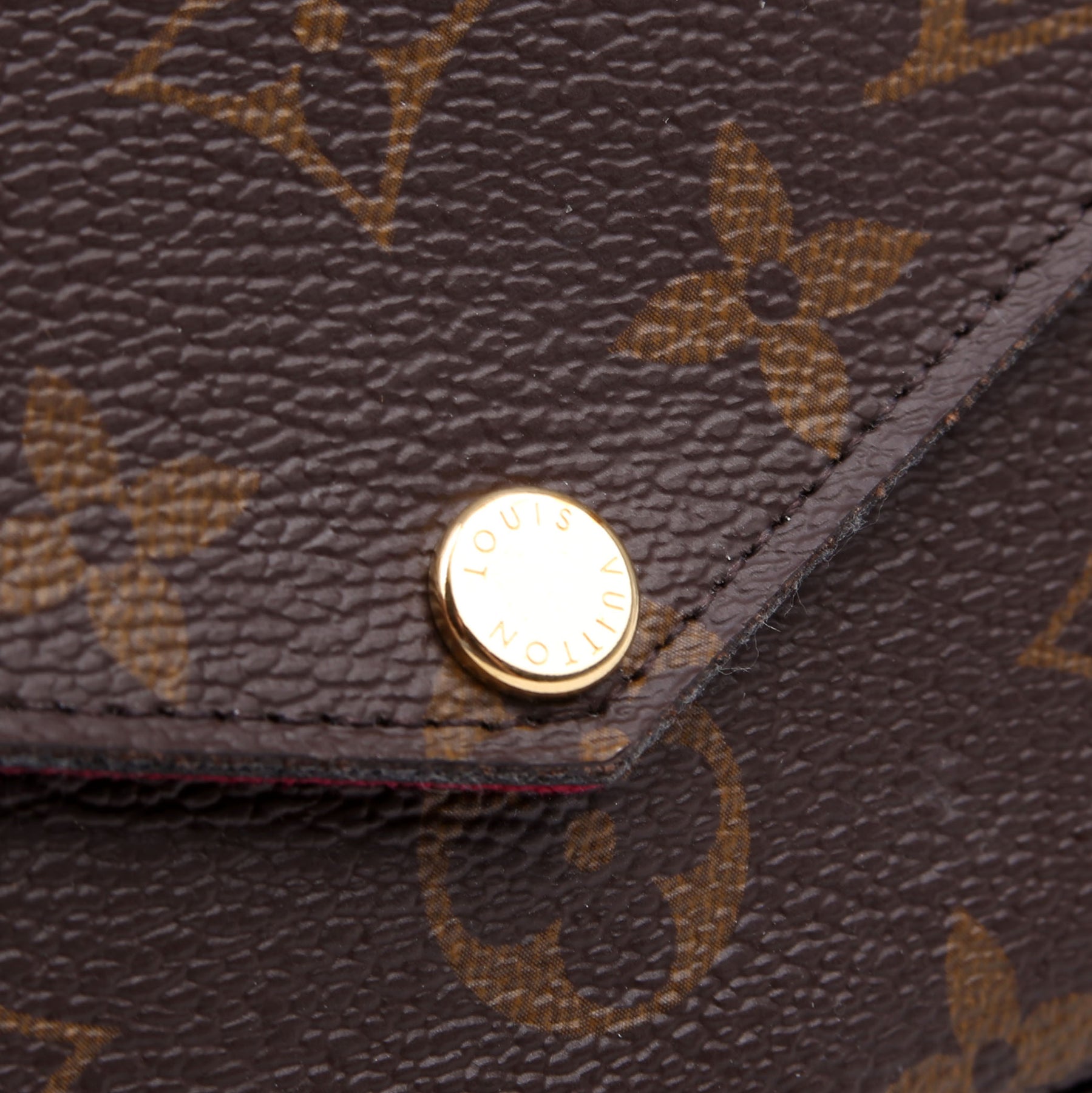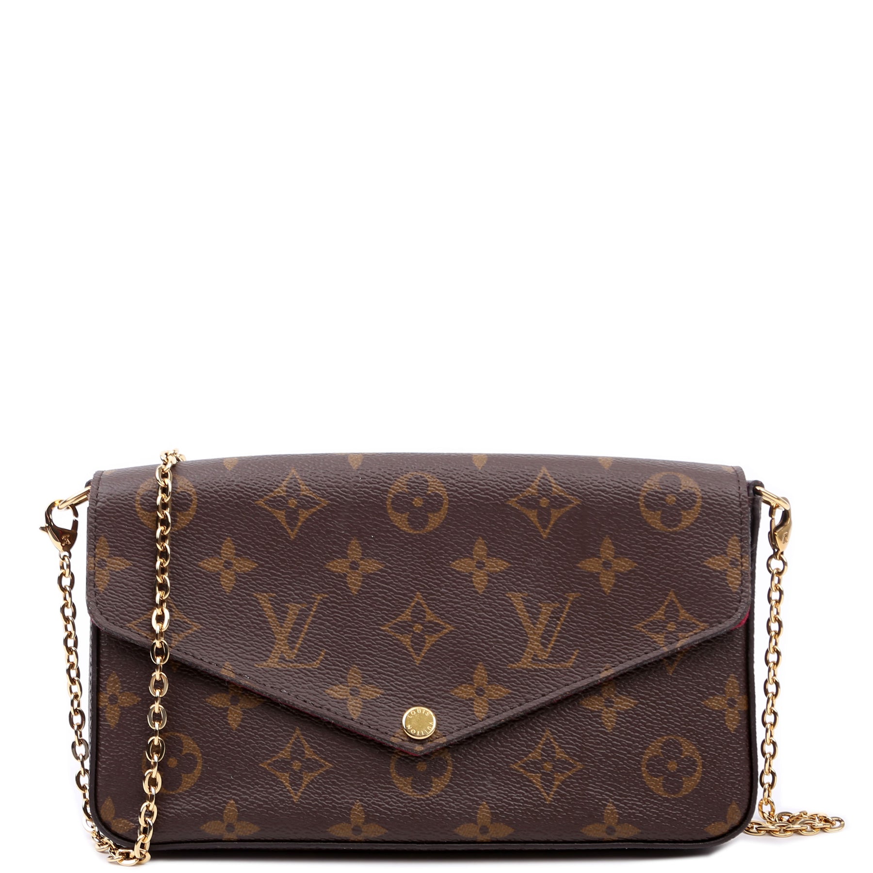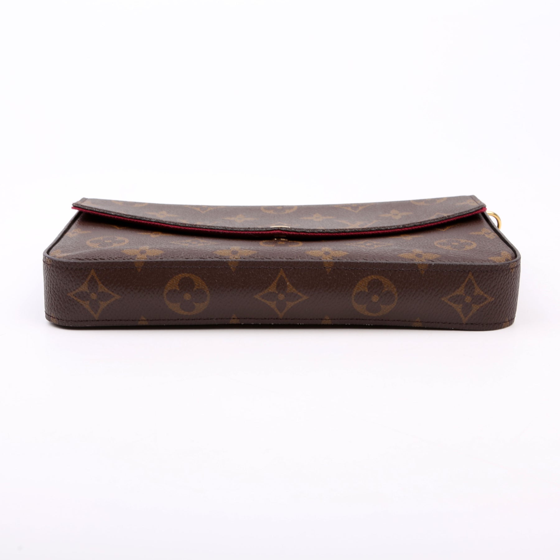 This pre-owned Louis Vuitton Pochette Felicie is guaranteed 100% authentic. The exterior is in the classic Louis Vuitton Monogram coated canvas.