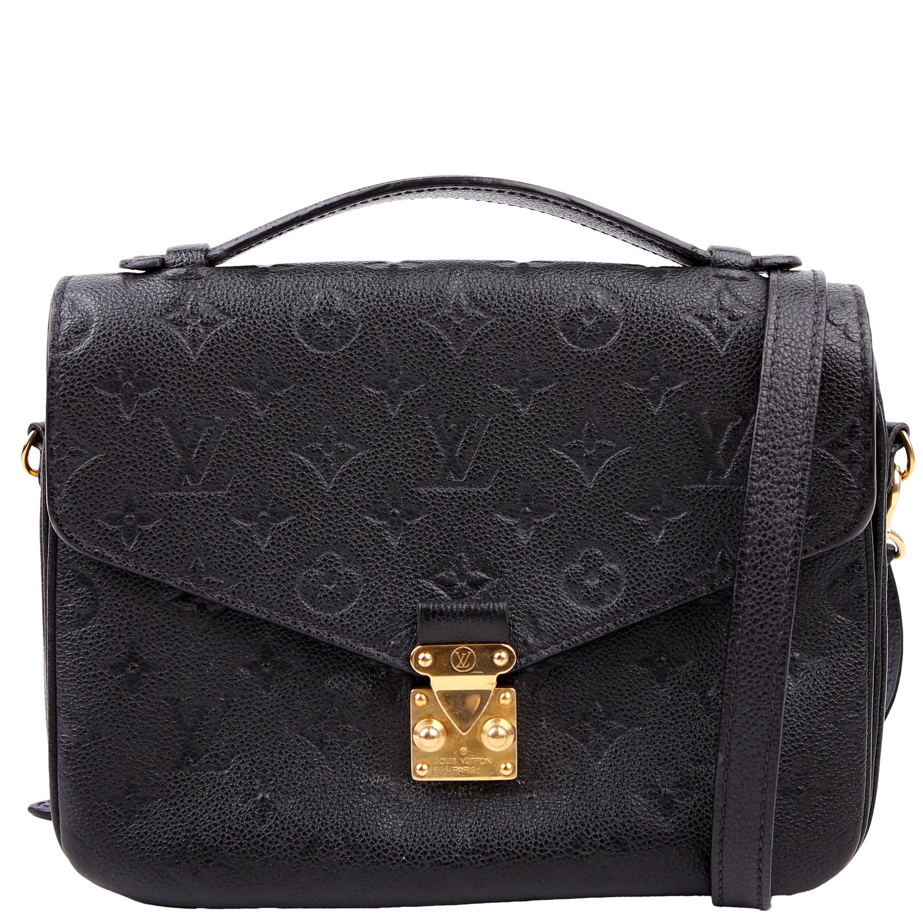 This pre-owned Louis Vuitton Pochette Metis is guaranteed 100% authentic. The exterior is in the classic Louis Vuitton Empreinte leather.