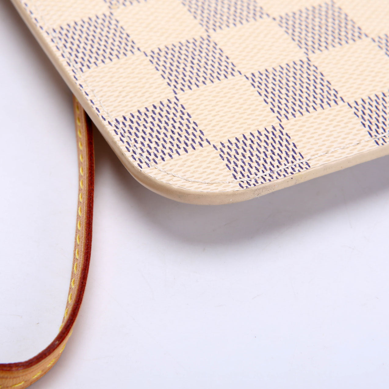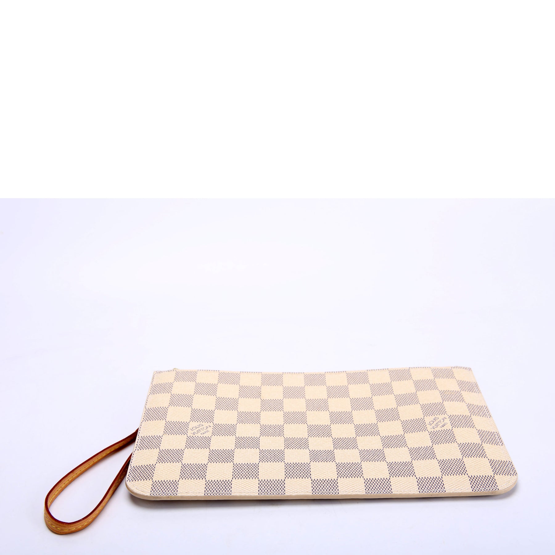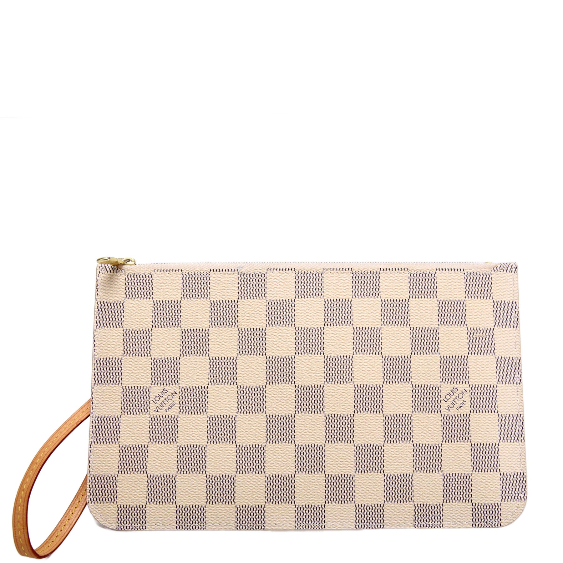 This pre-owned Louis Vuitton Pochette Only Neverfull is guaranteed 100% authentic. The exterior is in the classic Louis Vuitton Damier Azur coated canvas.