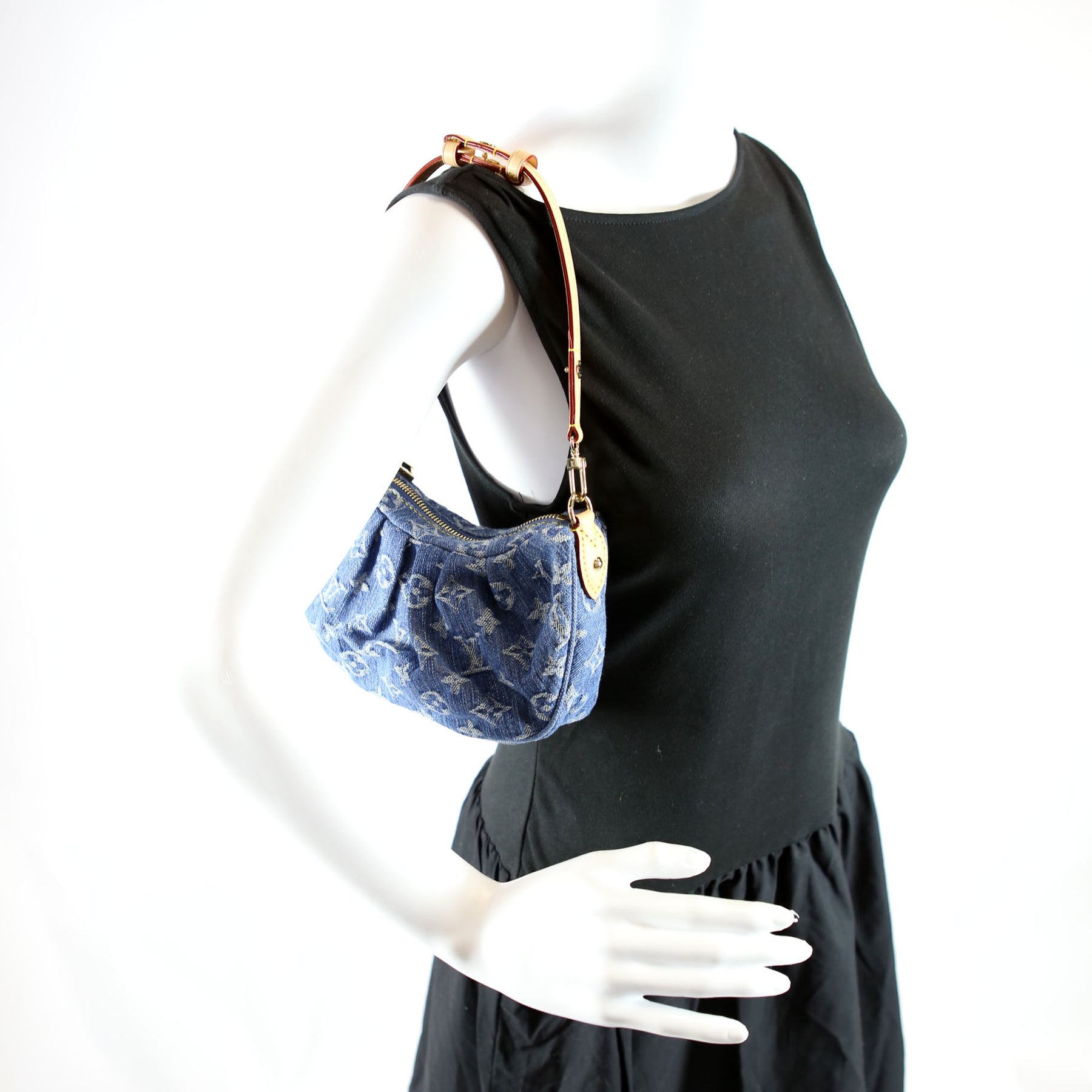 This pre-owned Louis Vuitton Pochette Valley is guaranteed 100% authentic. The exterior is in the classic Louis Vuitton Denim Monogram.