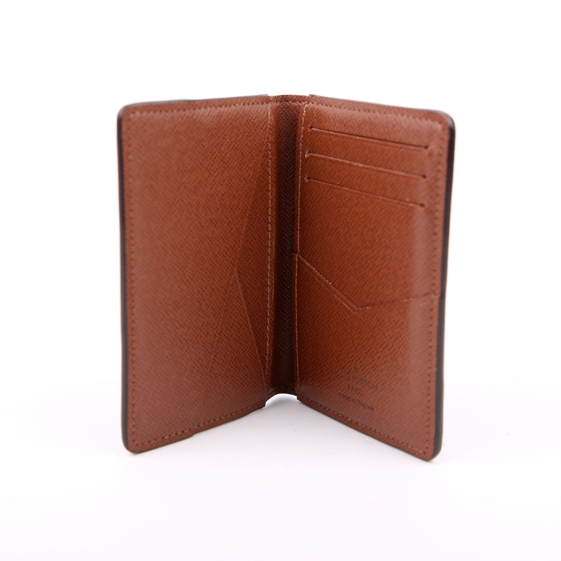 This pre-owned Louis Vuitton Pocket Organizer NM is guaranteed 100% authentic. The exterior is in the classic Louis Vuitton Monogram coated canvas.