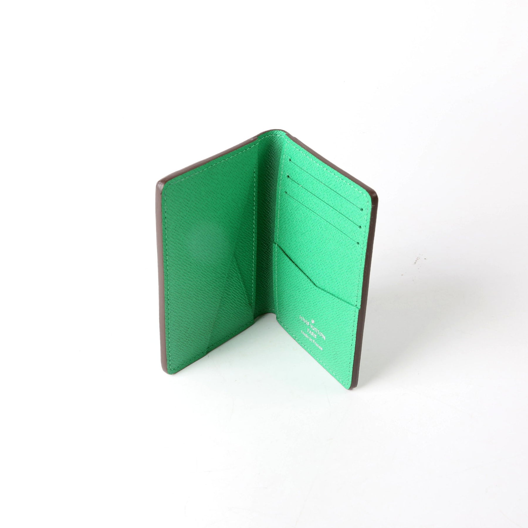This pre-owned Louis Vuitton Pocket Organizer NM is guaranteed 100% authentic. The exterior is in the classic Louis Vuitton Taiga leather.