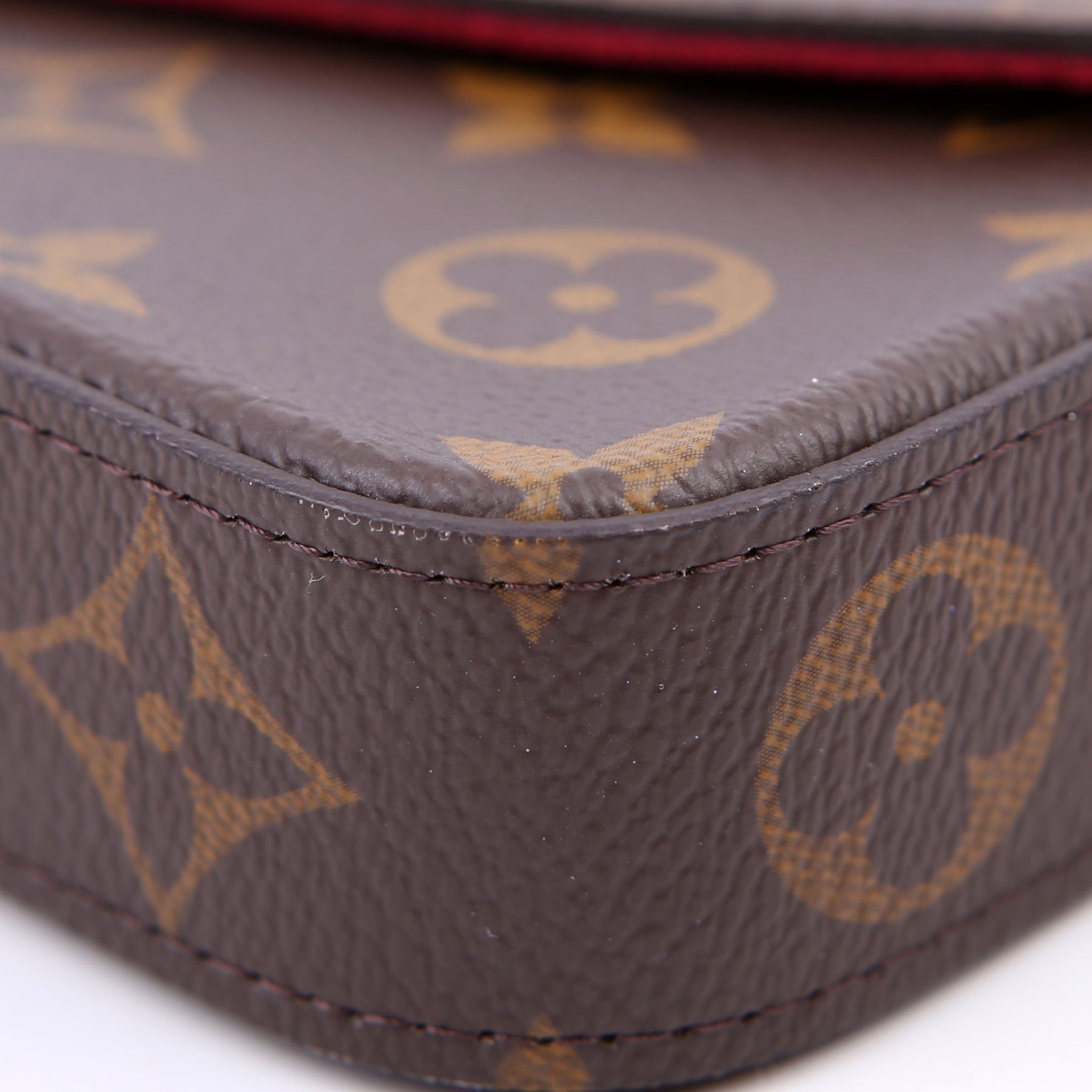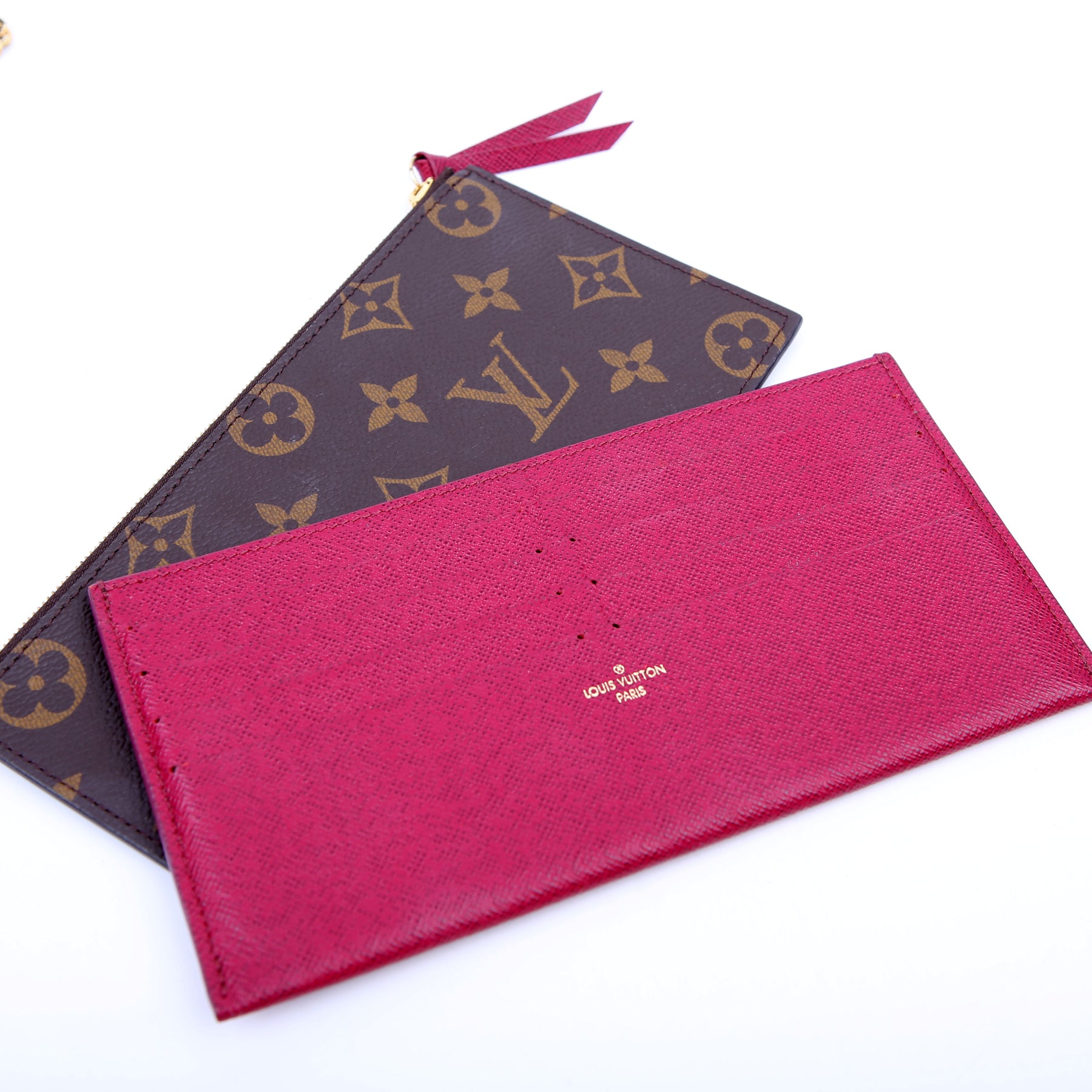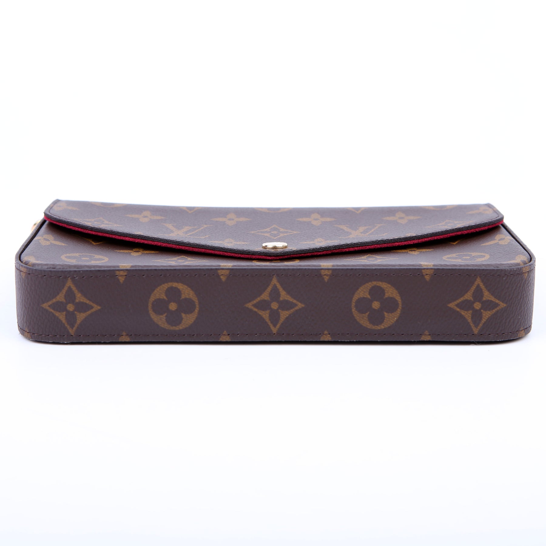 This pre-owned Louis Vuitton Pochette Felicie is guaranteed 100% authentic. The exterior is in the classic Louis Vuitton Monogram coated canvas.