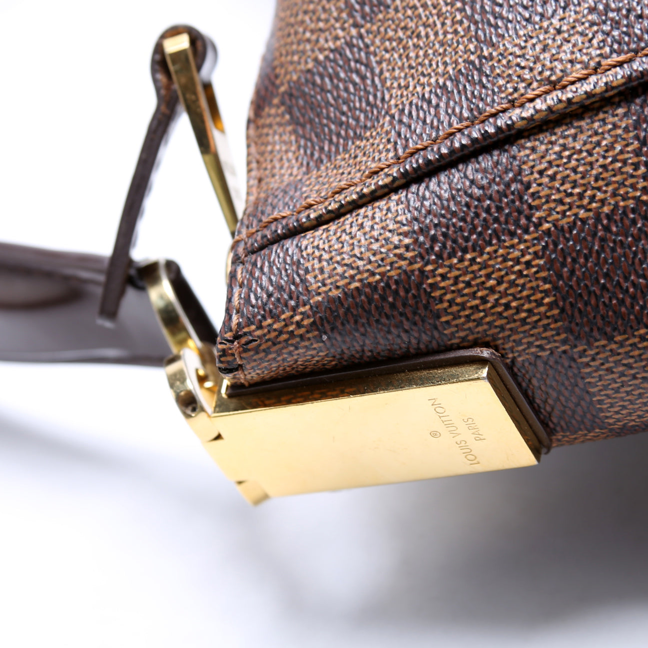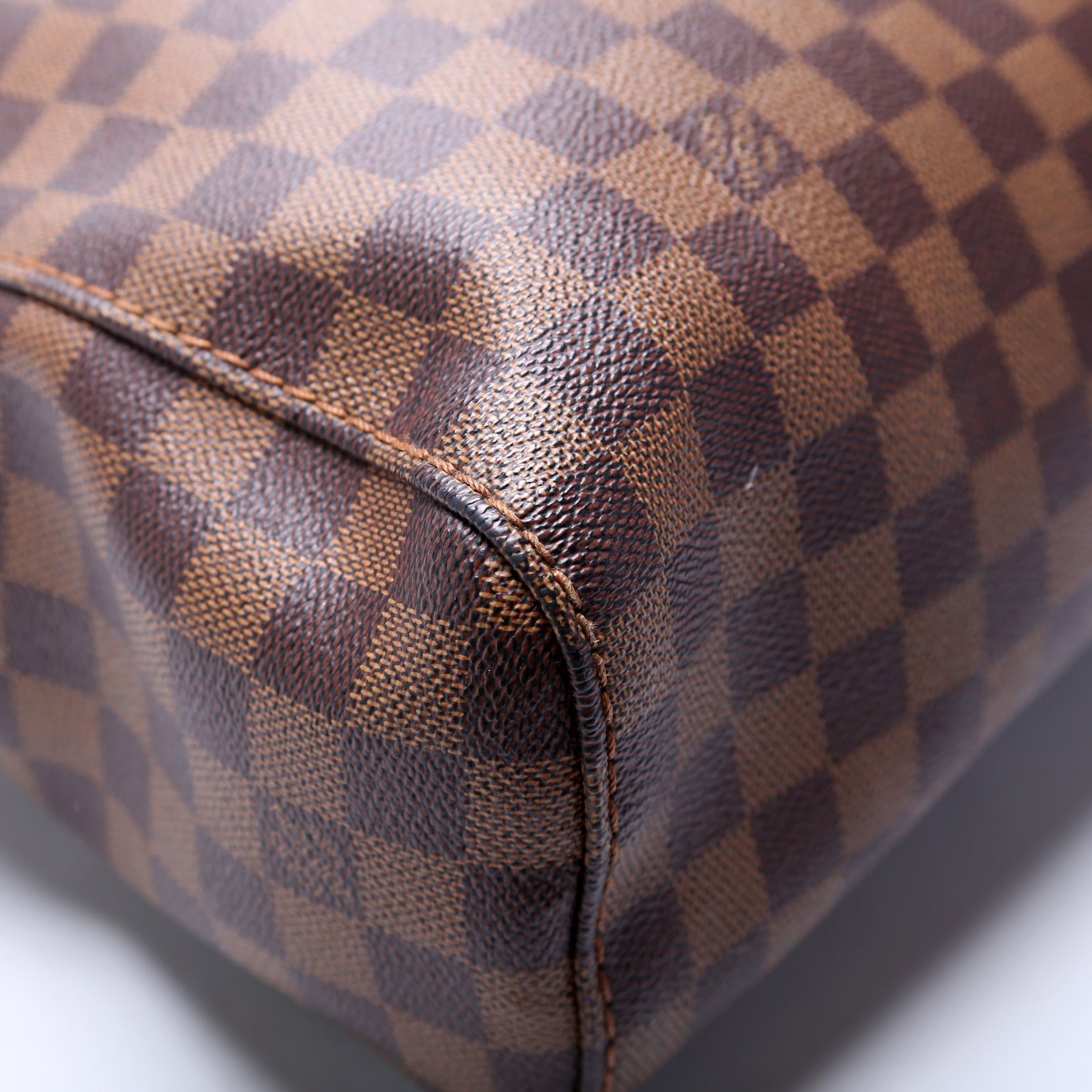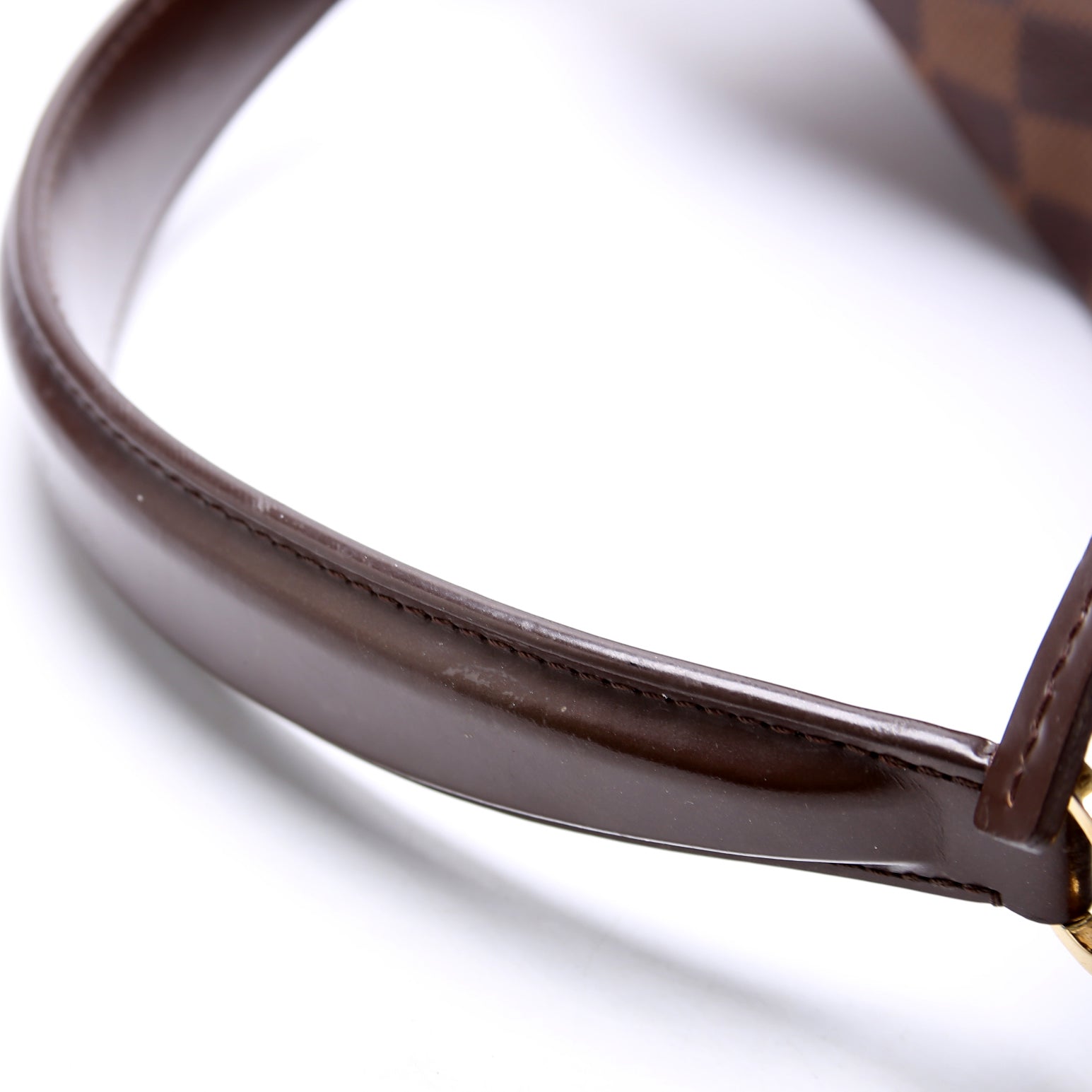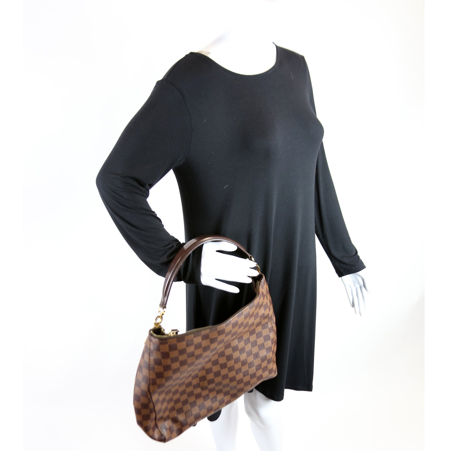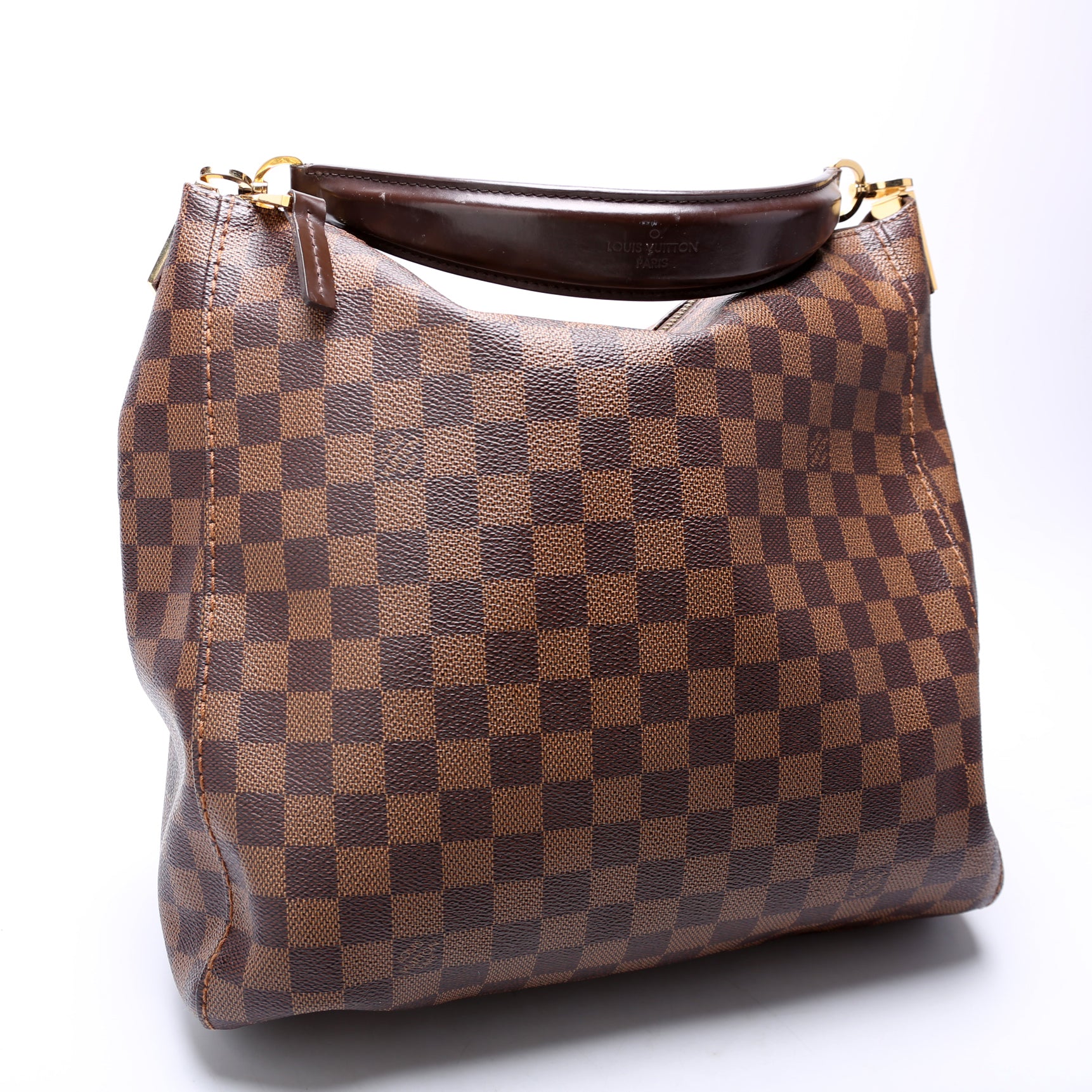 This pre-owned Louis Vuitton Portobello PM is guaranteed 100% authentic. The exterior is in the Louis Vuitton Damier Ebene coated canvas.
