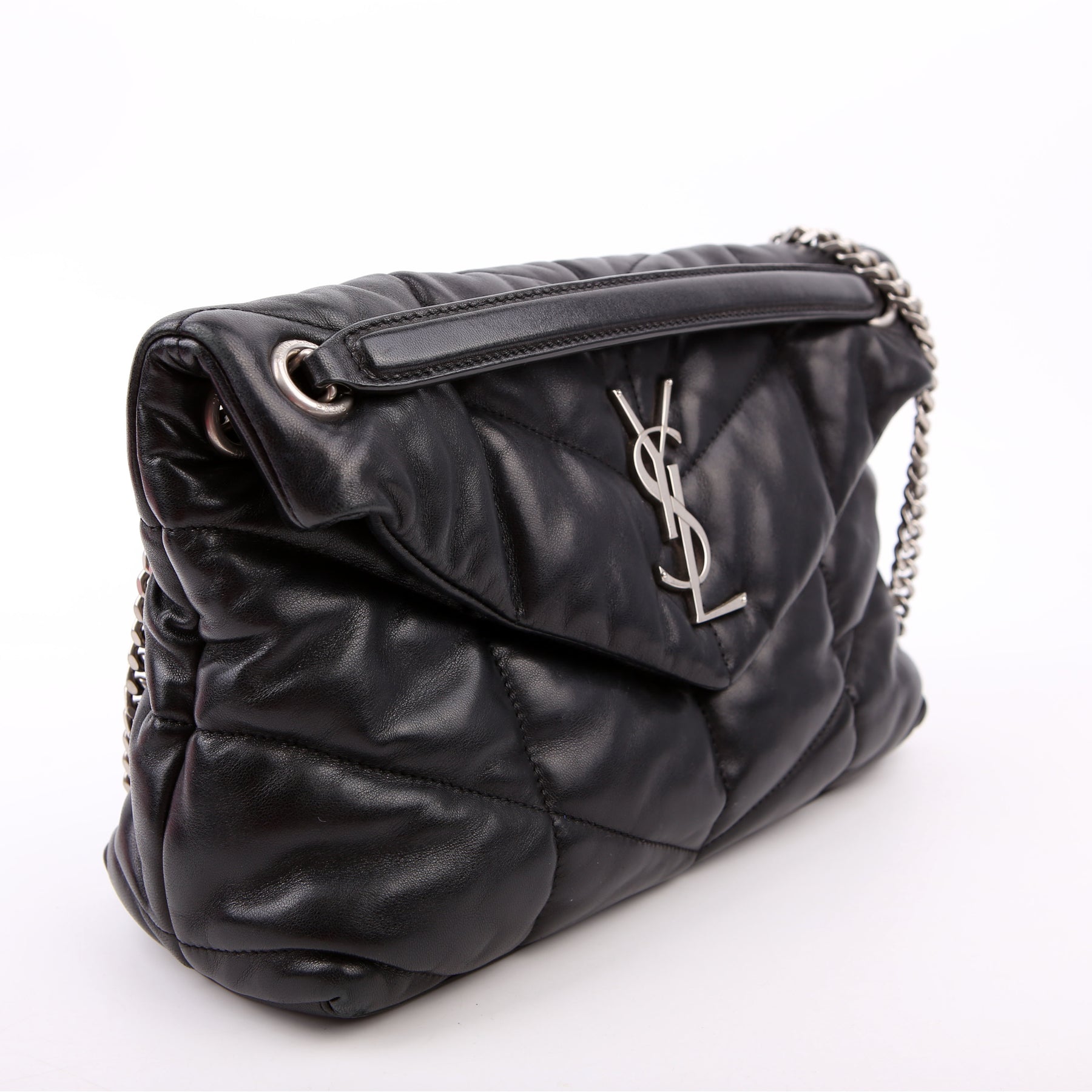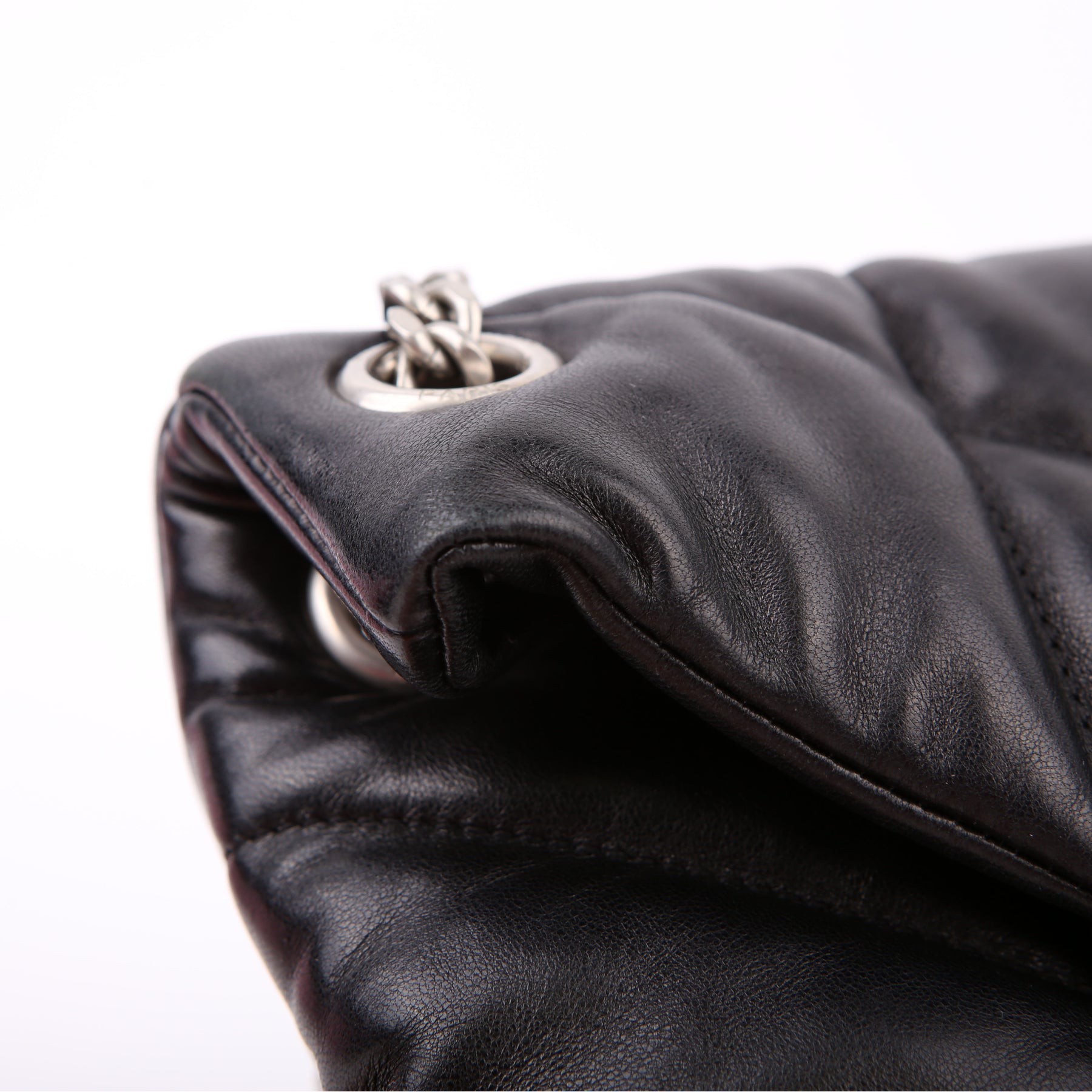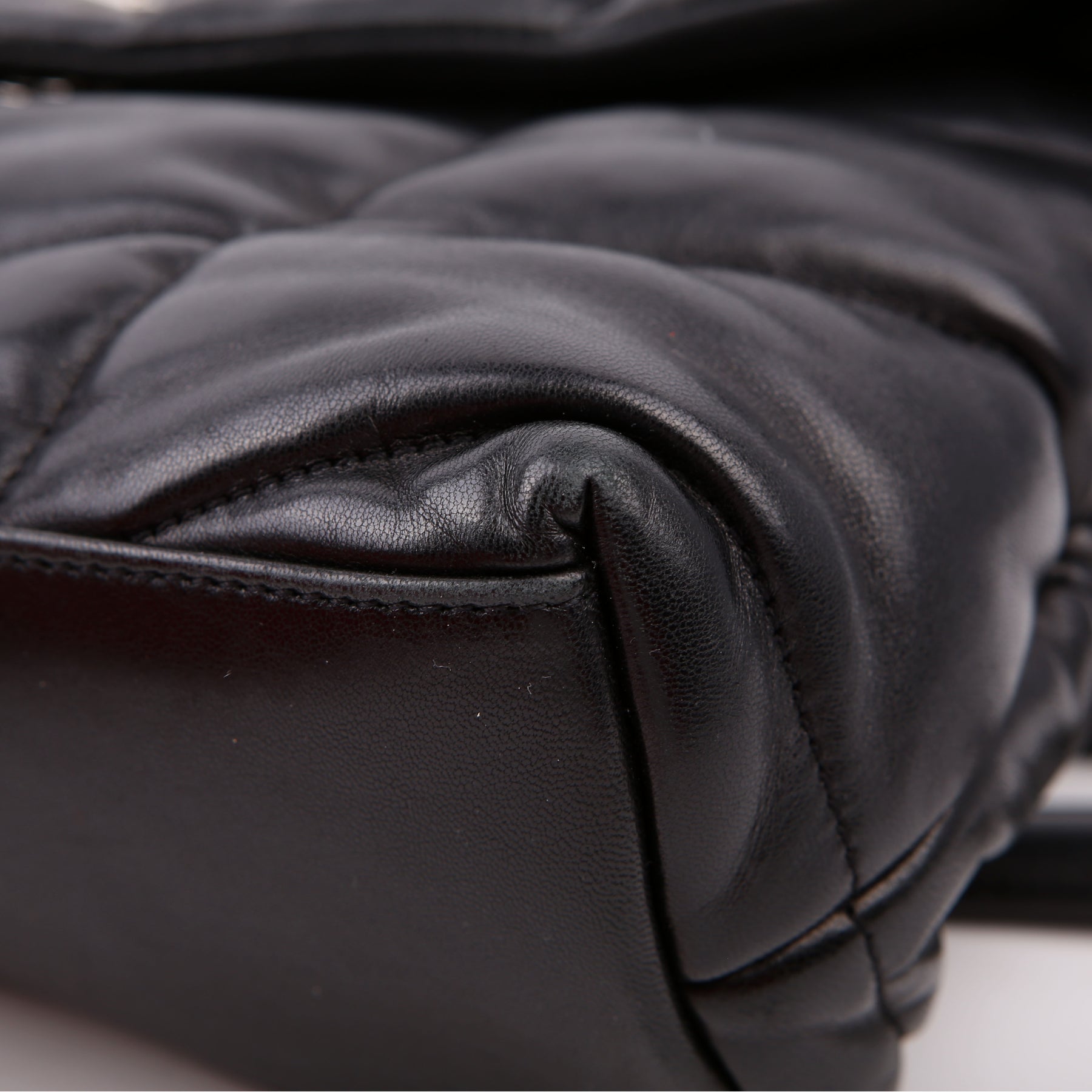 This pre-owned Saint Laurent Puffer Quilted Small is guaranteed 100% authentic. The exterior is in the Saint Laurent Lambskin leather.