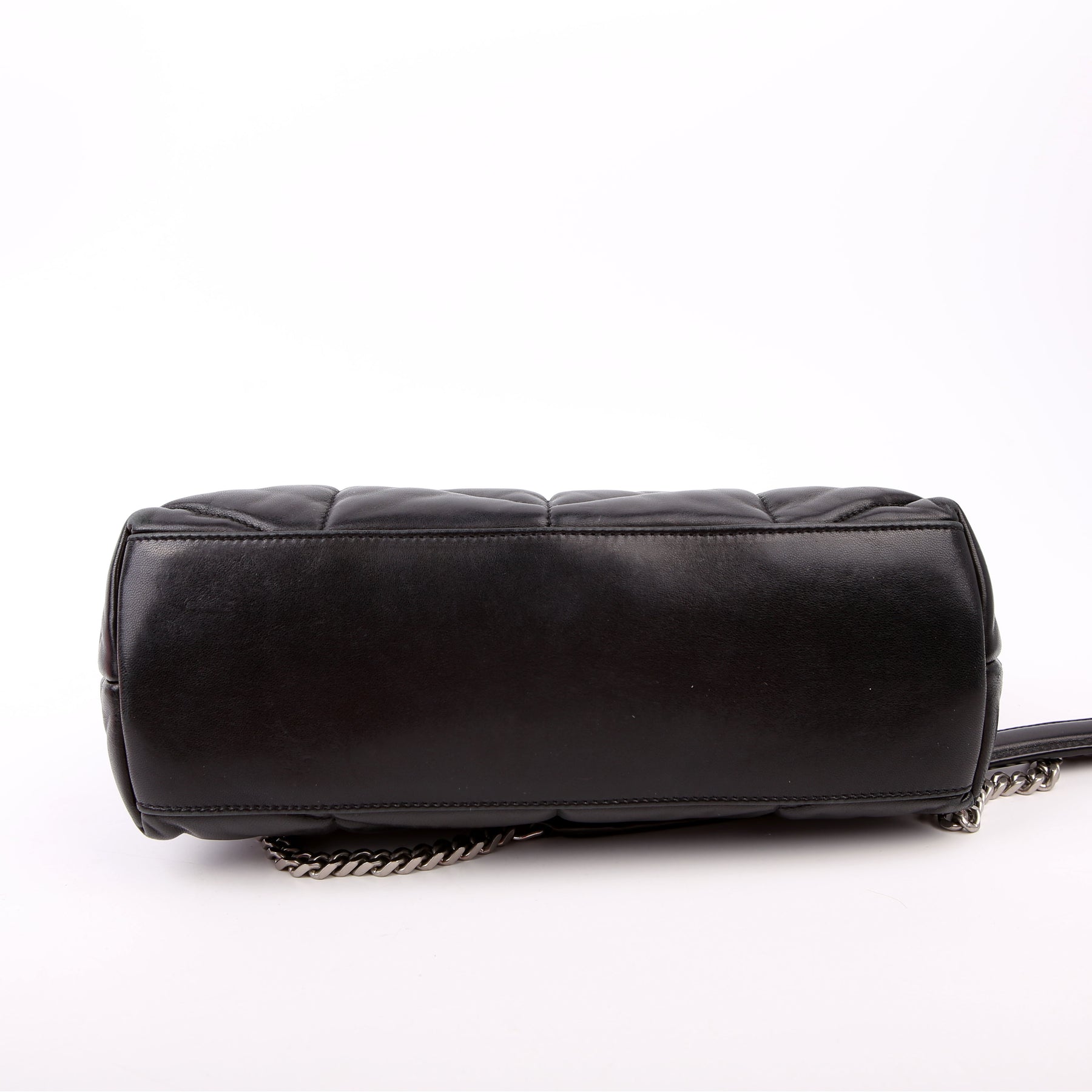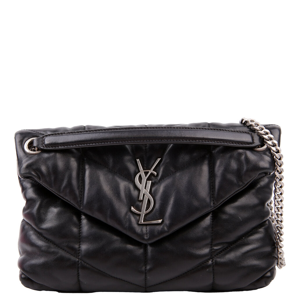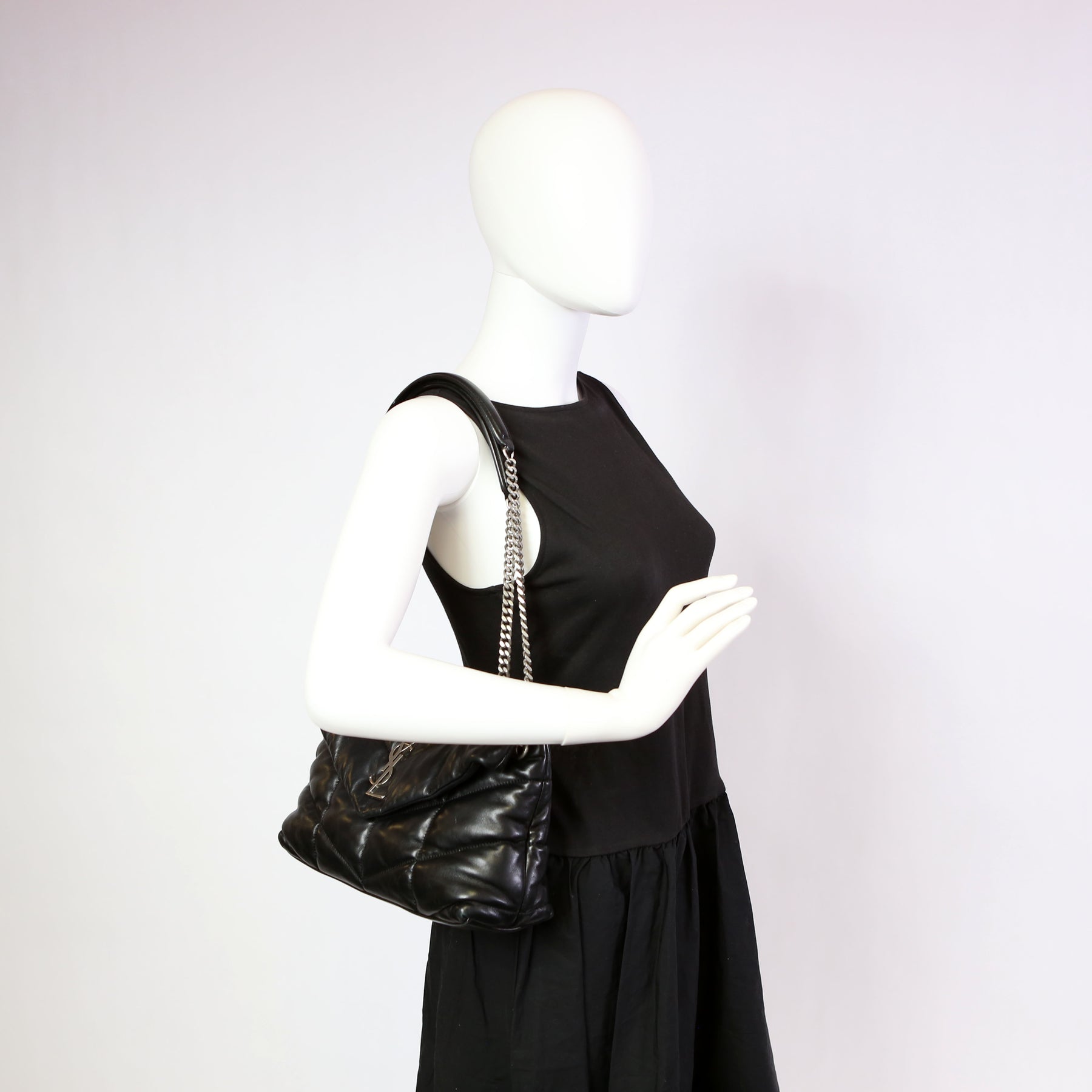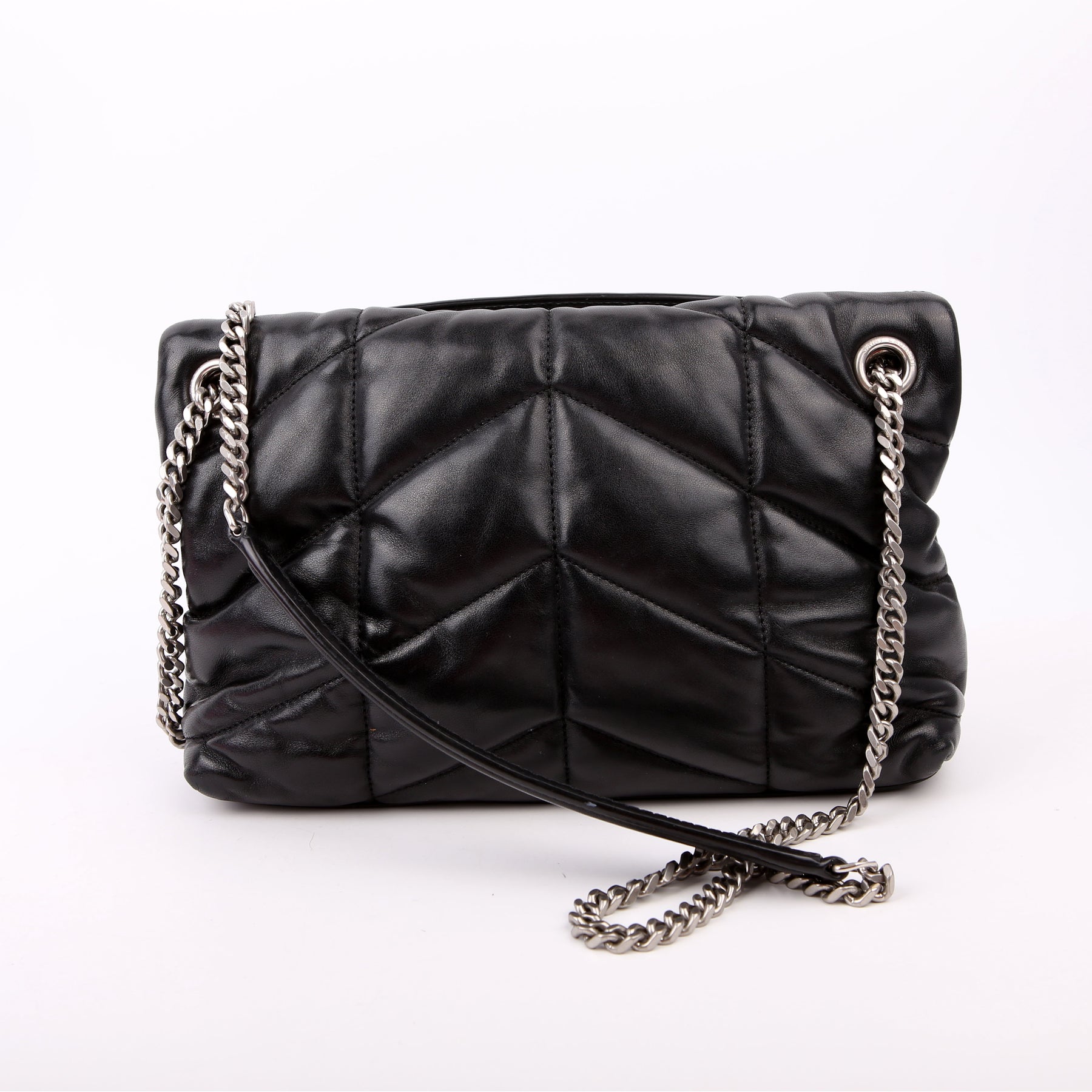 This pre-owned Saint Laurent Puffer Quilted Small is guaranteed 100% authentic. The exterior is in the Saint Laurent Lambskin leather.