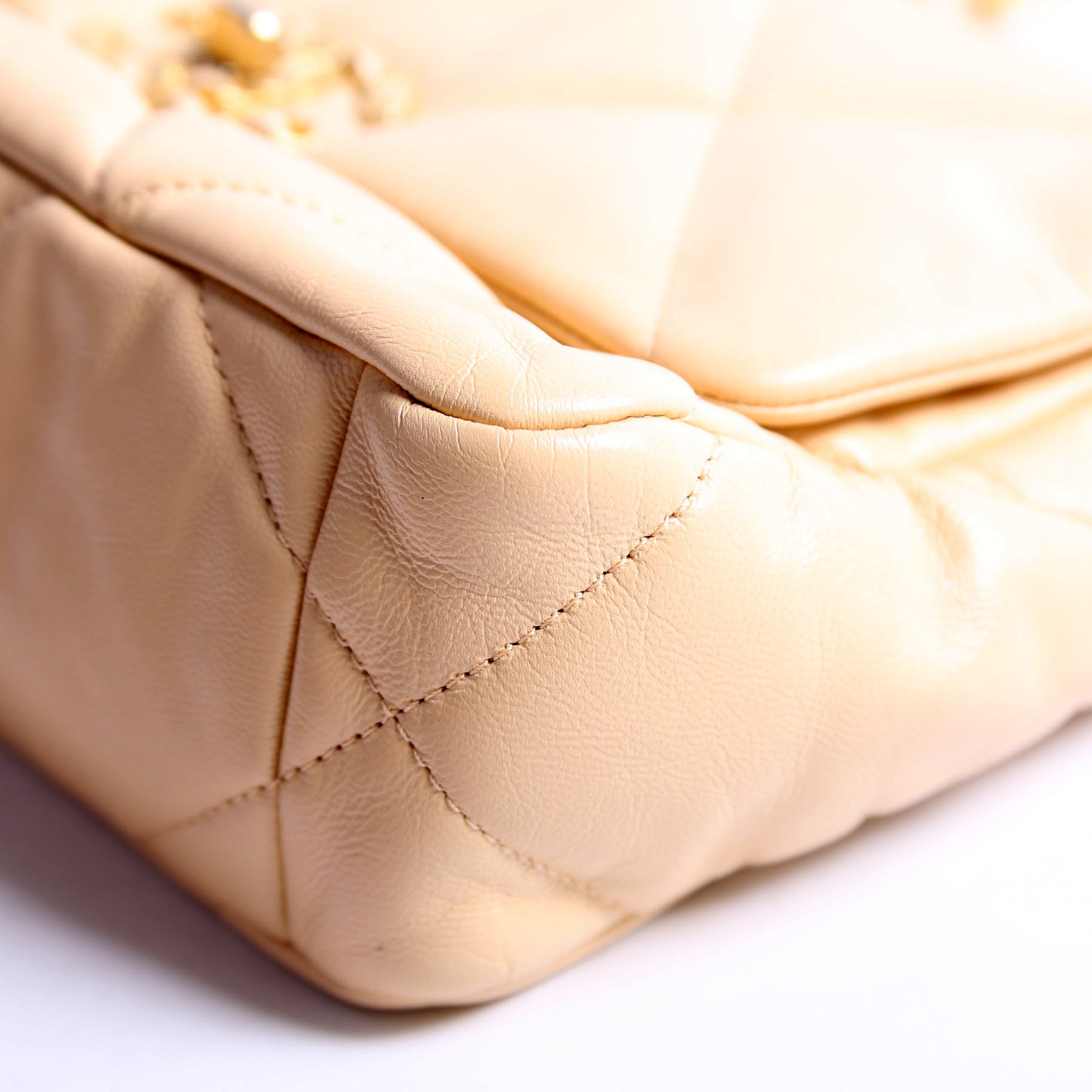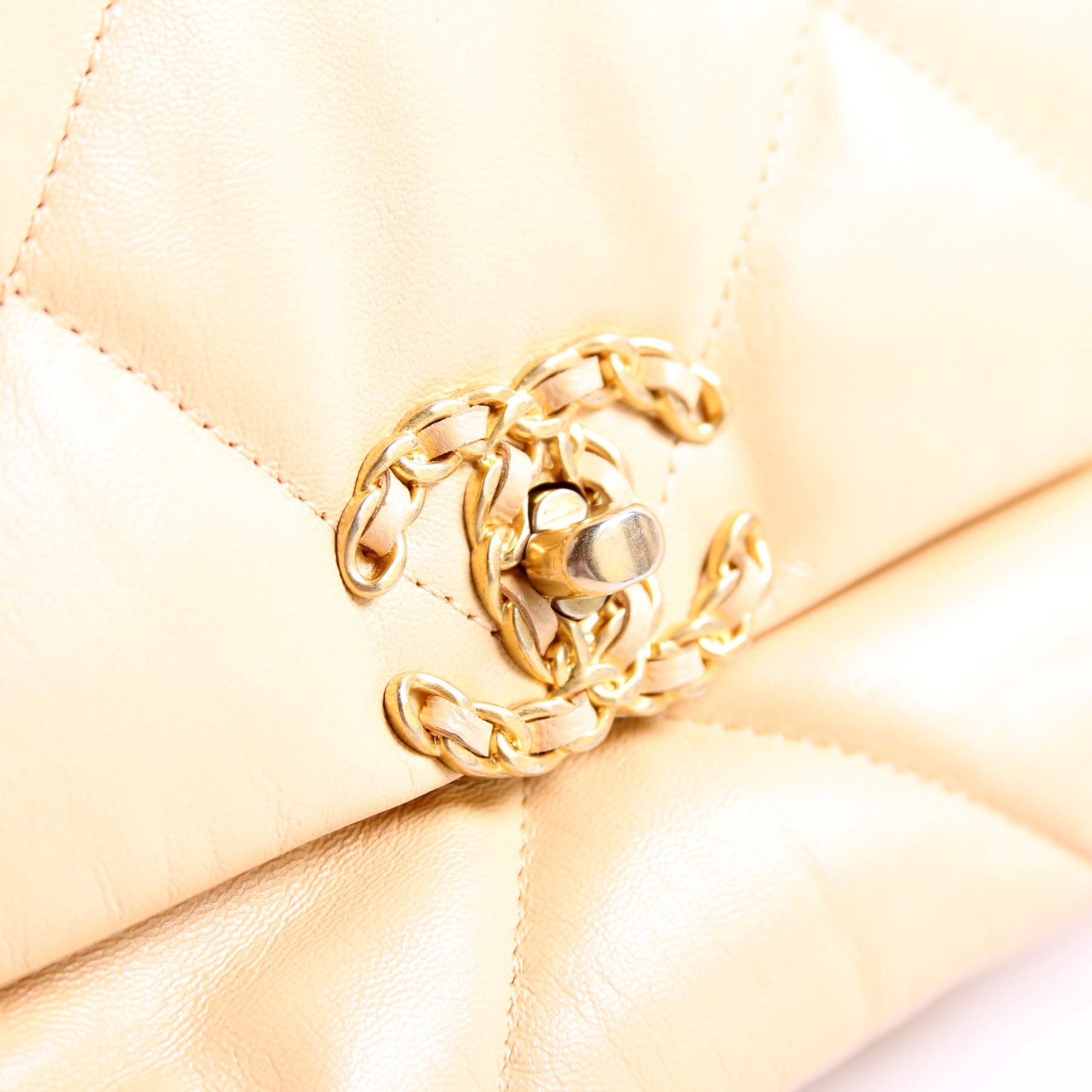 This pre-owned Chanel Quilted Goatskin 19 Medium Flap is guaranteed 100% authentic. The exterior is in the classic Chanel Quilted Goatskin leather.