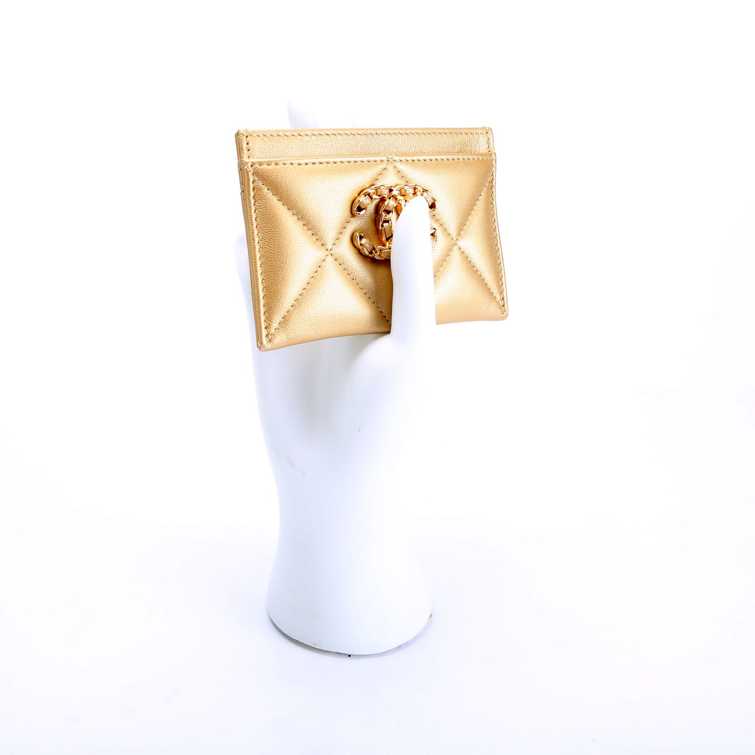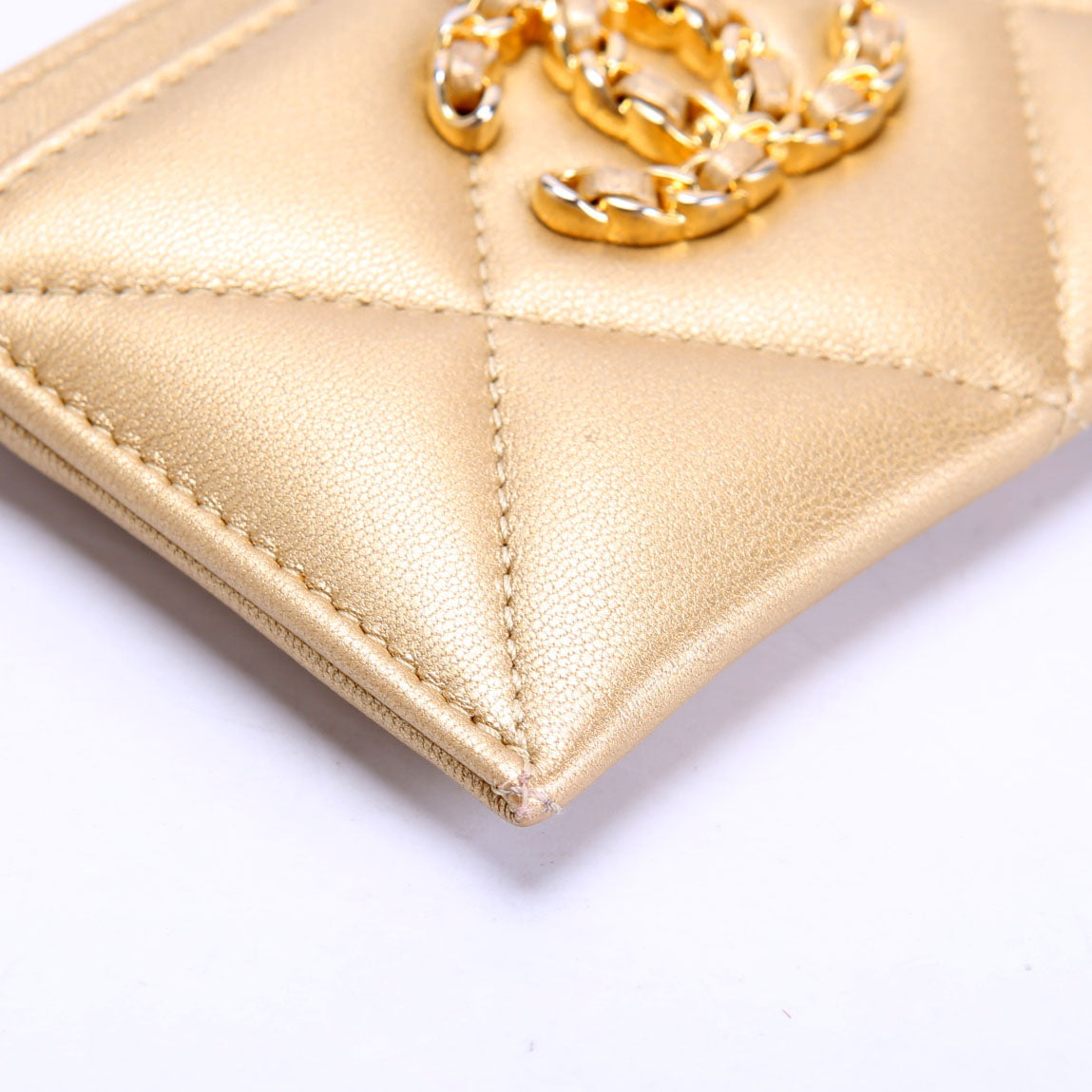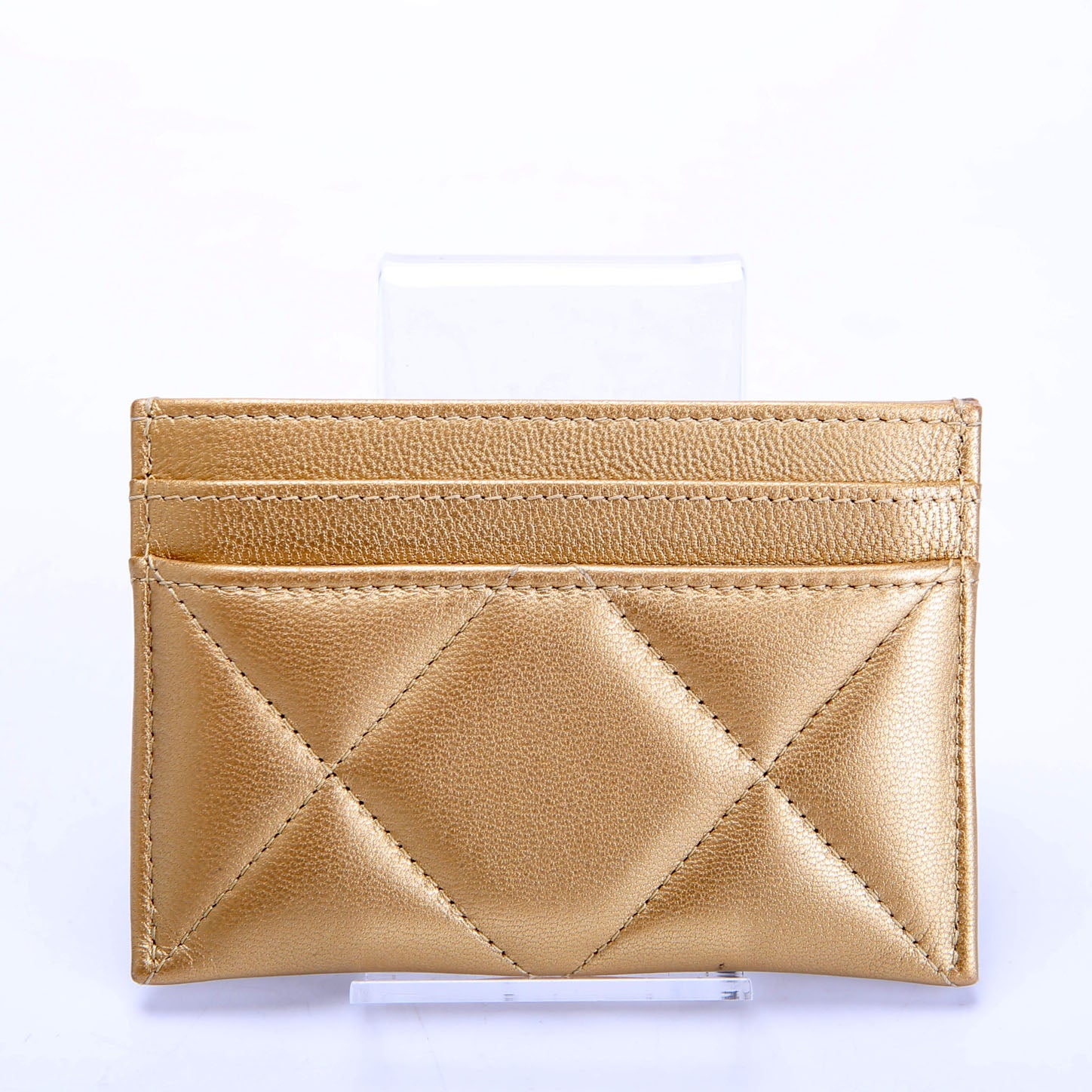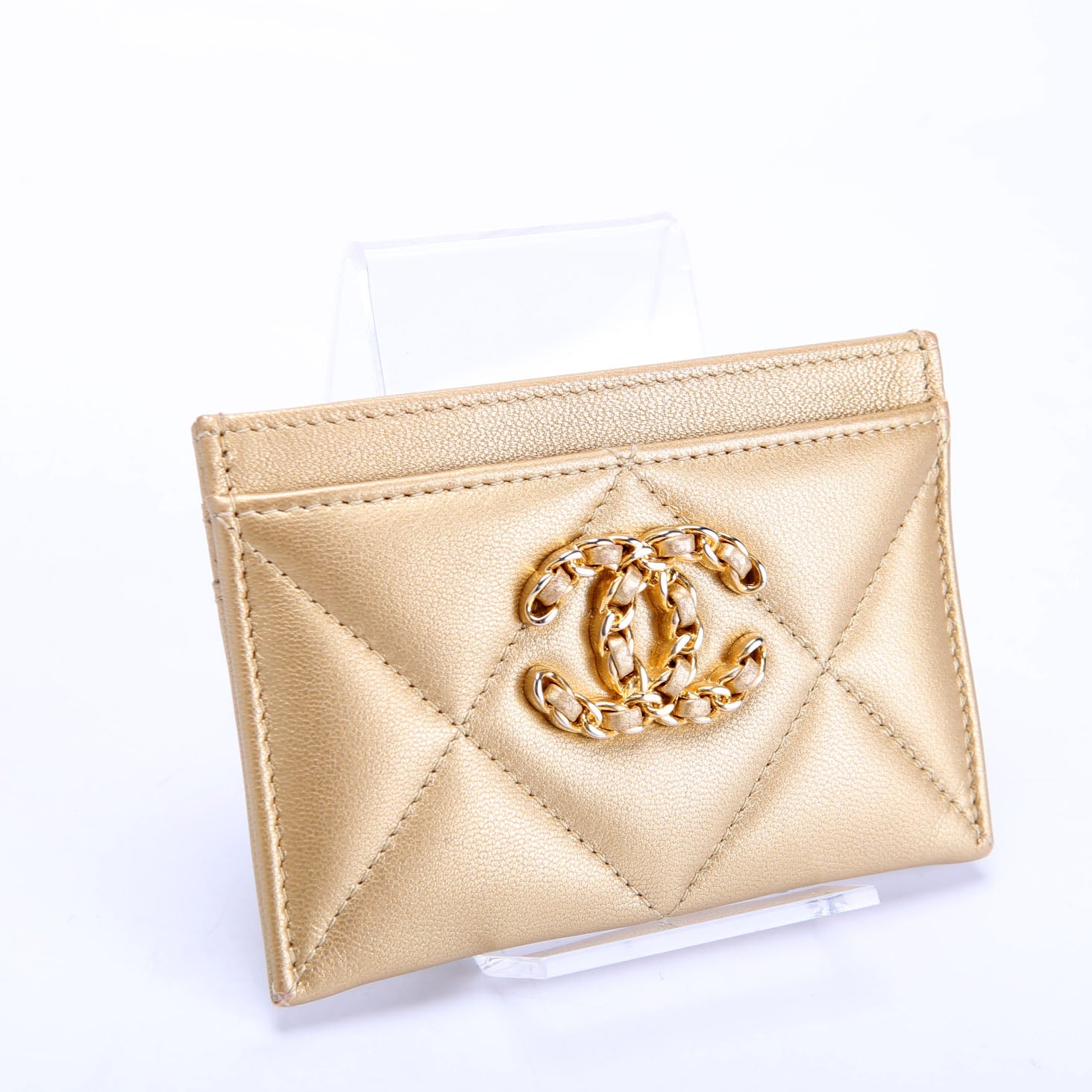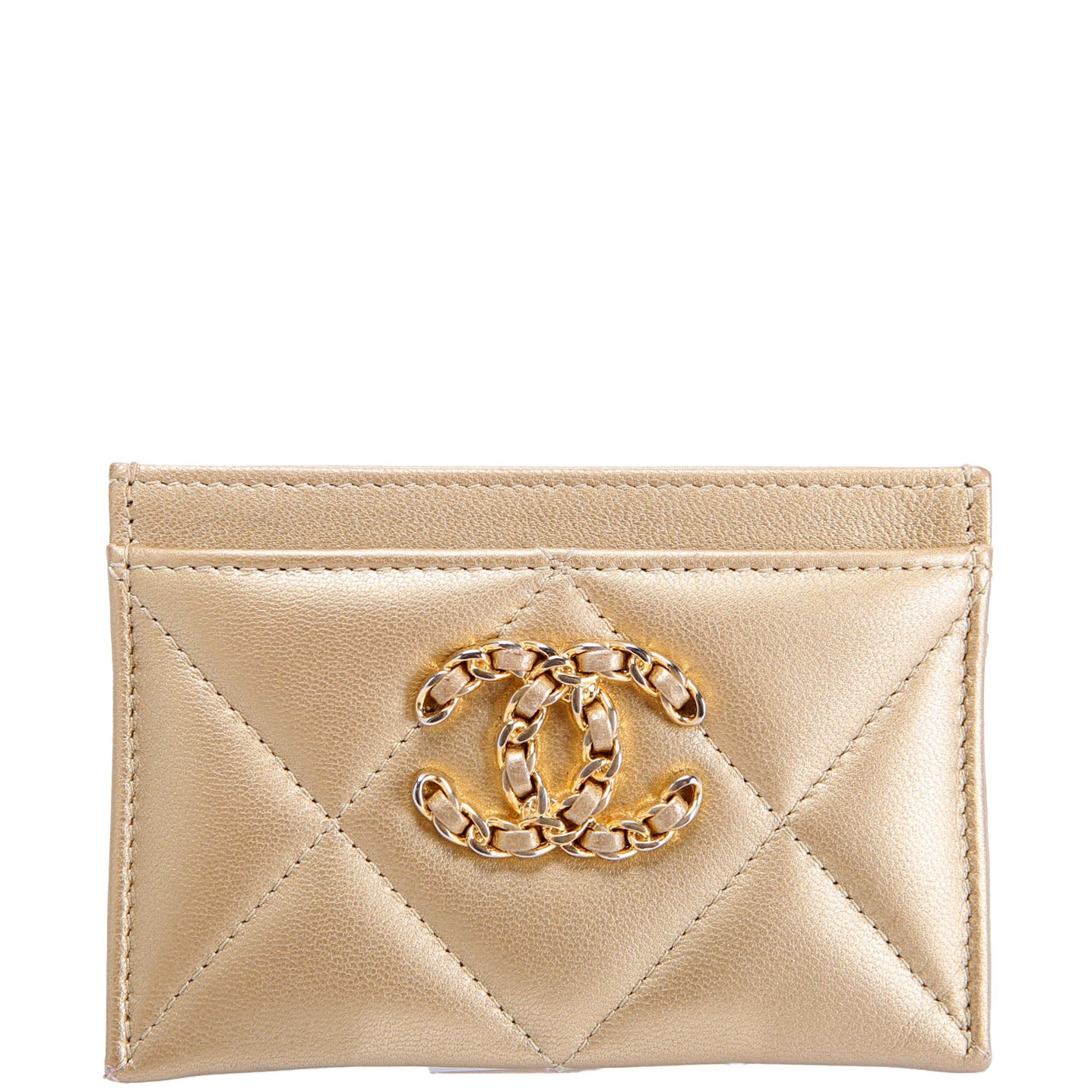 Quilted Lambskin 19 Card Holder Gold