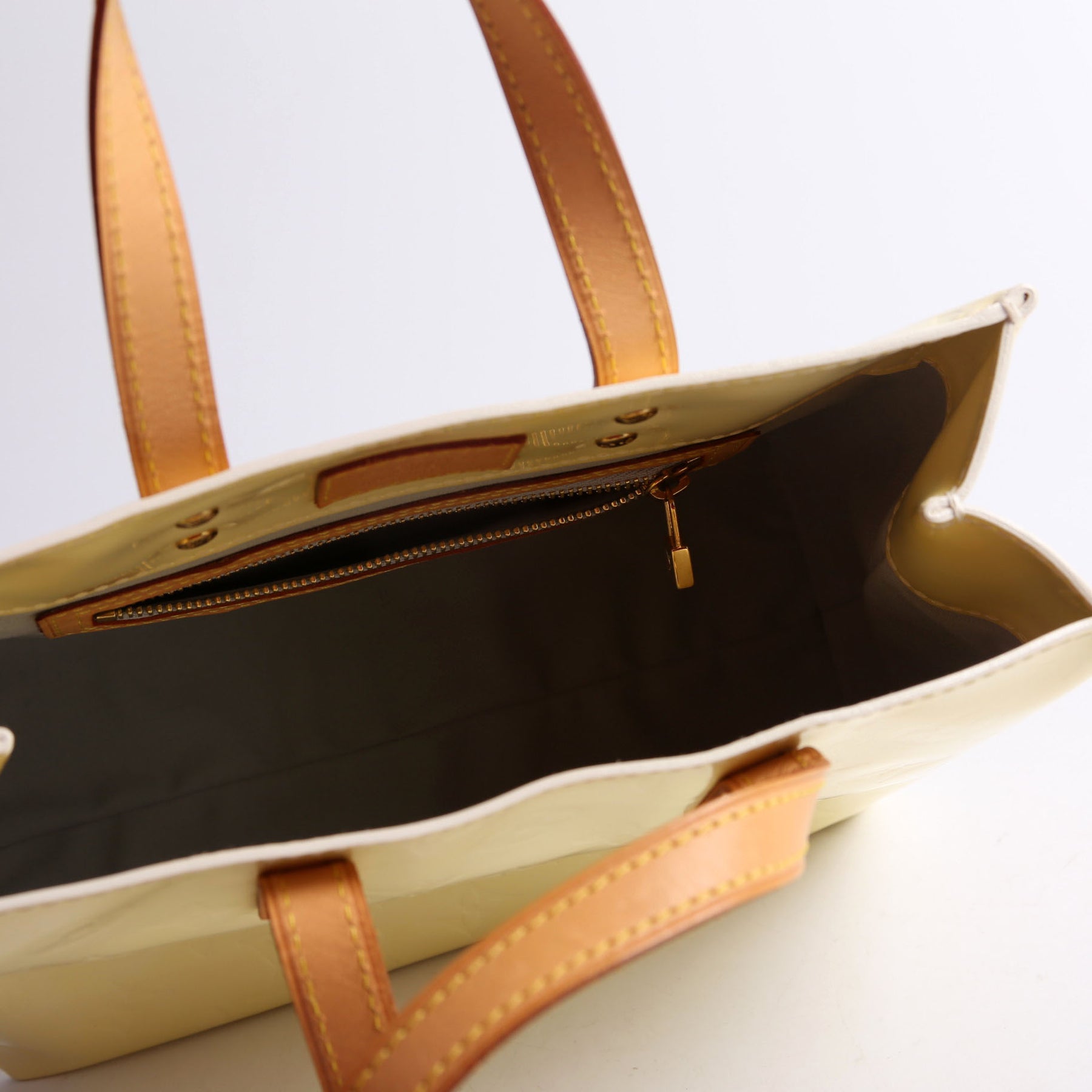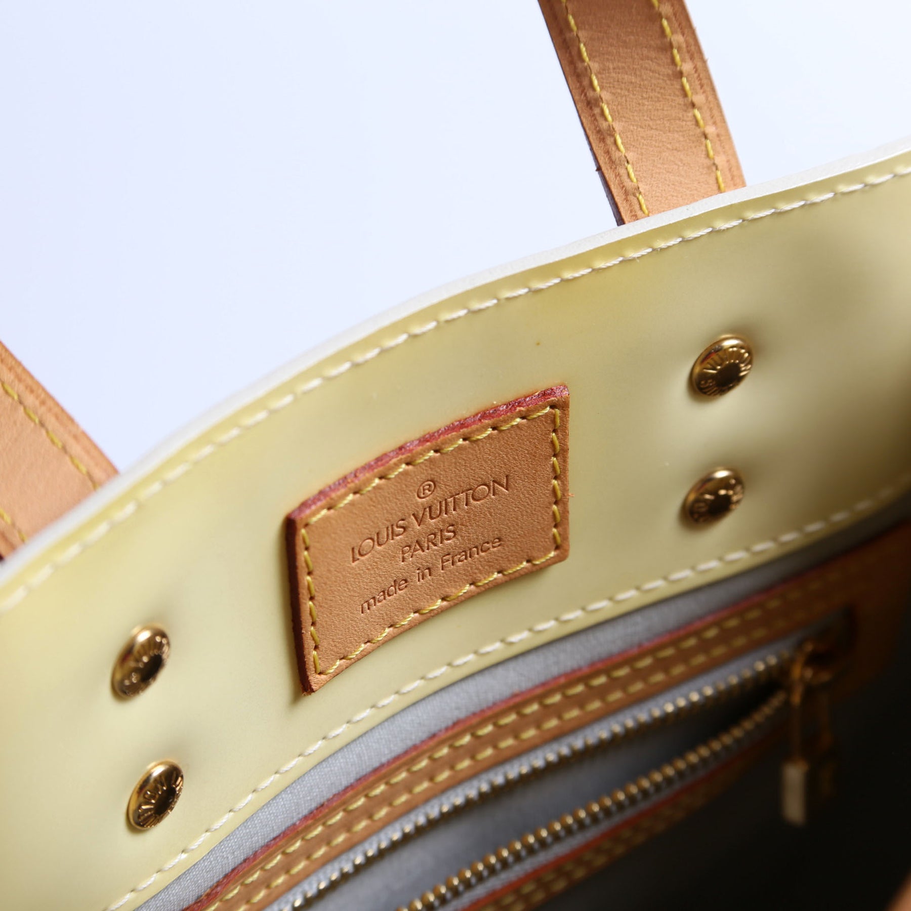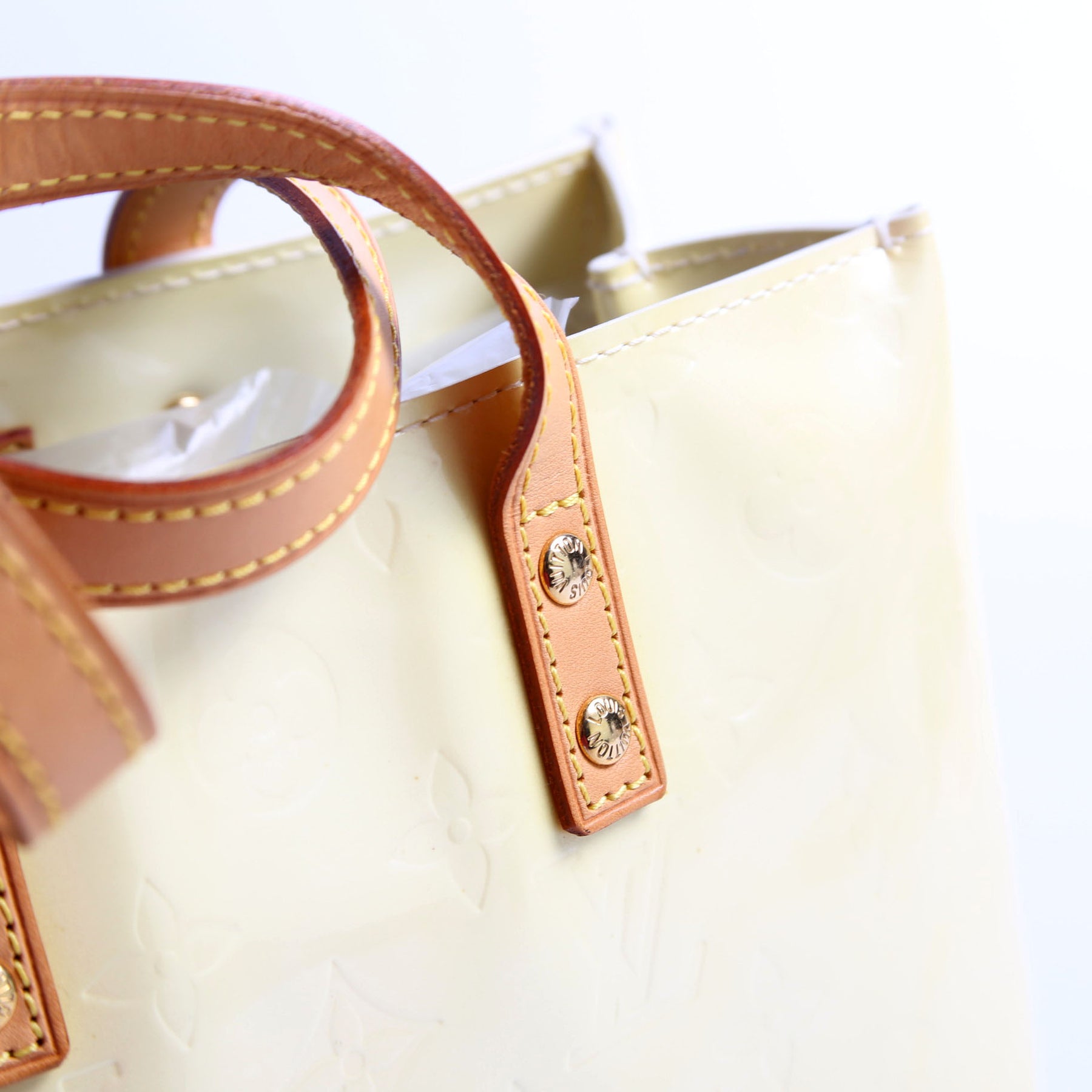 This pre-owned Louis Vuitton Reade PM is guaranteed 100% authentic. The exterior is in the classic Louis Vuitton Vernis leather.