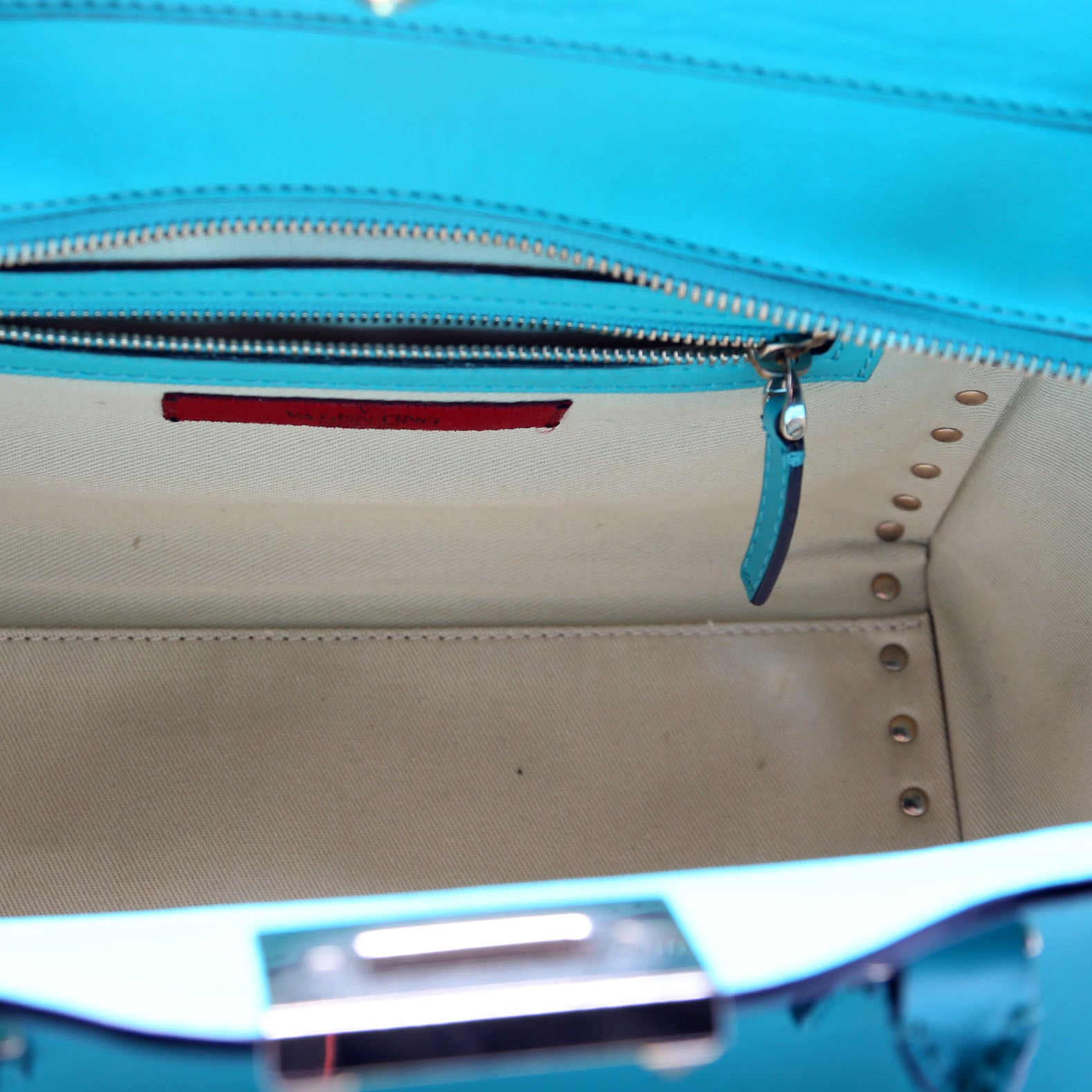Rockstud Double Handle Tote Small Turquoise
