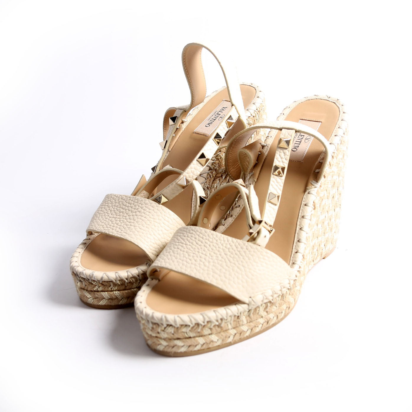 These pre-owned Valentino Rockstud Espadrille Wedges are guaranteed 100% authentic.