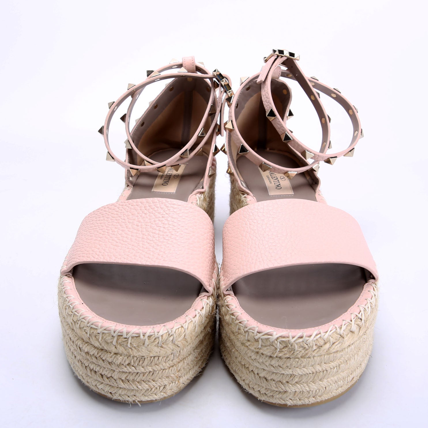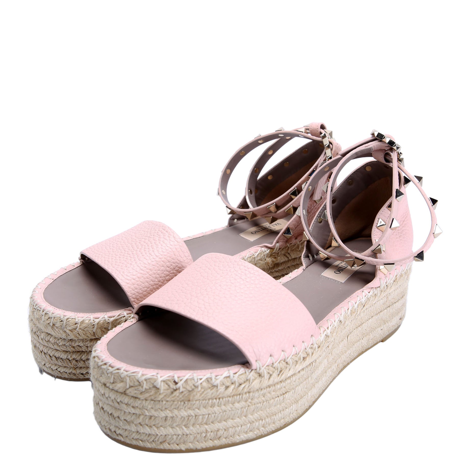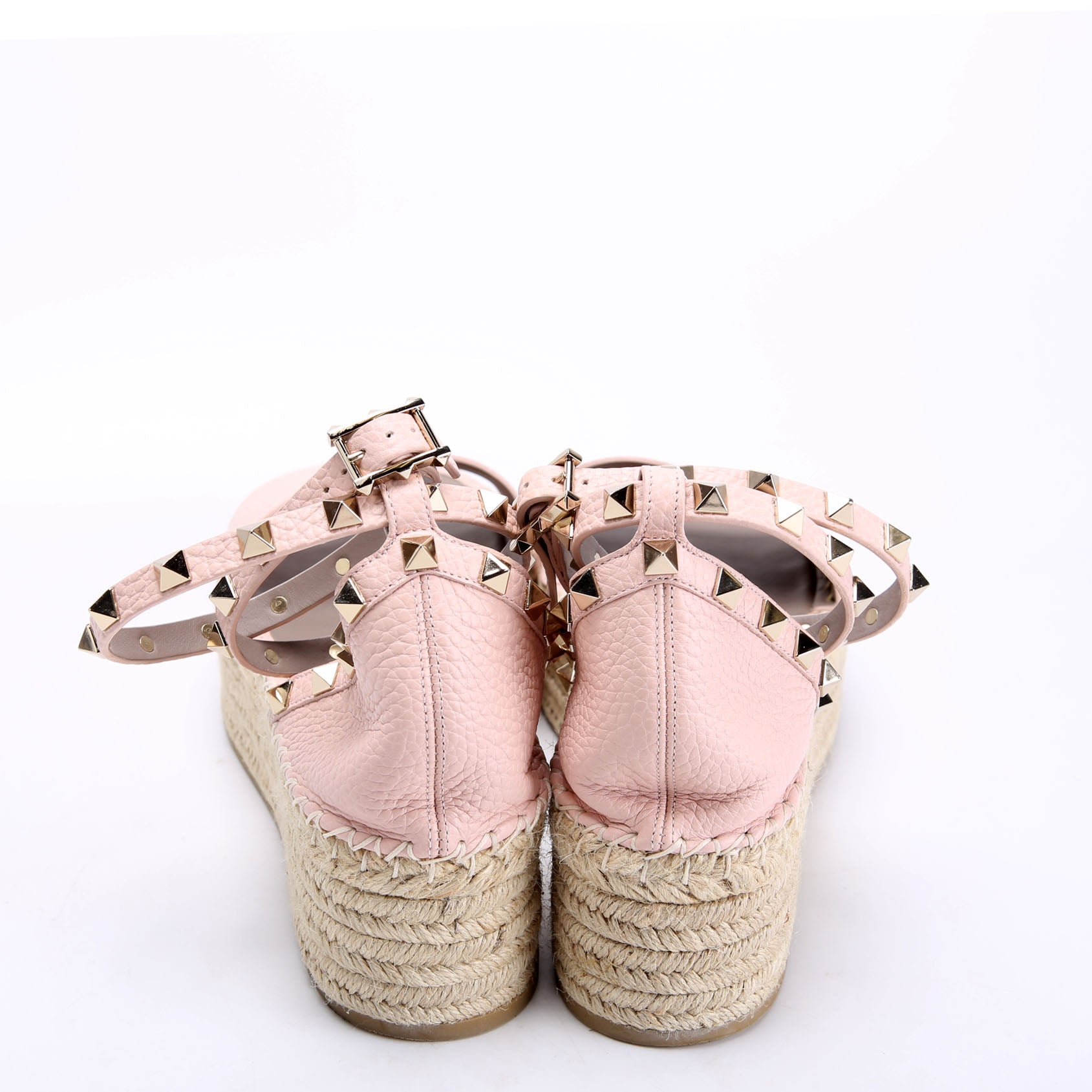 These pre-owned Valentino Rockstud Platform Espadrille Sandals are guaranteed 100% authentic.