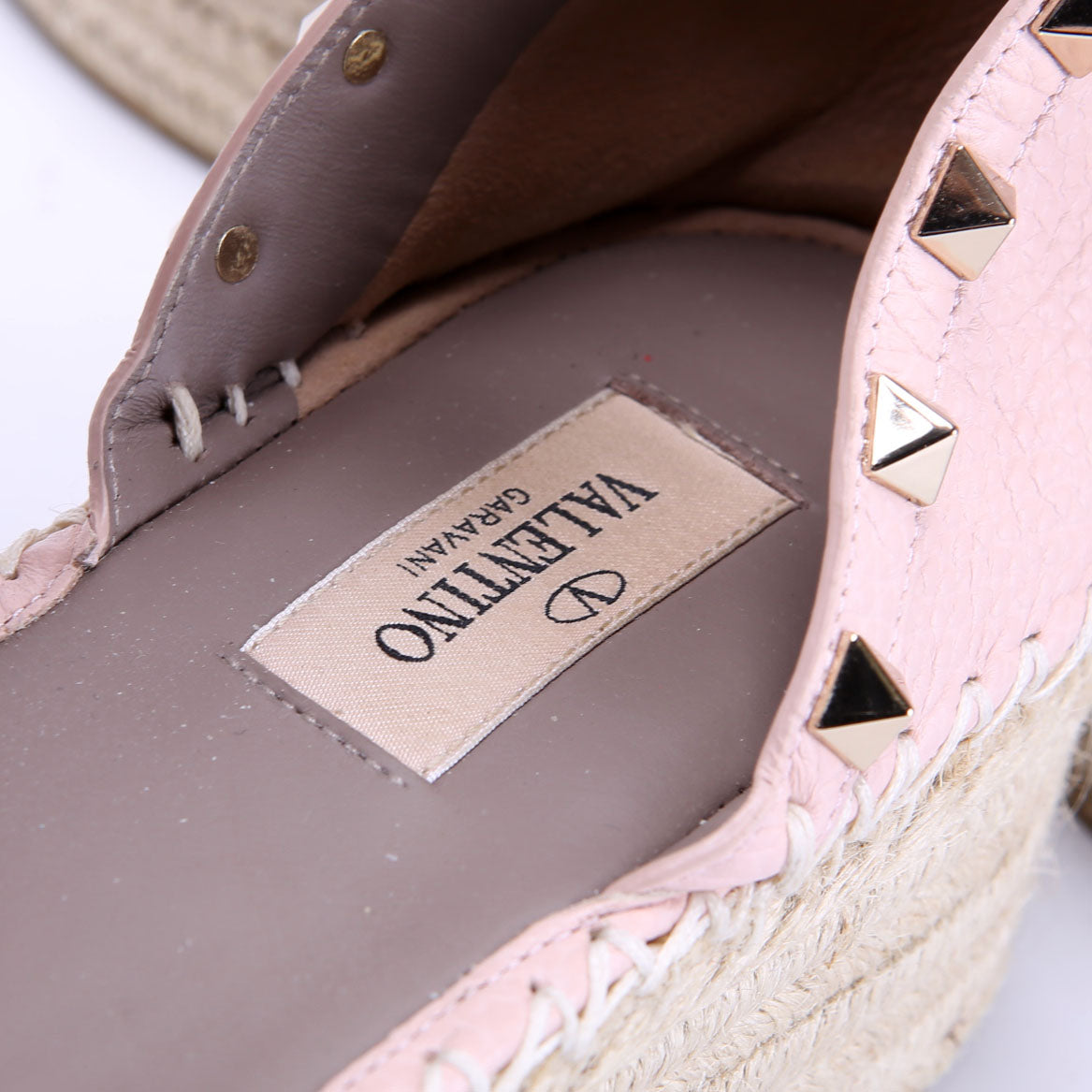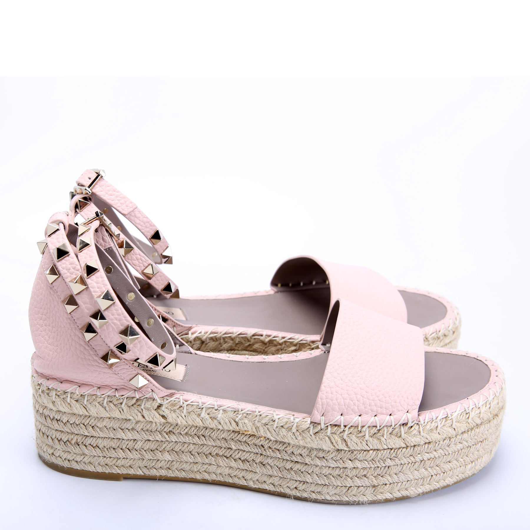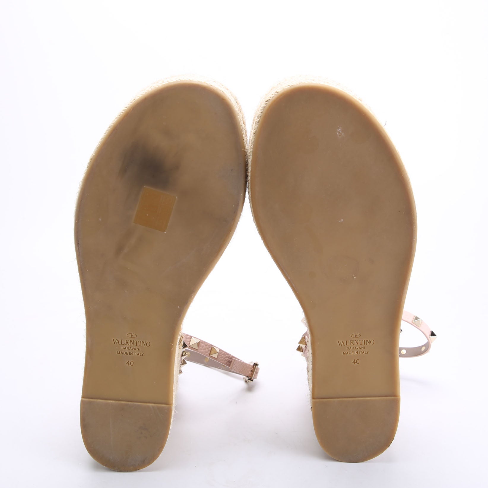 These pre-owned Valentino Rockstud Platform Espadrille Sandals are guaranteed 100% authentic.