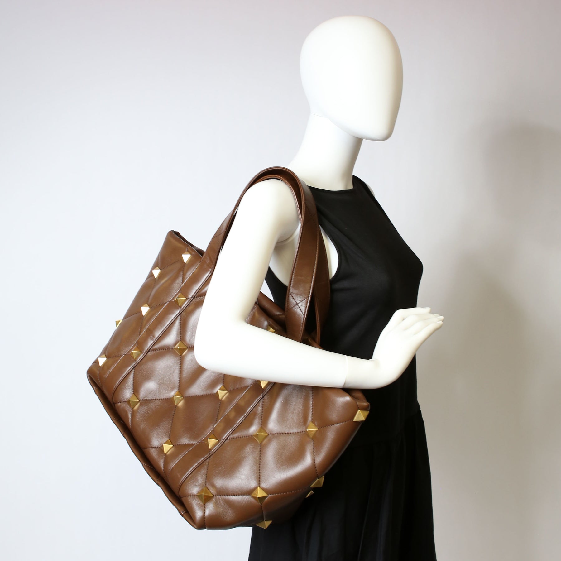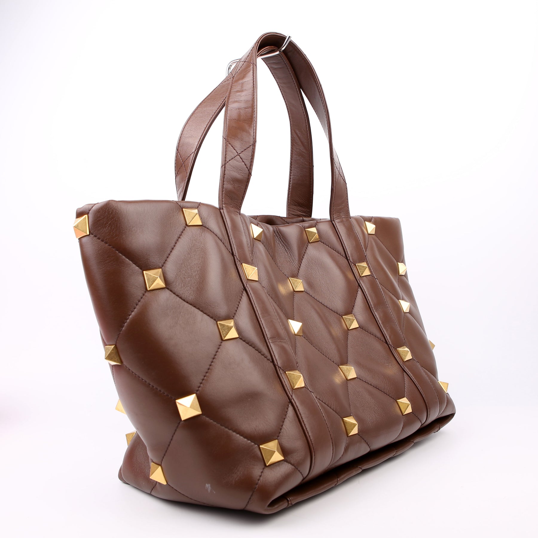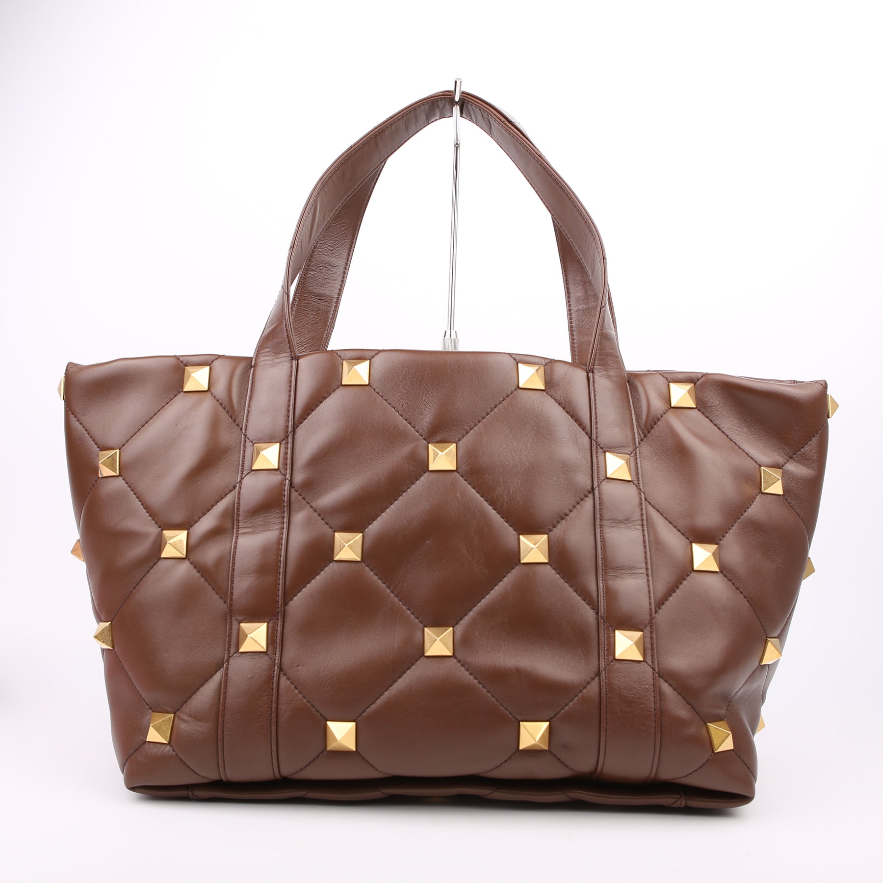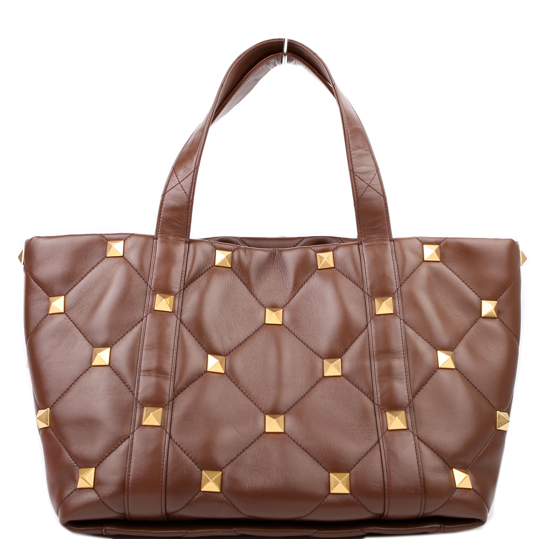 Roman Stud Leather Tote Brown