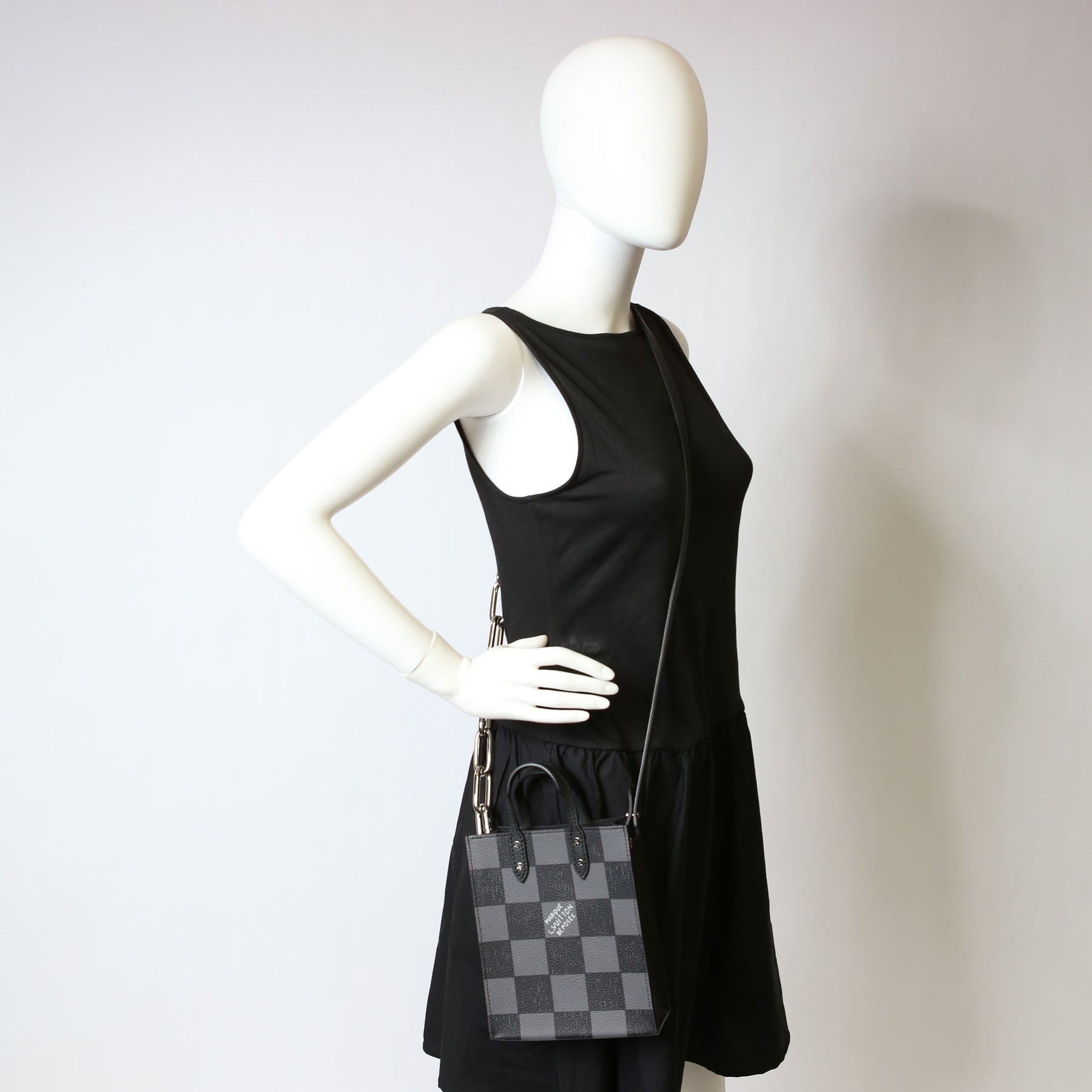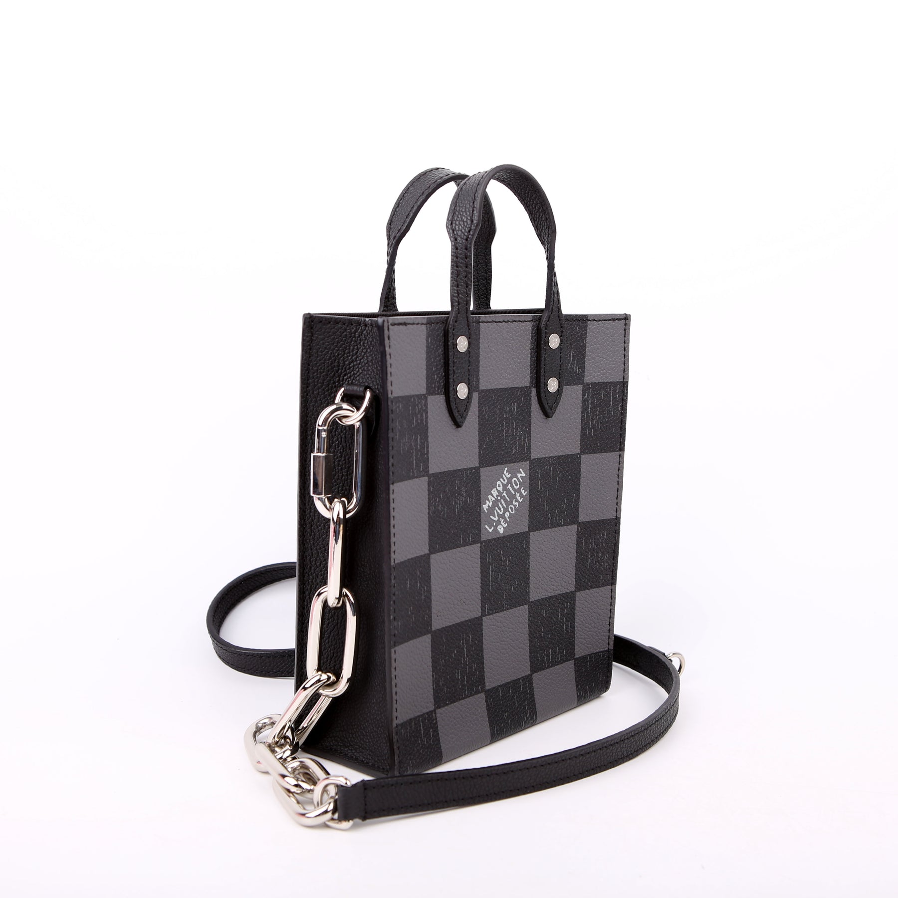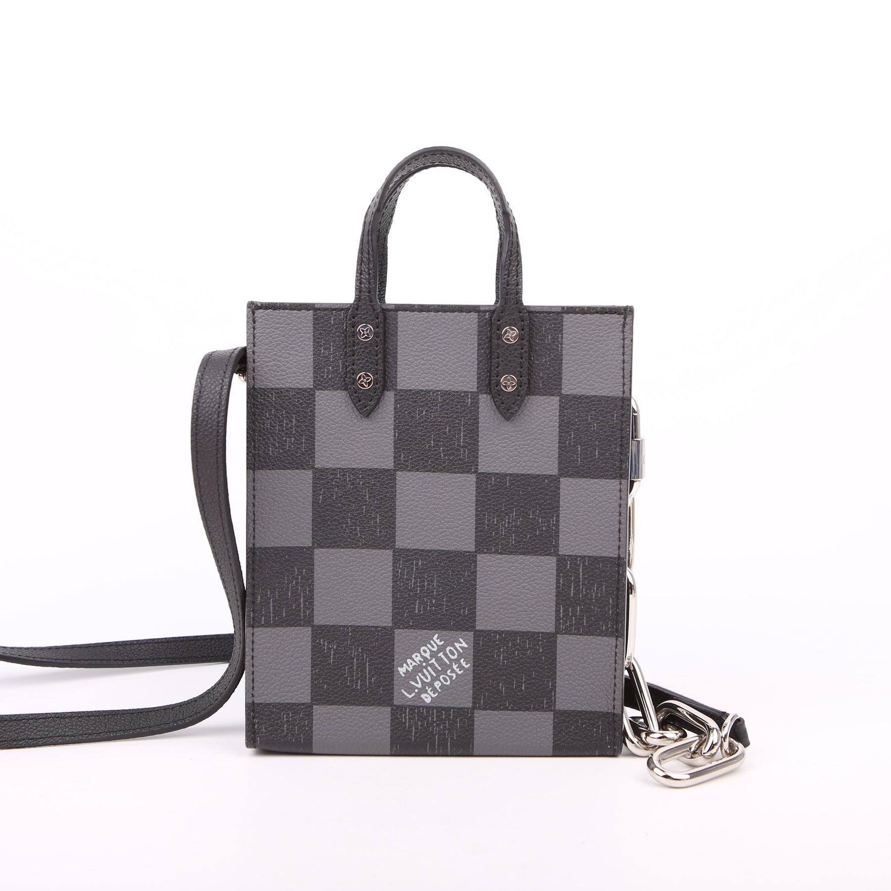This pre-owned Louis Vuitton Sac Plat XS Abloh Checkers is guaranteed 100% authentic.