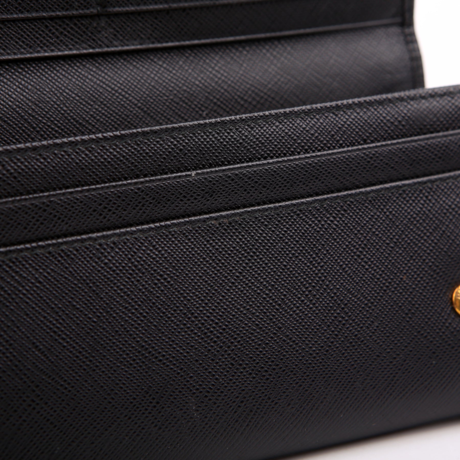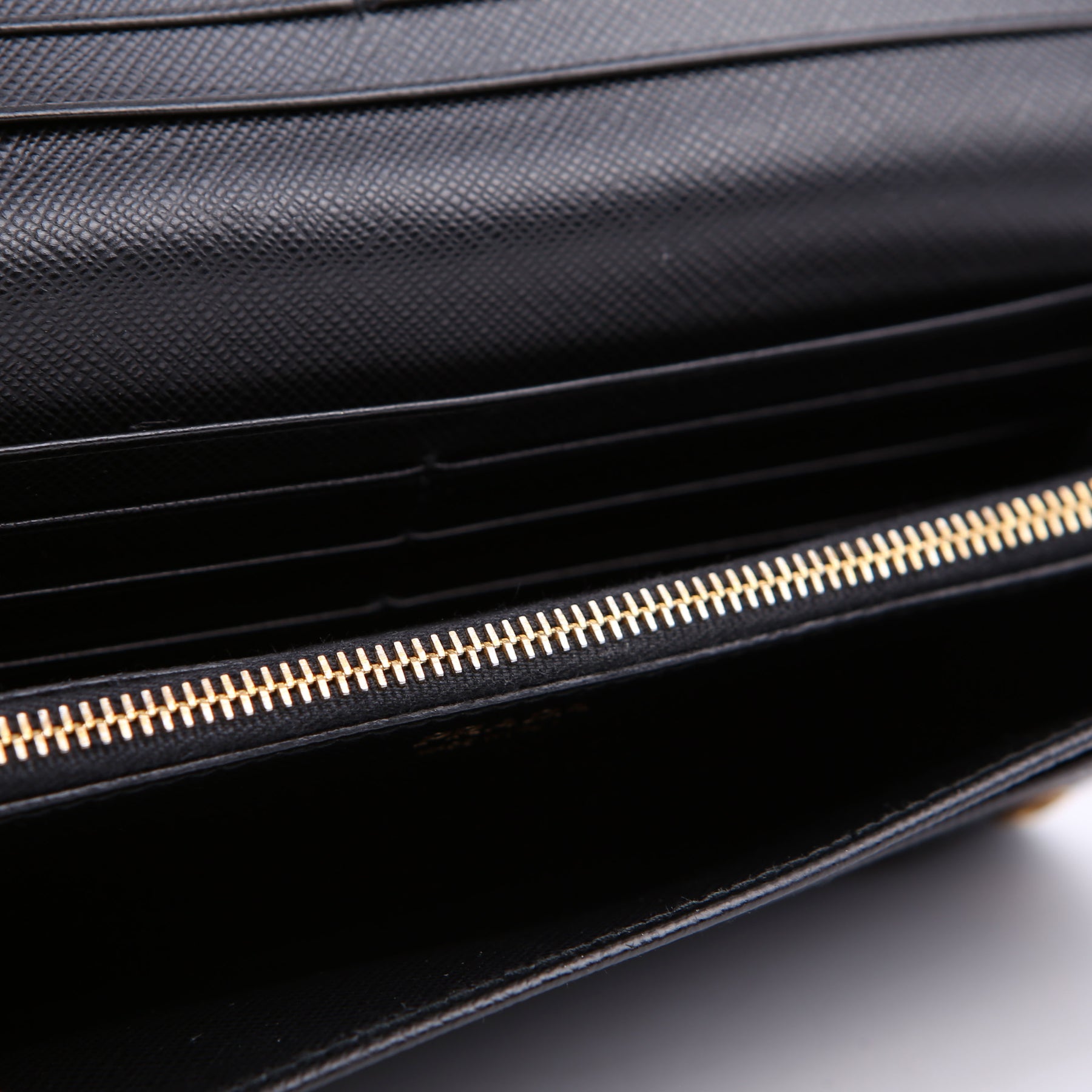 Interior: The interior is clean and free of any major signs of wear. The interior features six bill slots, ten card slots, one zip closure coin pouch, and one removable card case.