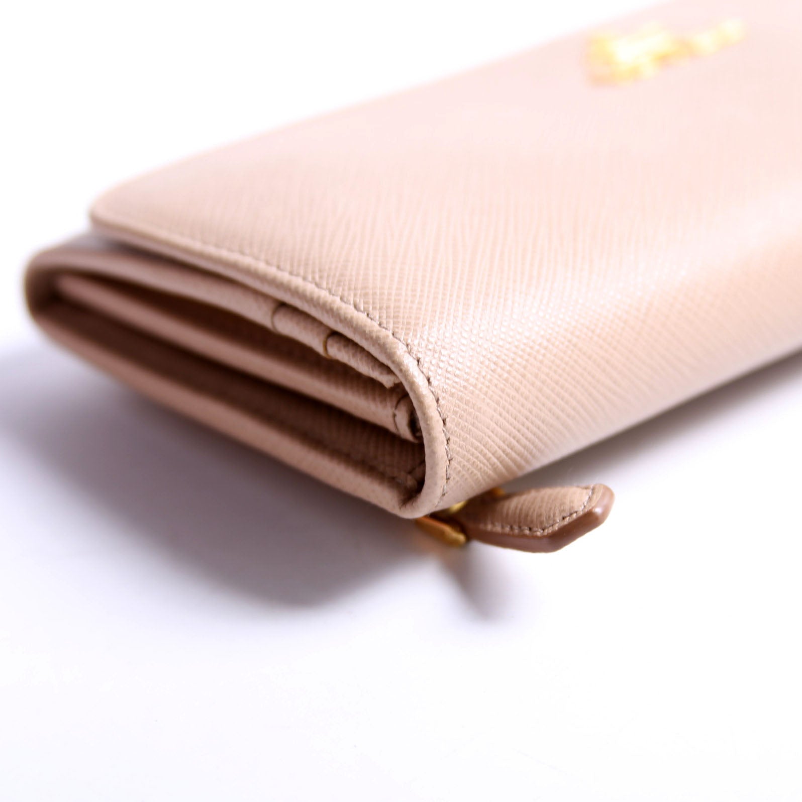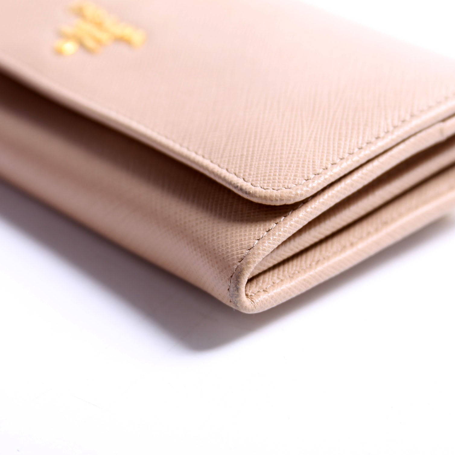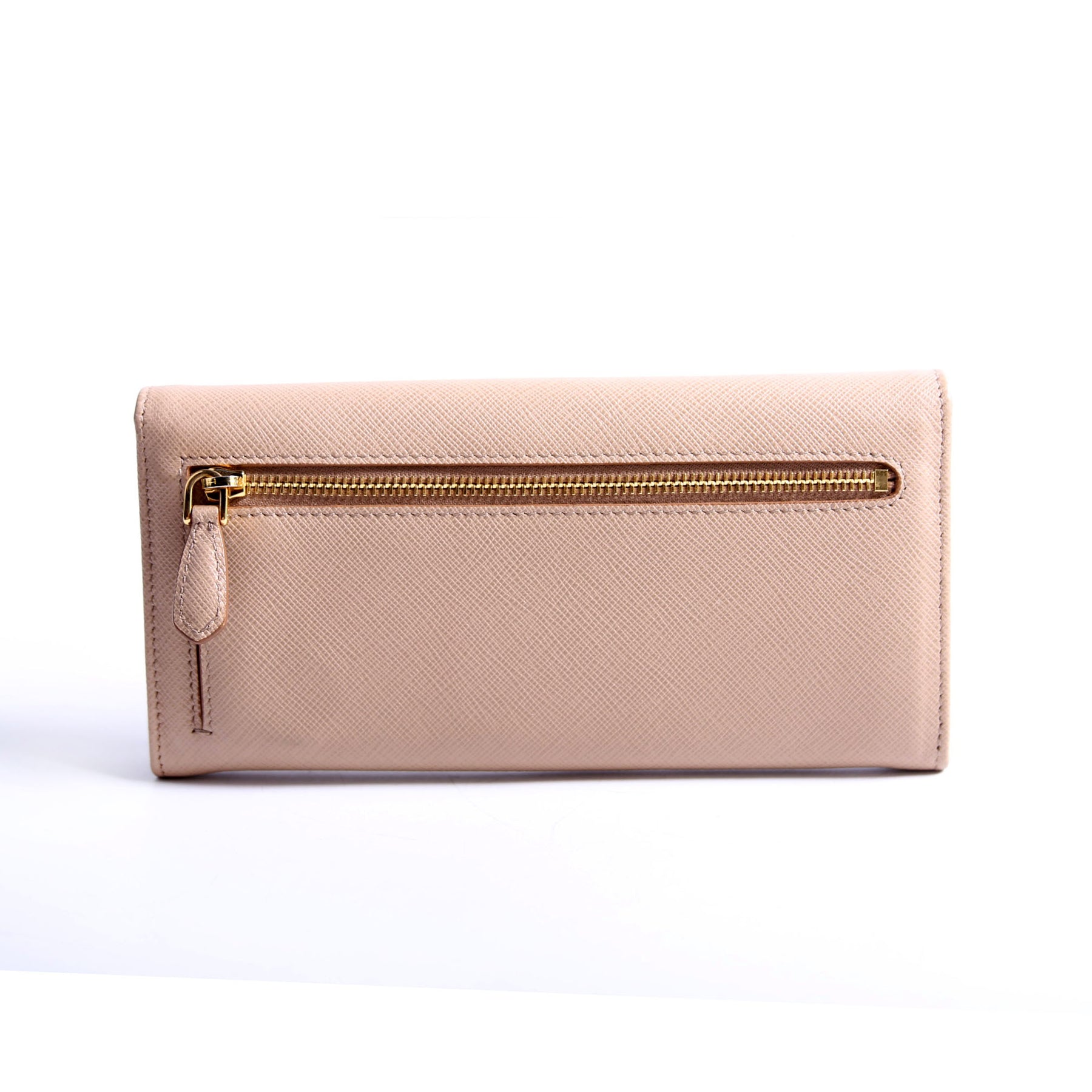 This pre-owned Prada Lux Continental Wallet is guaranteed 100% authentic. The exterior is in the classic Prada Saffiano leather.