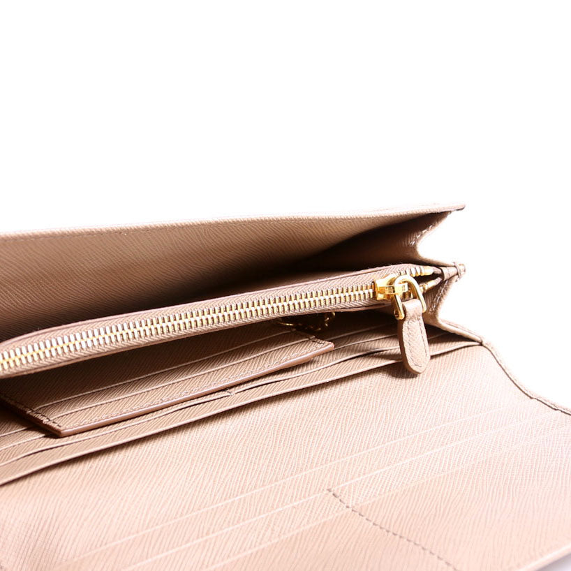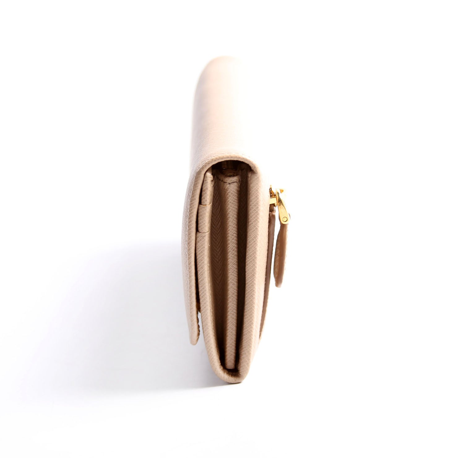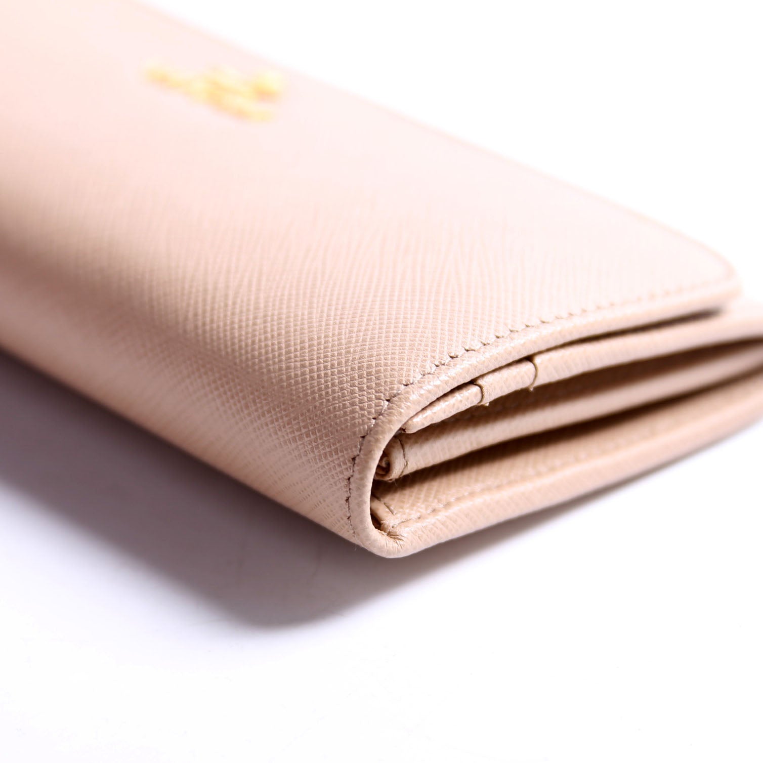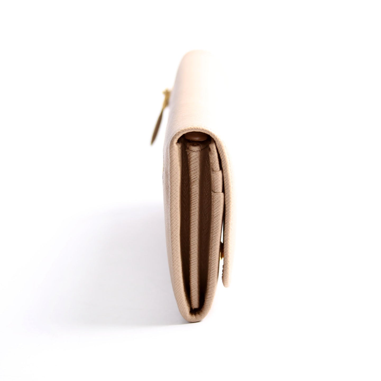 This pre-owned Prada Lux Continental Wallet is guaranteed 100% authentic. The exterior is in the classic Prada Saffiano leather.