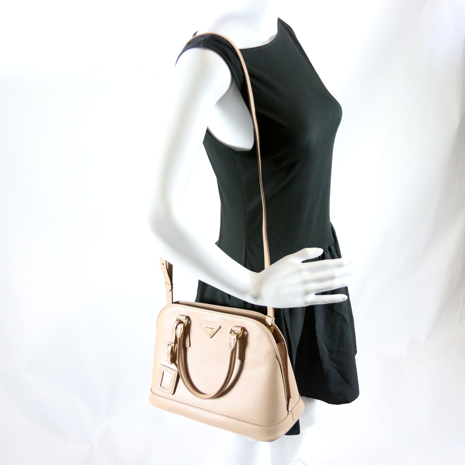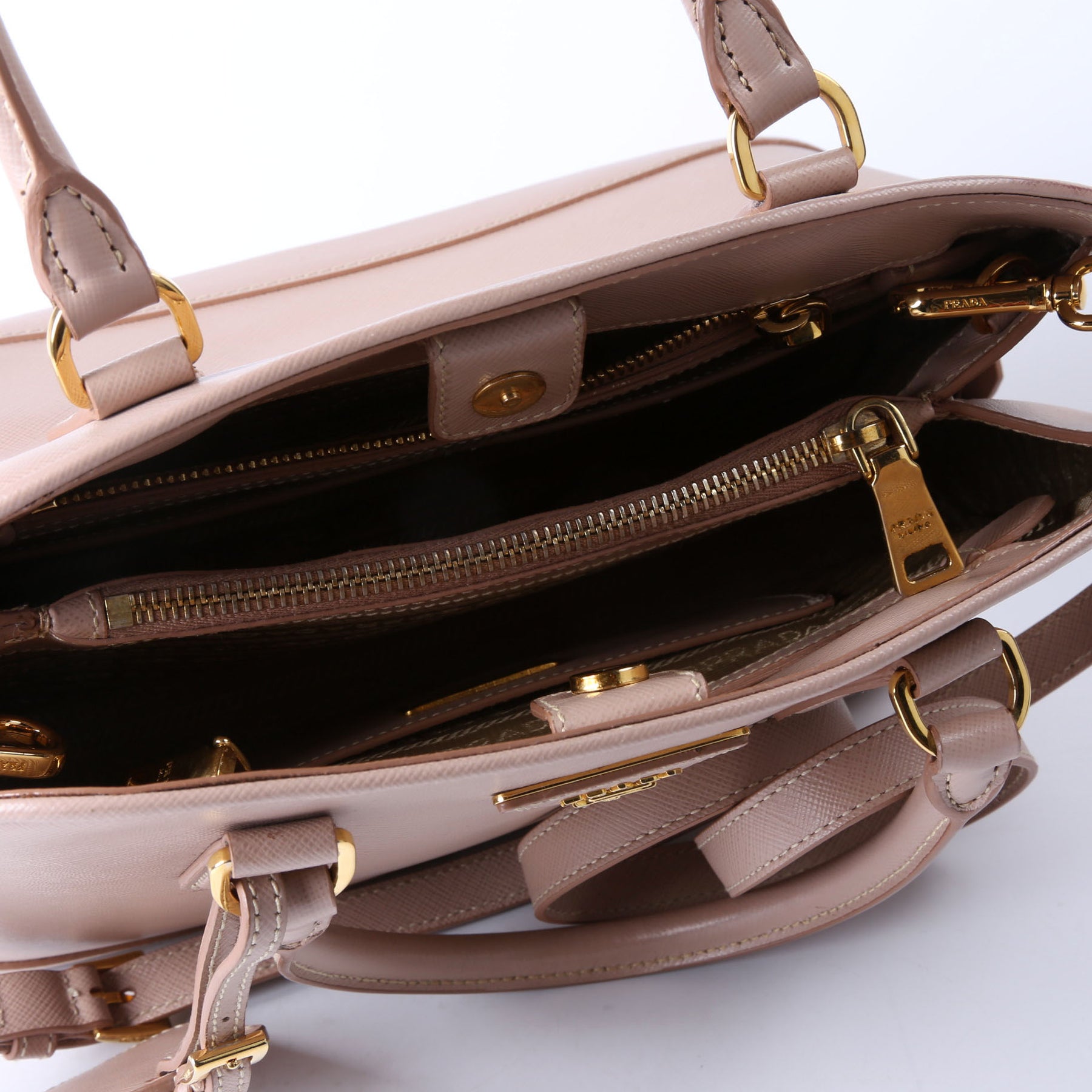 This pre-owned Prada Lux Promenade Medium BL0837 is guaranteed 100% authentic. The exterior is in the classic Prada Saffiano leather.