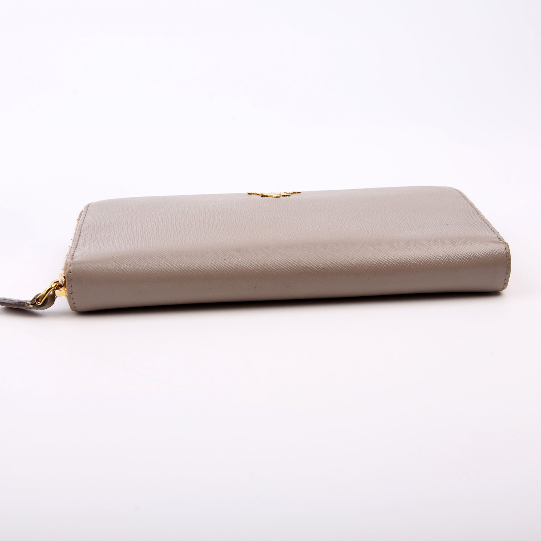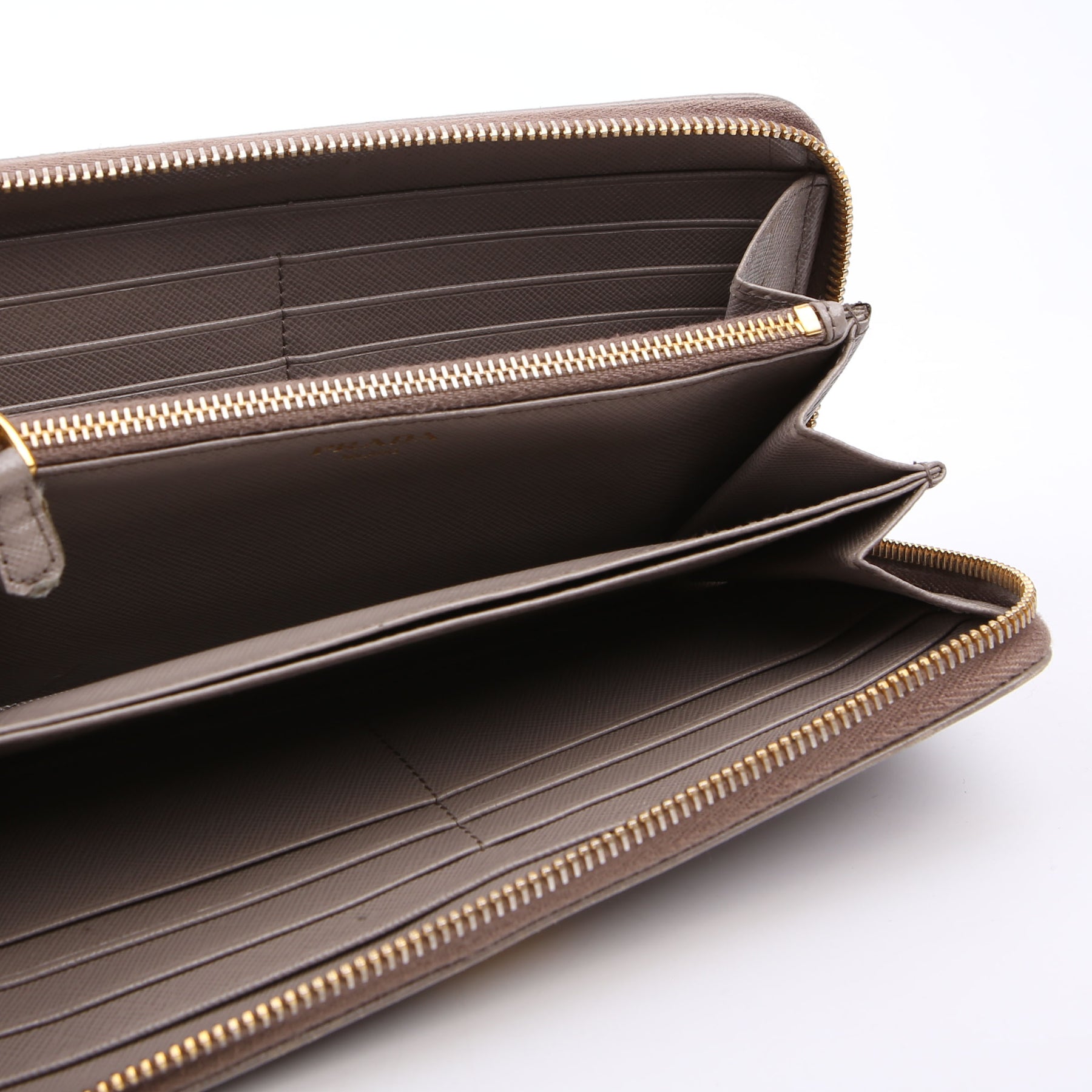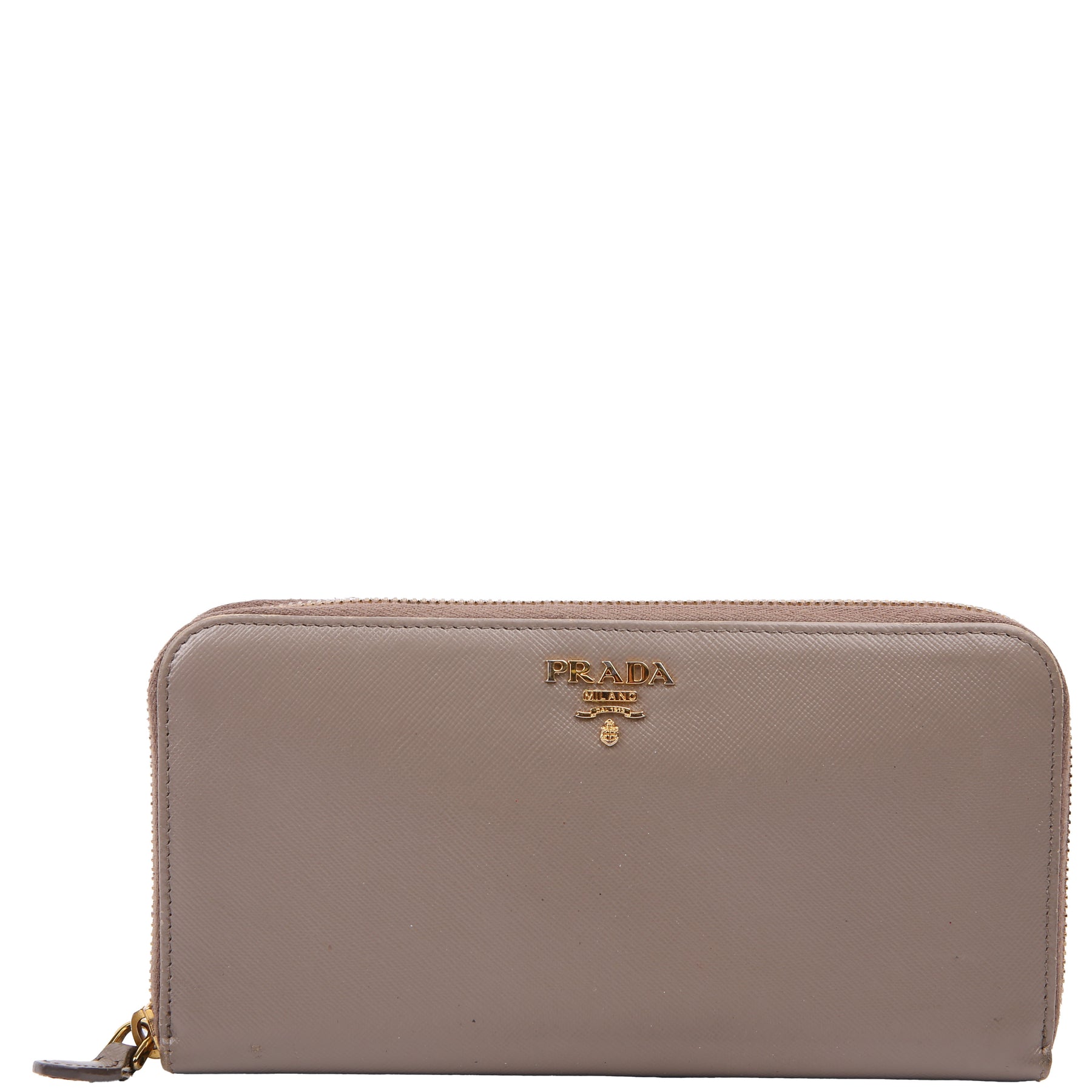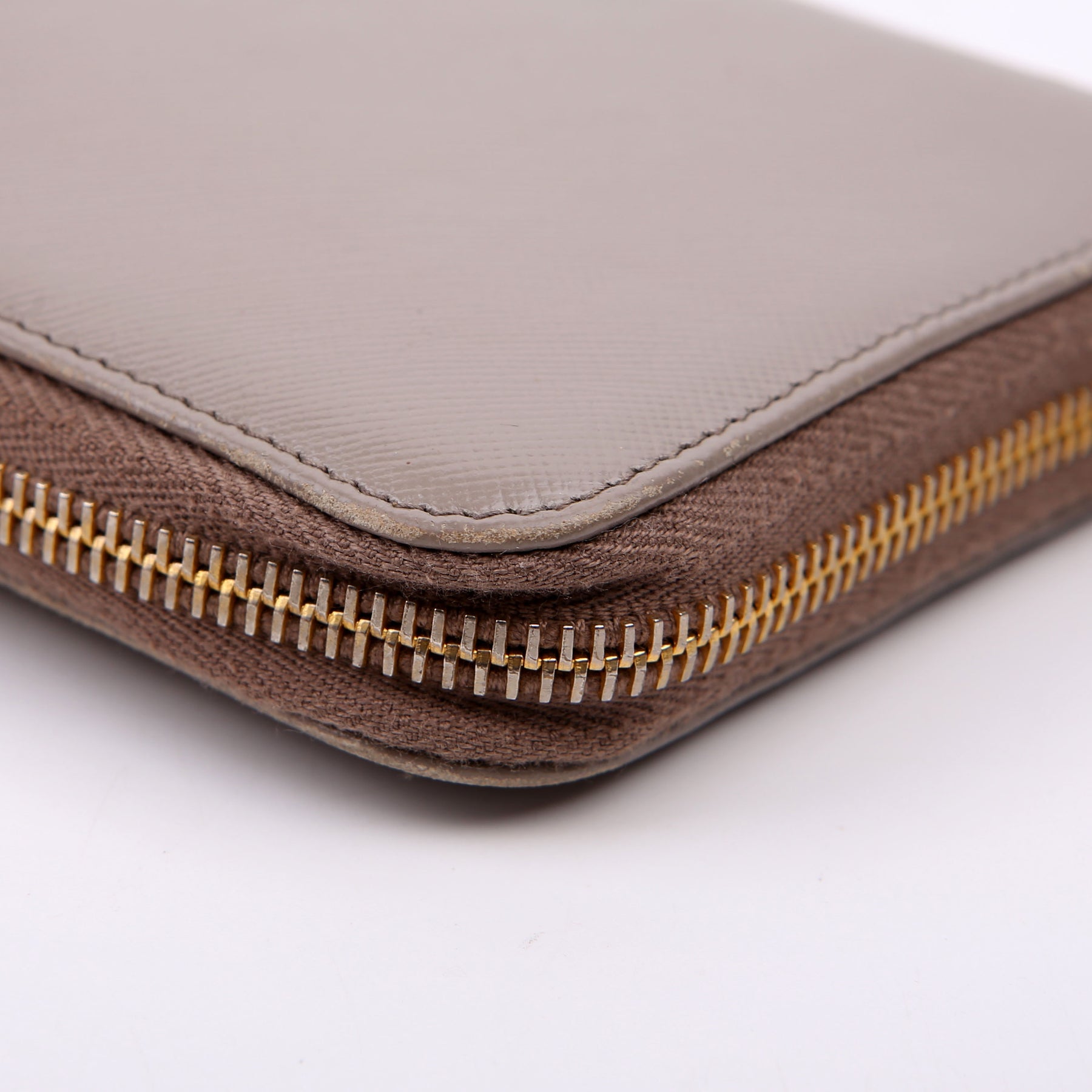 This pre-owned Prada Zip Around Wallet is guaranteed 100% authentic. The exterior is in the classic Prada Saffiano leather.