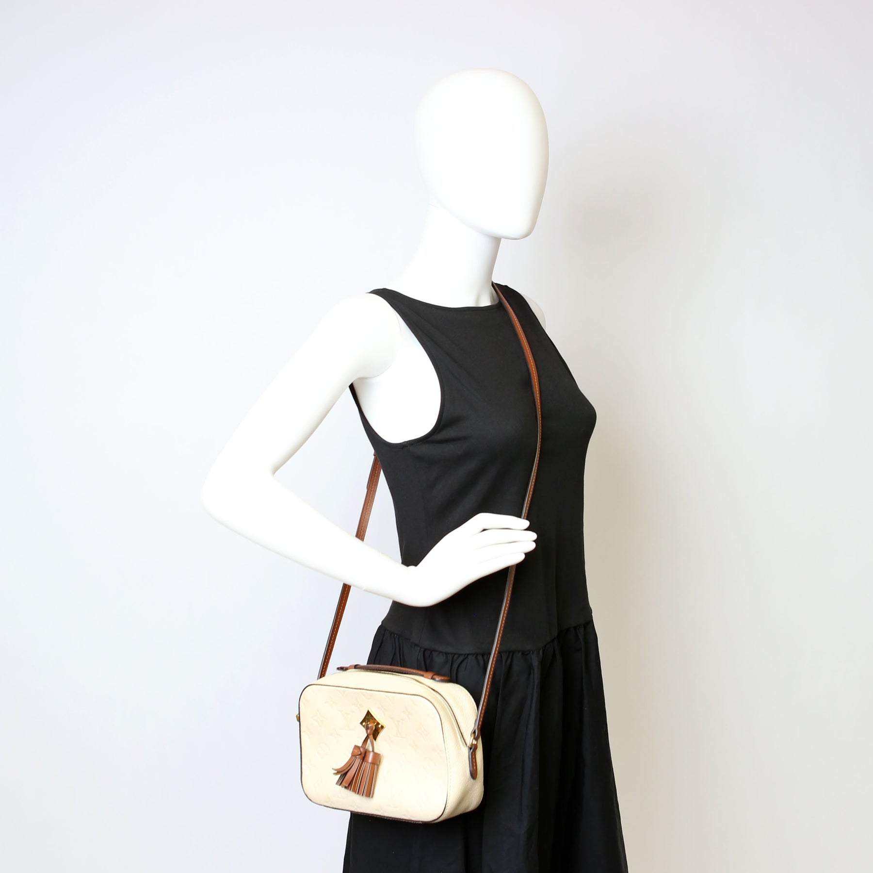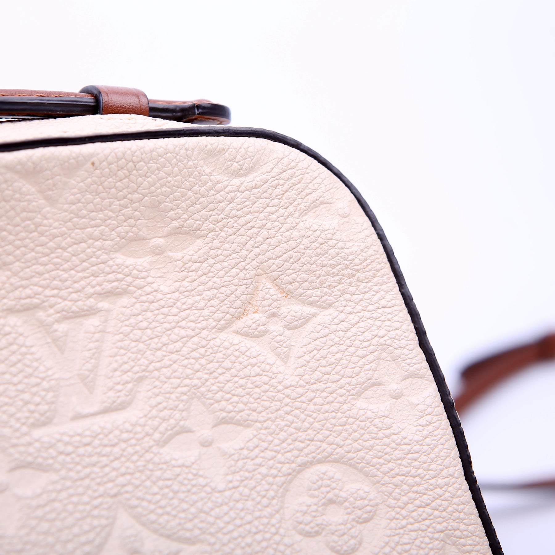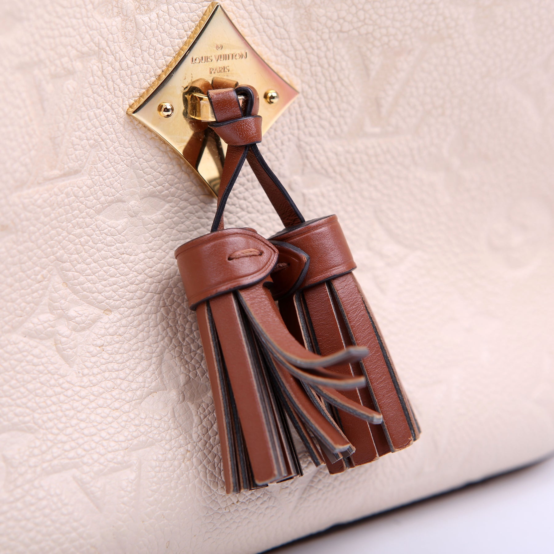 This pre-owned Louis Vuitton Saintonge is guaranteed 100% authentic. The exterior is in the Empreinte leather.