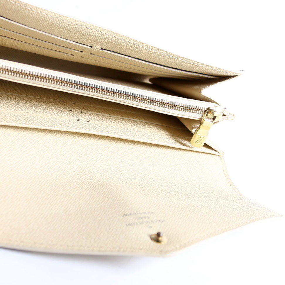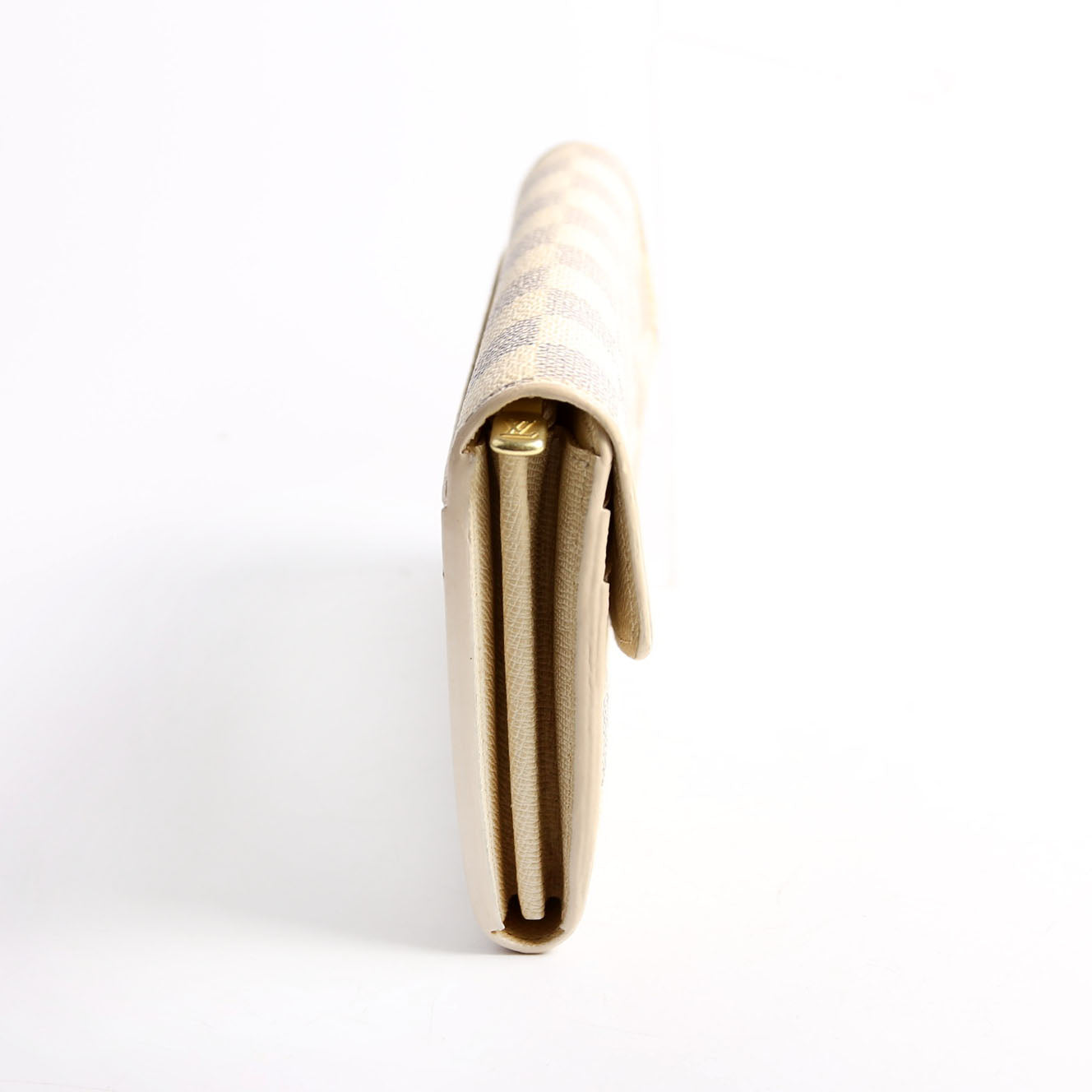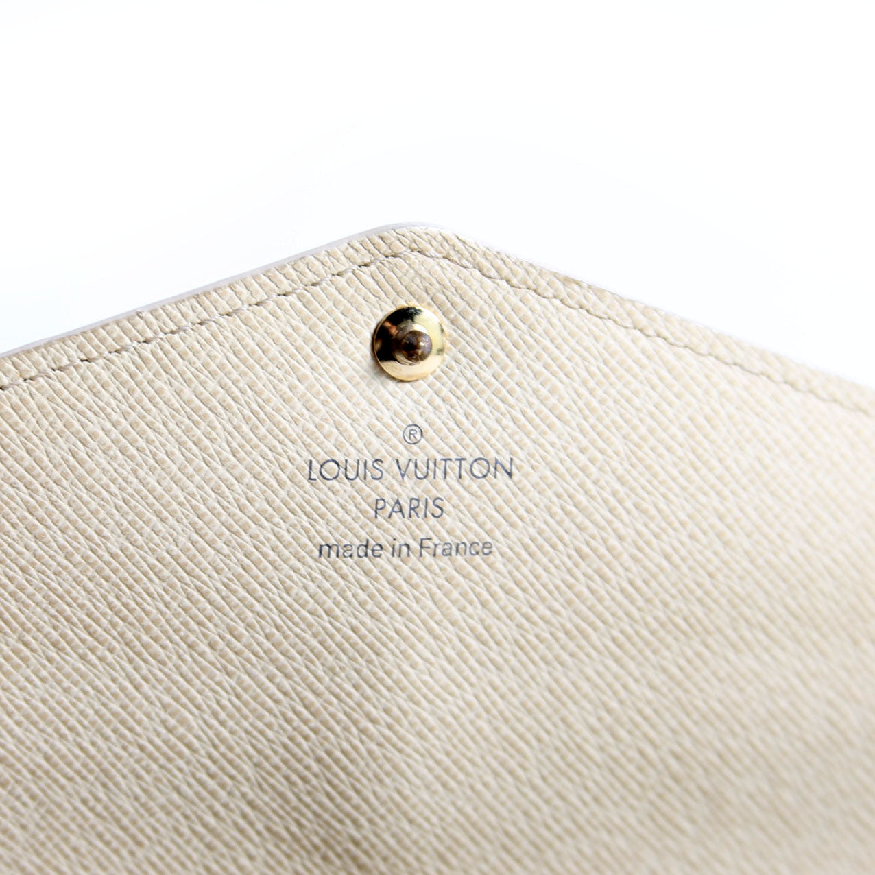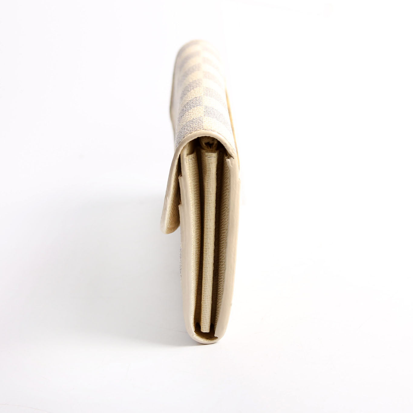 This pre-owned Louis Vuitton Sarah Wallet is guaranteed 100% authentic. The exterior is in the classic Louis Vuitton Damier Azur coated canvas.