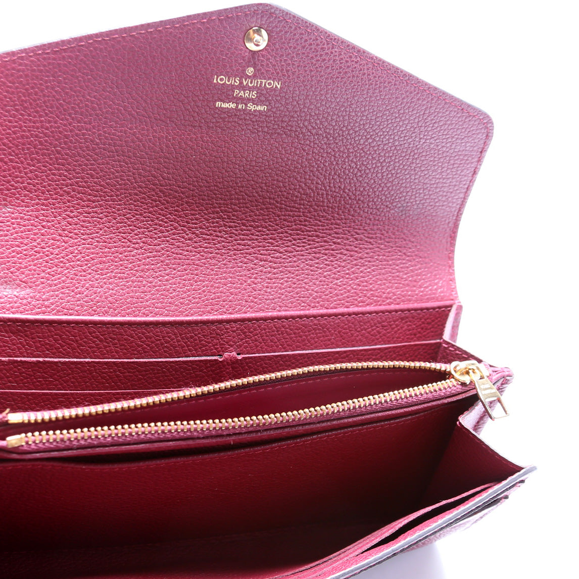 This pre-owned Louis Vuitton Sarah Wallet is guaranteed 100% authentic. The exterior is in the classic Louis Vuitton Empreinte leather.