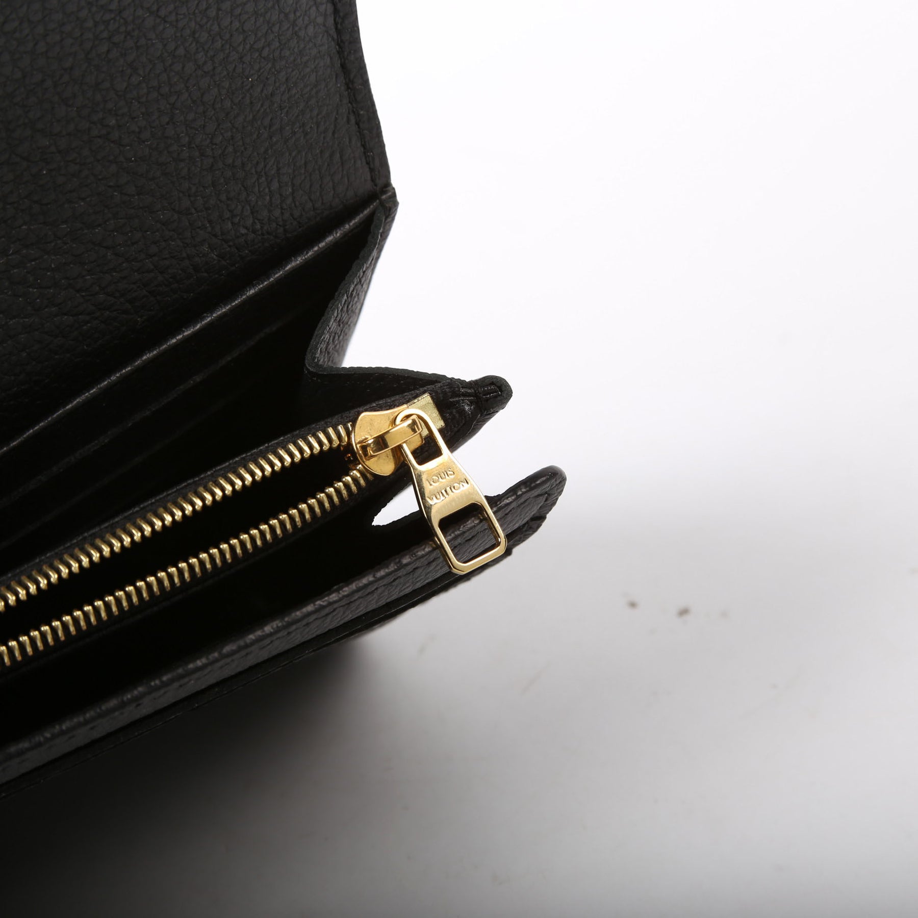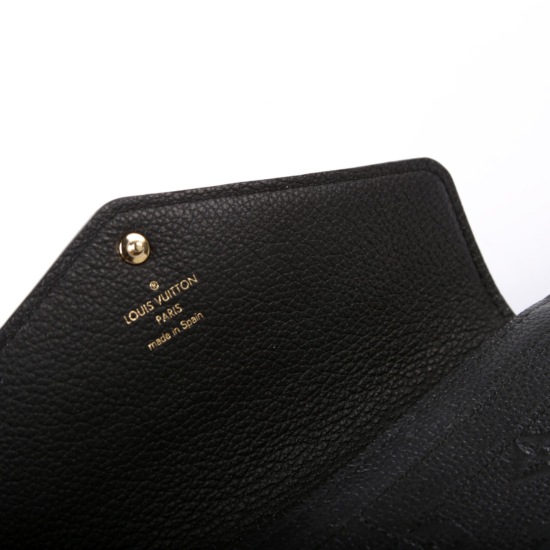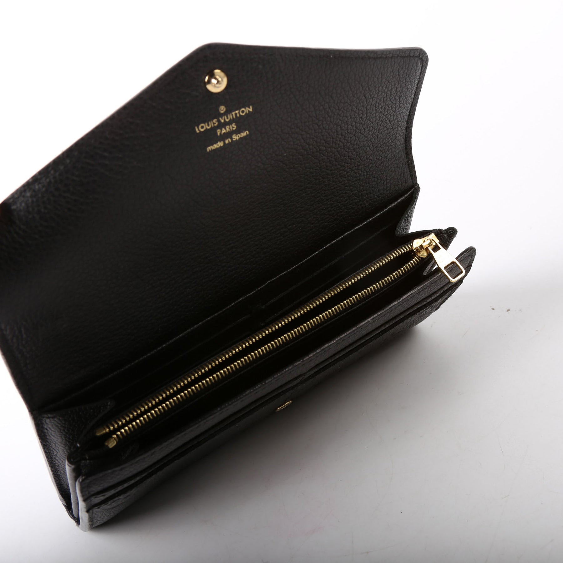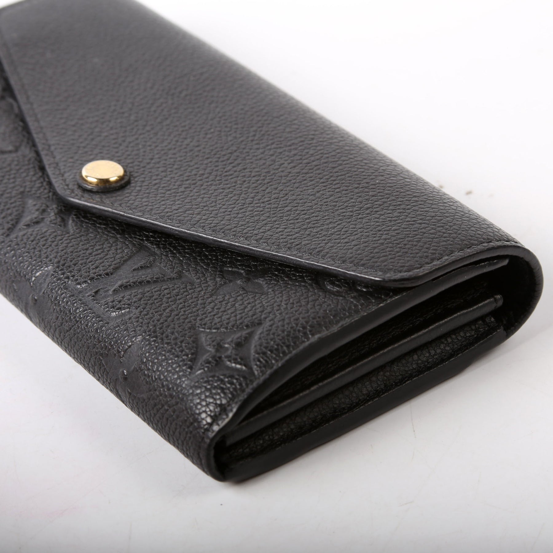 This pre-owned Louis Vuitton Sarah Wallet is guaranteed 100% authentic. The exterior is in the classic Louis Vuitton Empreinte Leather.