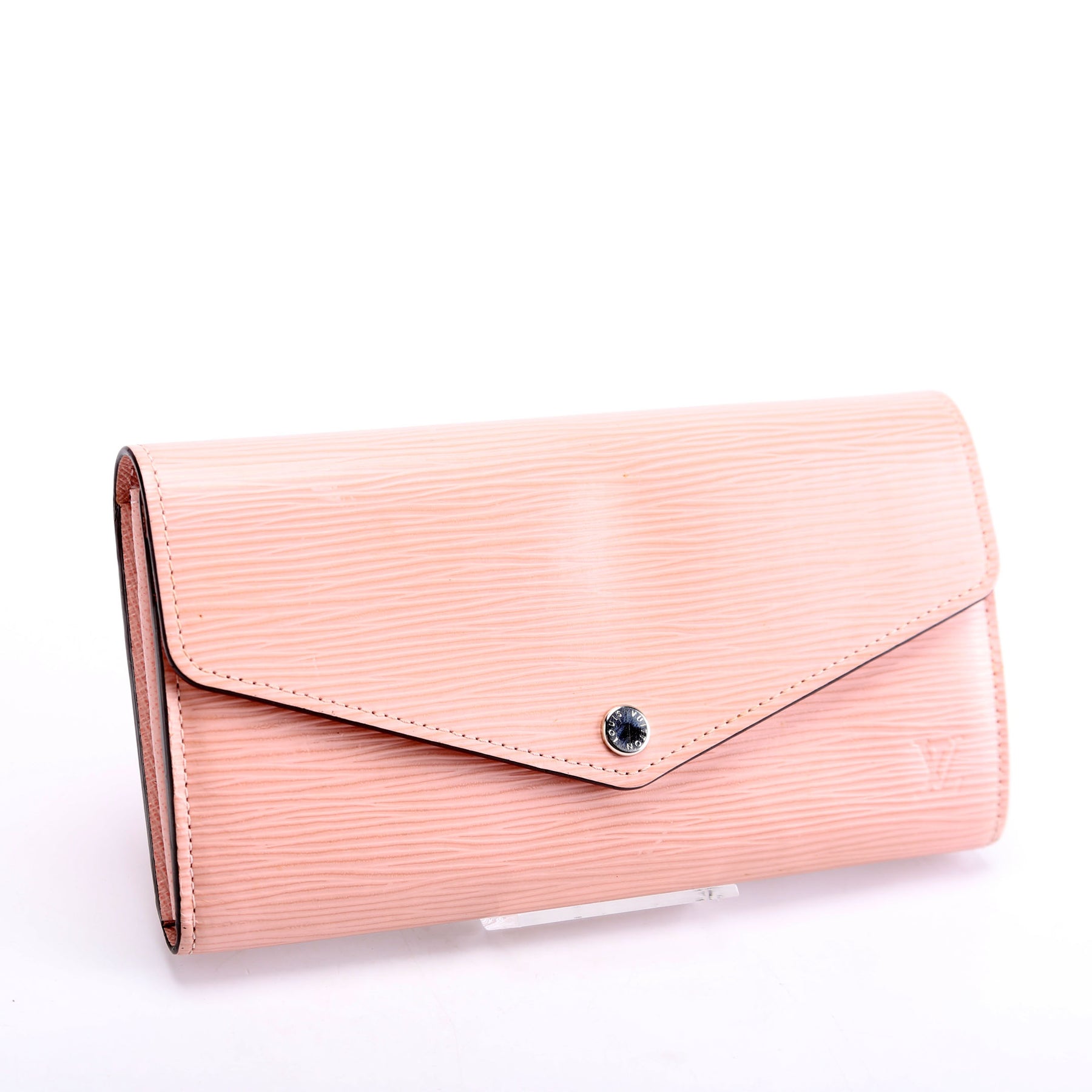 This pre-owned Louis Vuitton Sarah Wallet Newer is guaranteed 100% authentic. The exterior is in the classic Louis Vuitton Epi leather.
