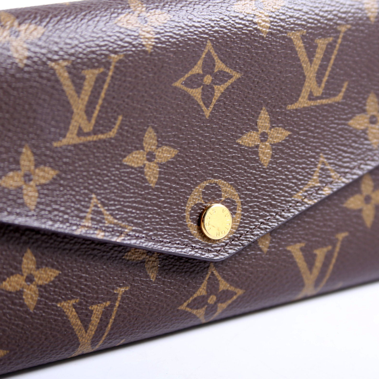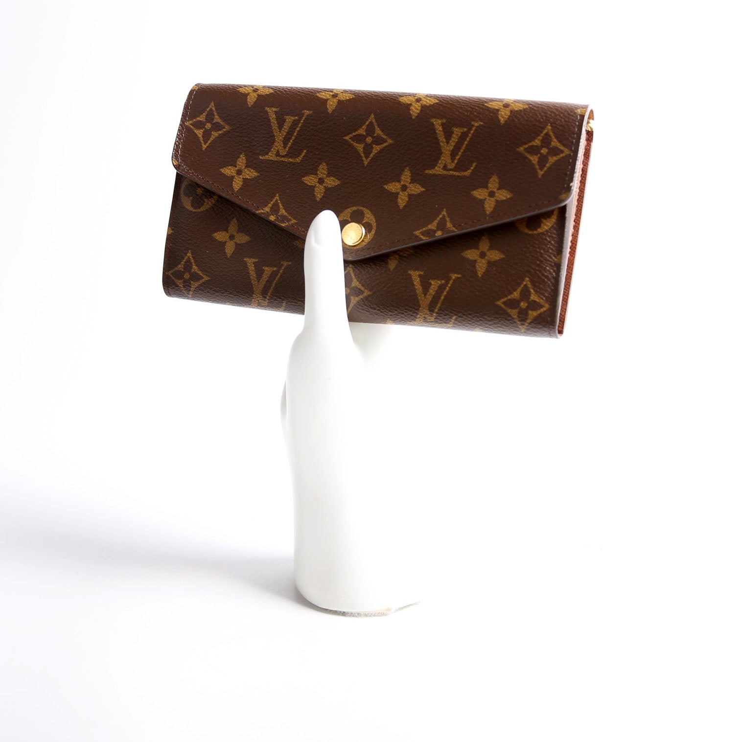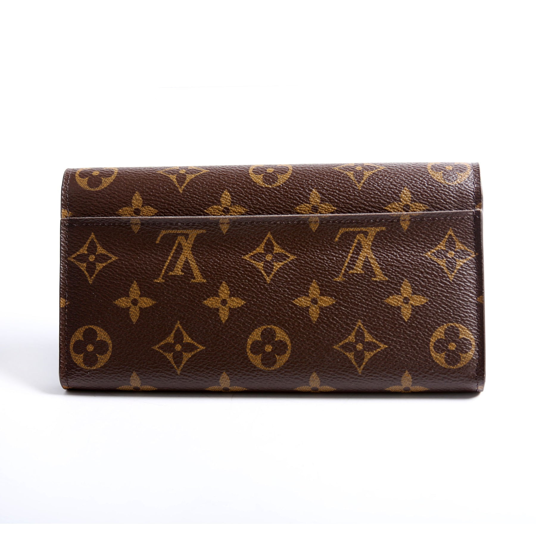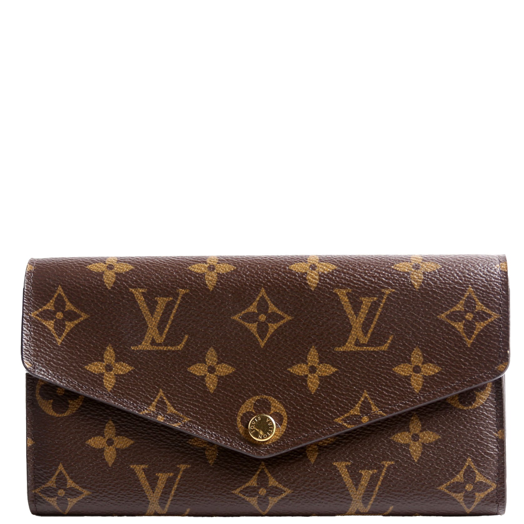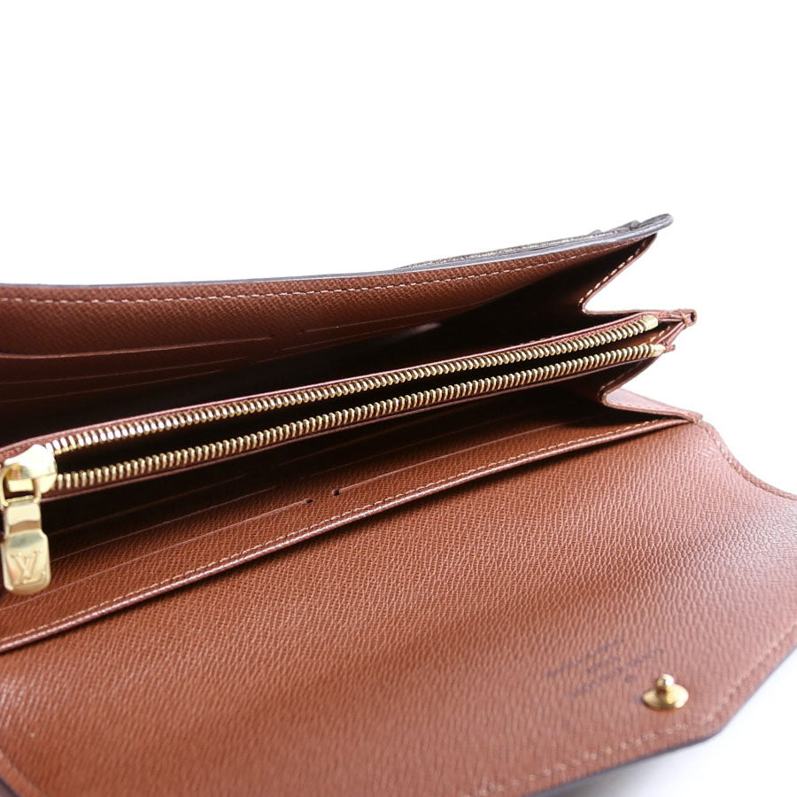 This pre-owned Louis Vuitton Sarah Wallet NEwer is guaranteed 100% authentic. The exterior is in the classic Louis Vuitton Monogram coated canvas.