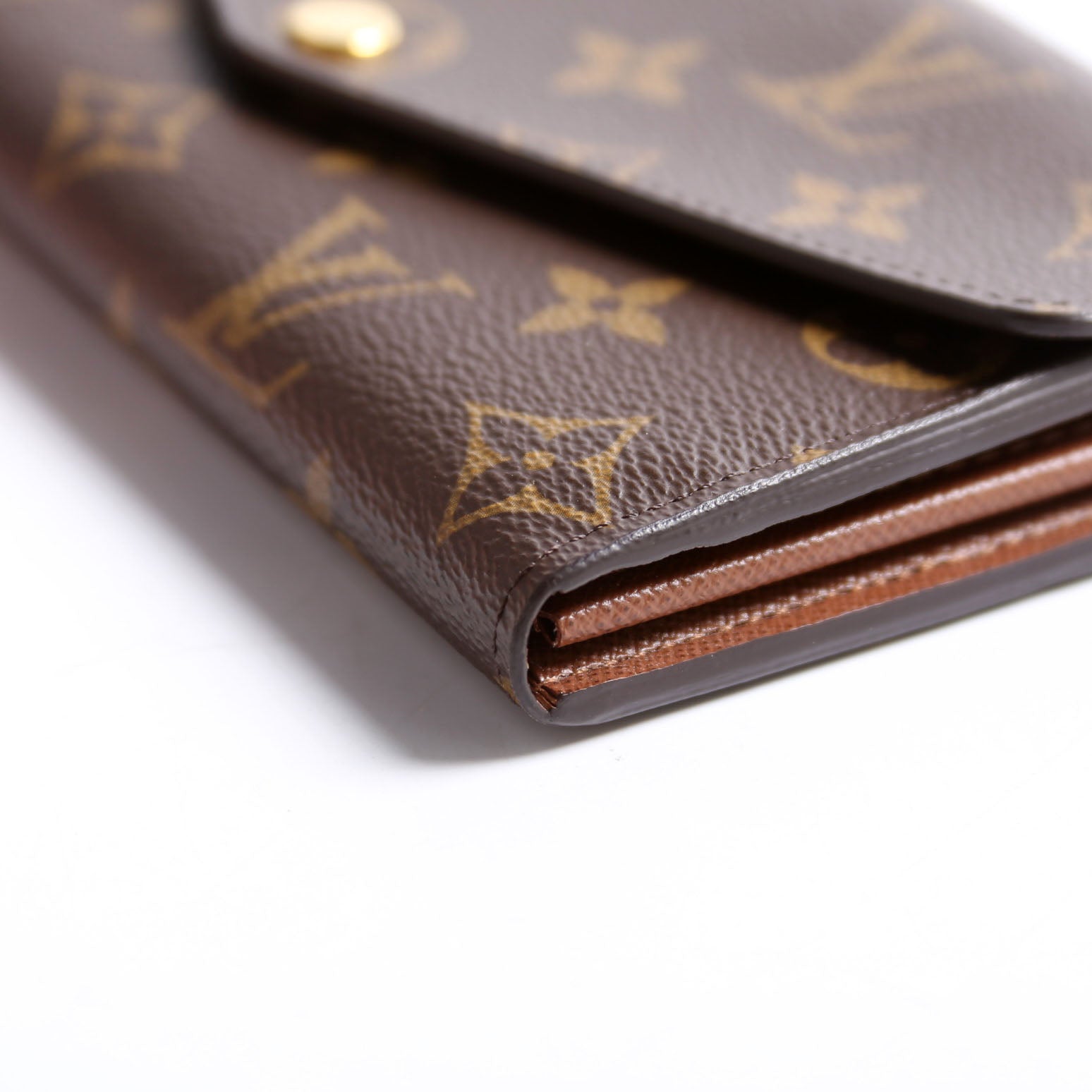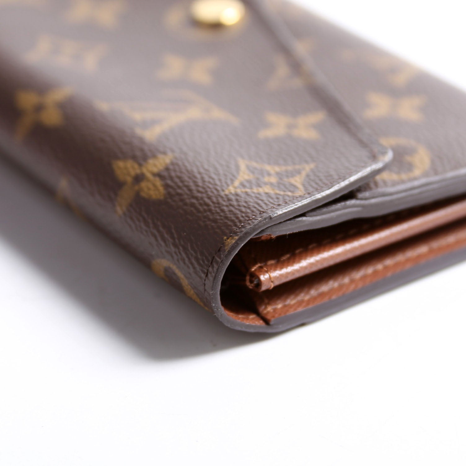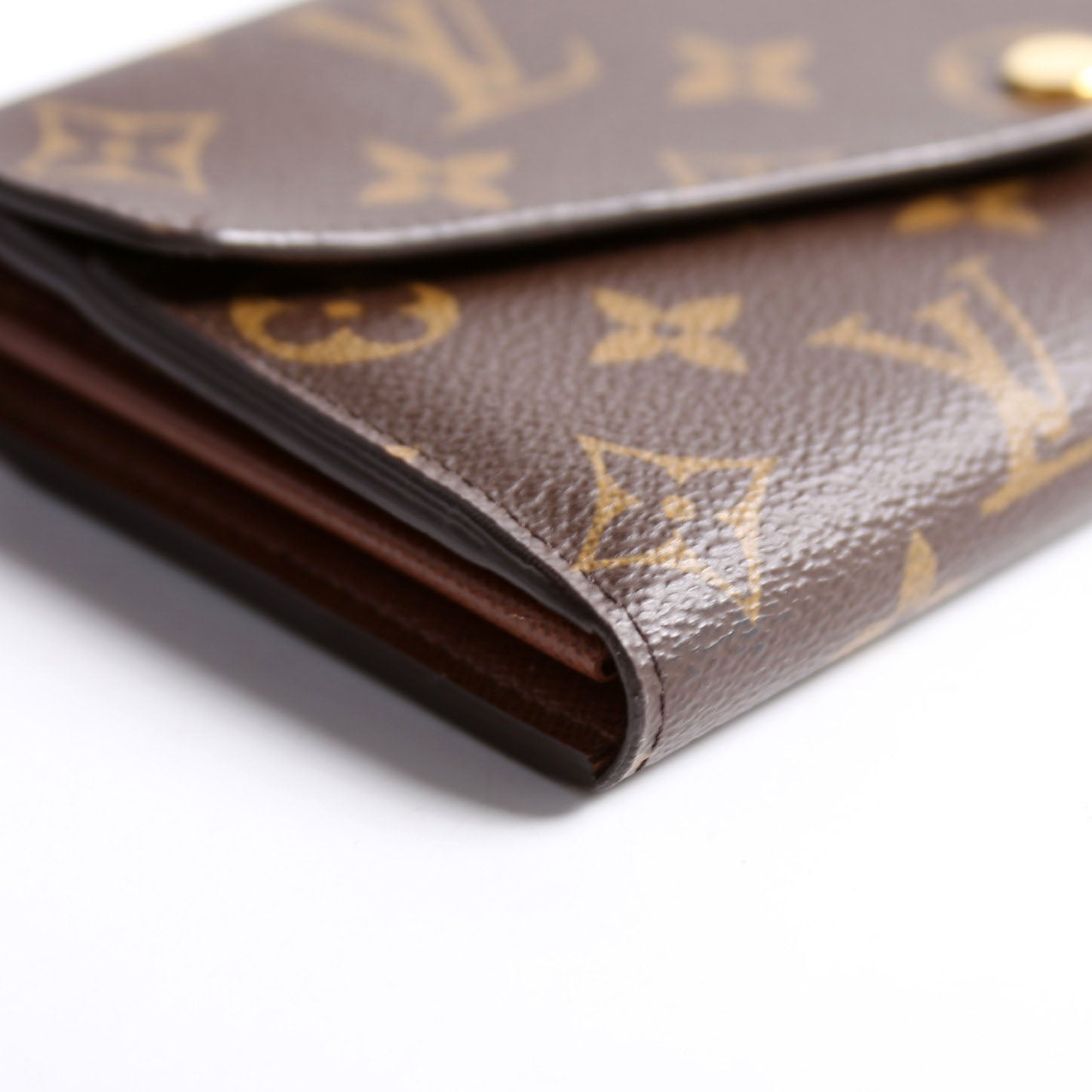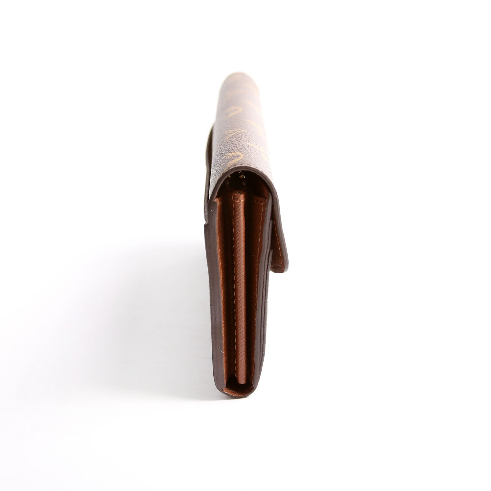 This pre-owned Louis Vuitton Sarah Wallet NEwer is guaranteed 100% authentic. The exterior is in the classic Louis Vuitton Monogram coated canvas.