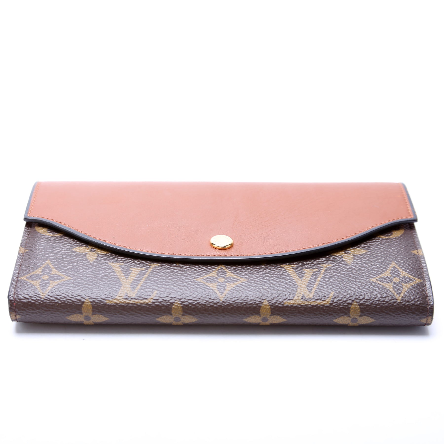 This pre-owned Louis Vuitton Sarah Wallet Tuileries is guaranteed 100% authentic. The exterior is in the classic Louis Vuitton Monogram coated canvas.