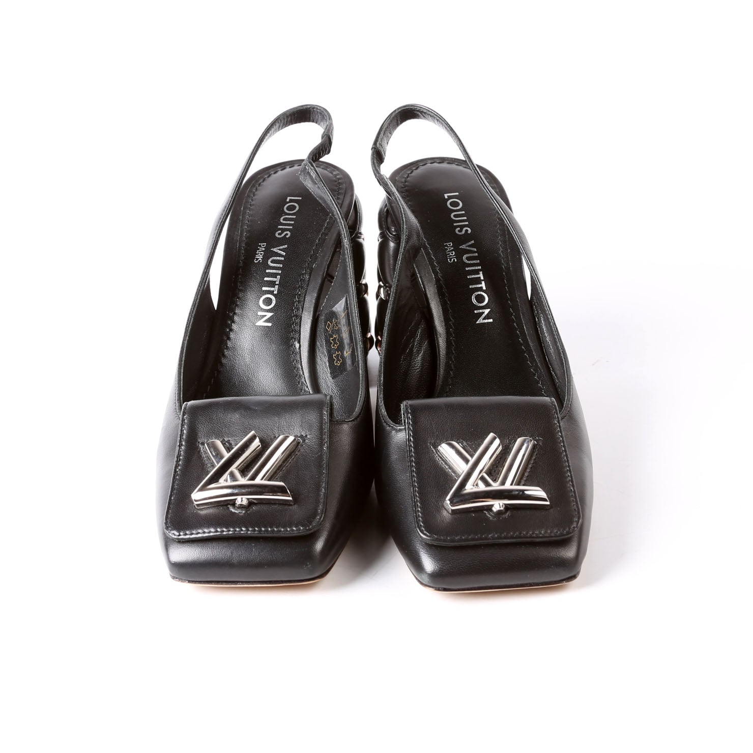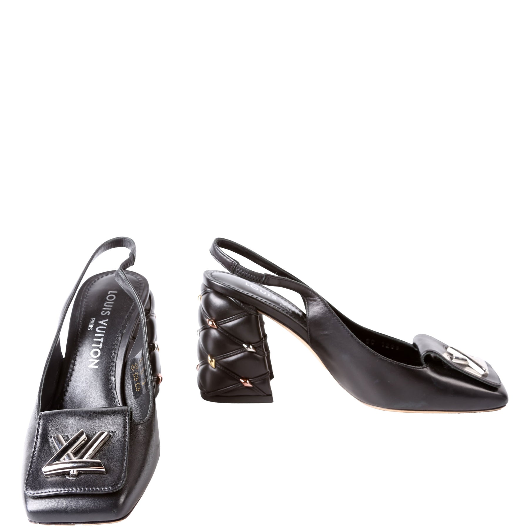 These pre-owned Louis Vuitton Shake Slingback Pumps are guaranteed 100% authentic.