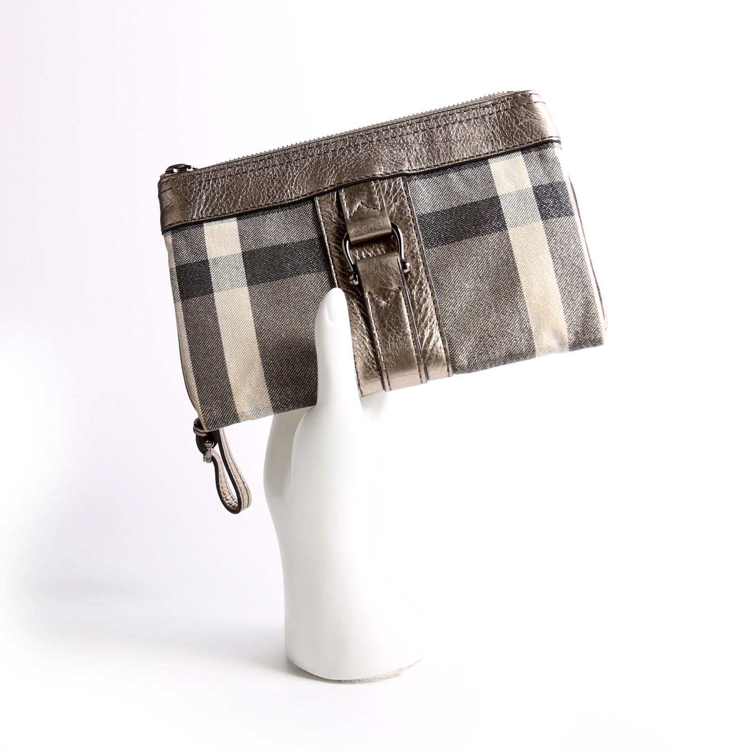This pre-owned Burberry Check Wristlet Pouch is guaranteed 100% authentic. The exterior is in the classic Burberry Check Pattern.
