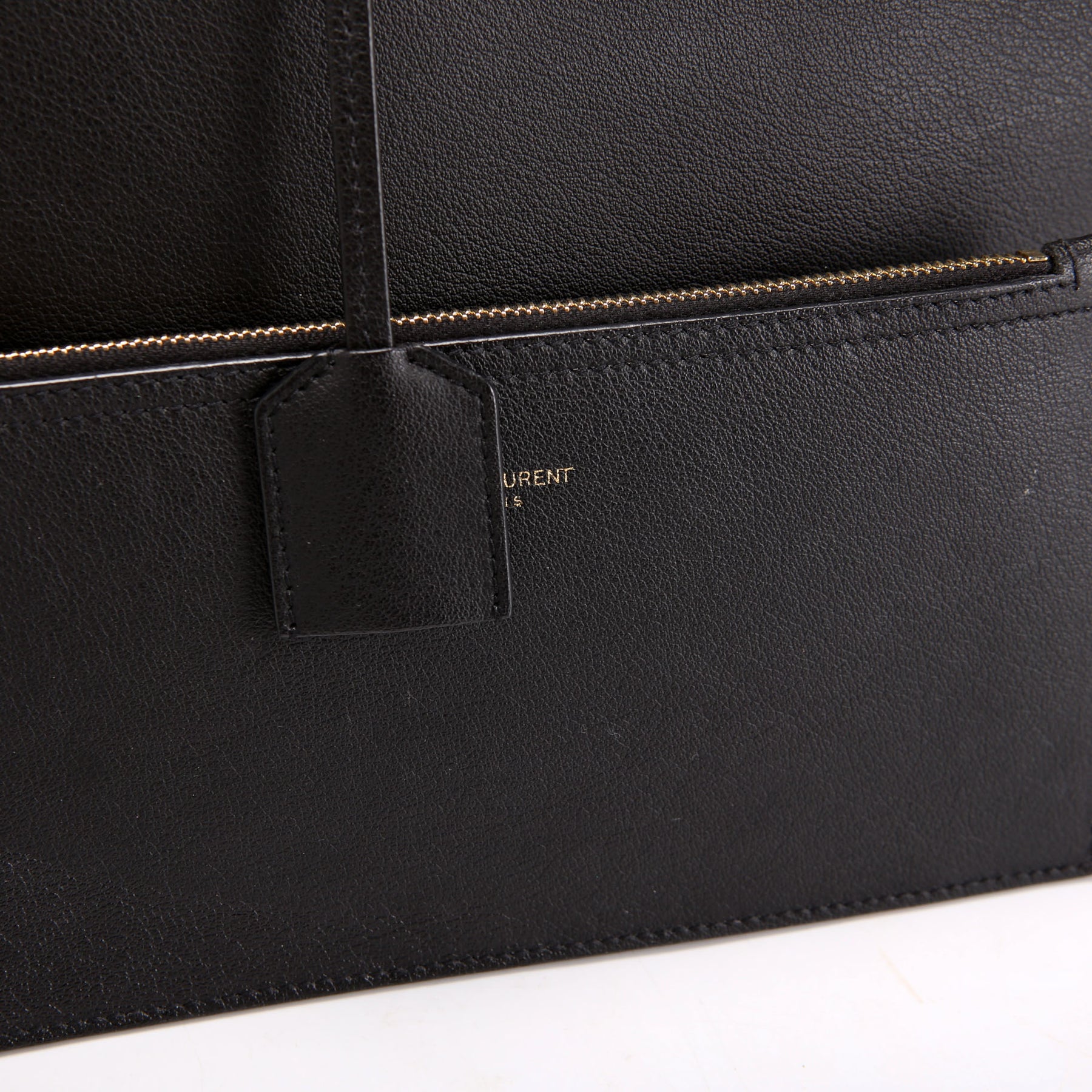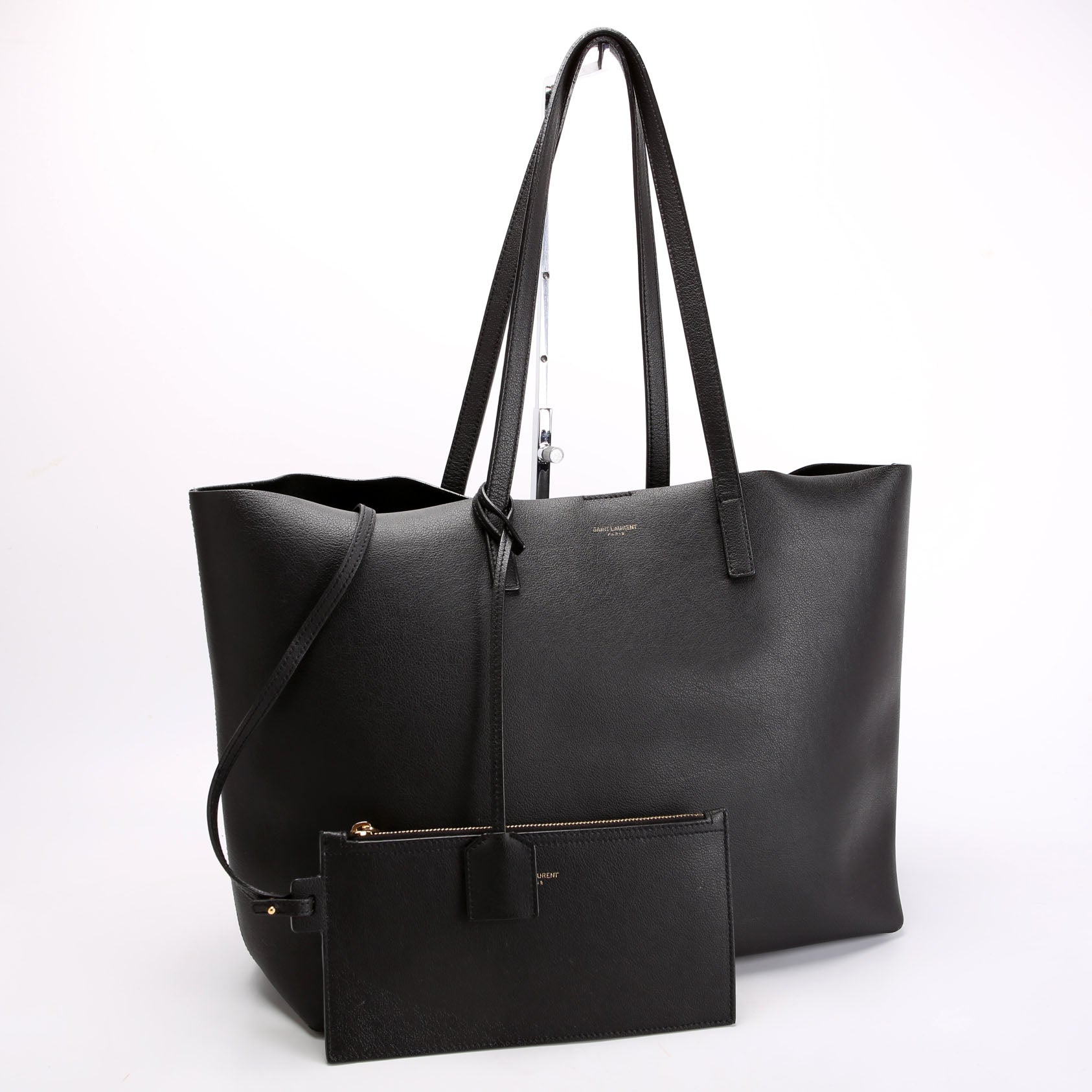 This pre-owned Saint Laurent East/West Shopping Tote is guaranteed 100% authentic. The exterior is in the classic Saint Laurent leather.