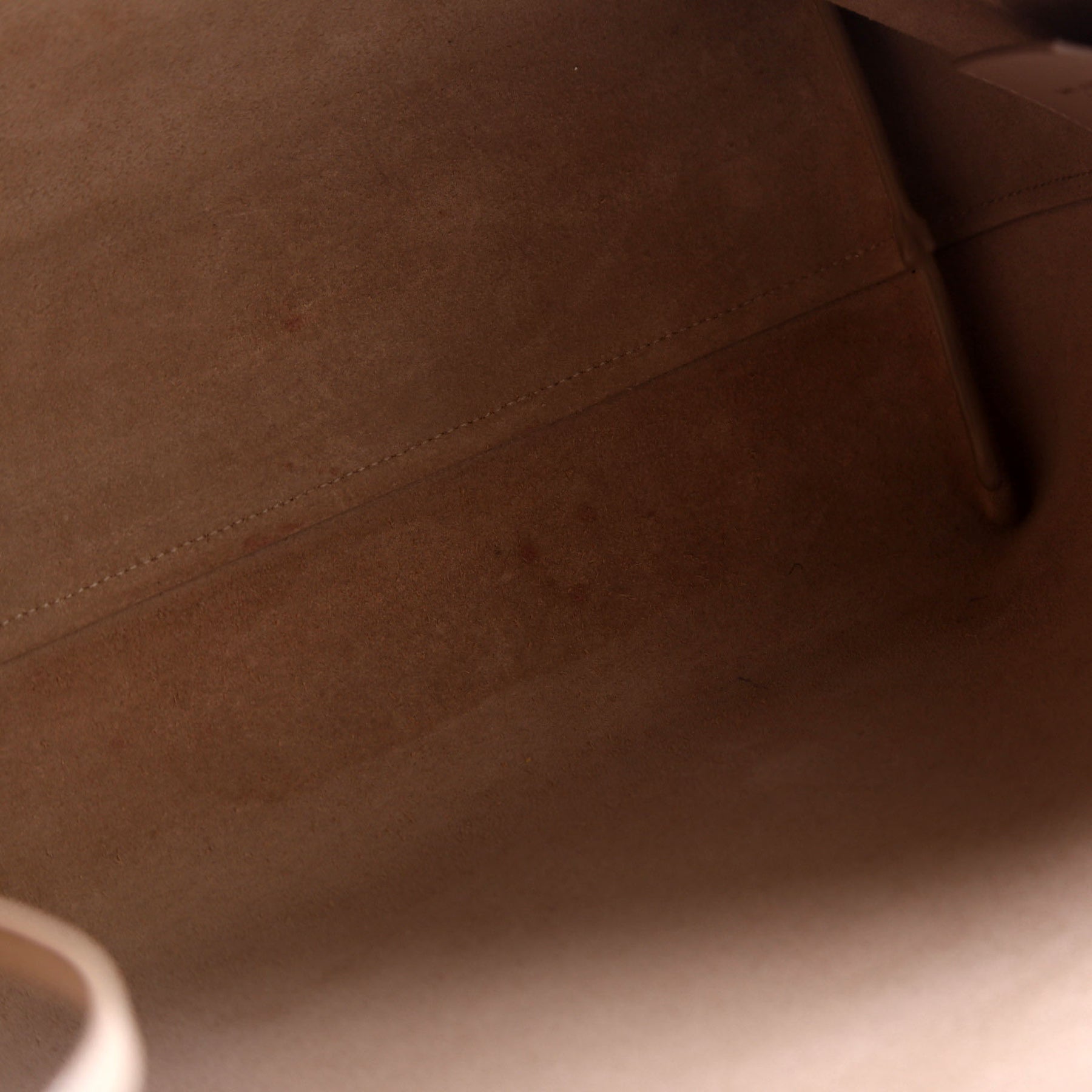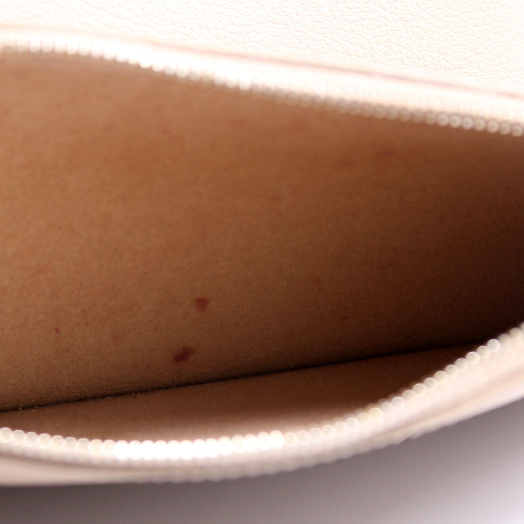 Interior: The interior is discolored at the bottom and features one detachable zip closure pouch.