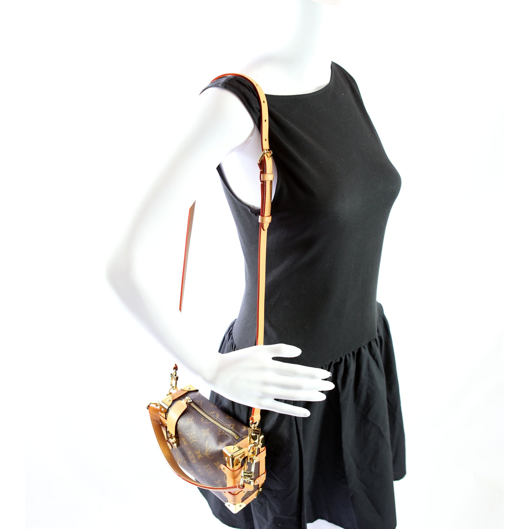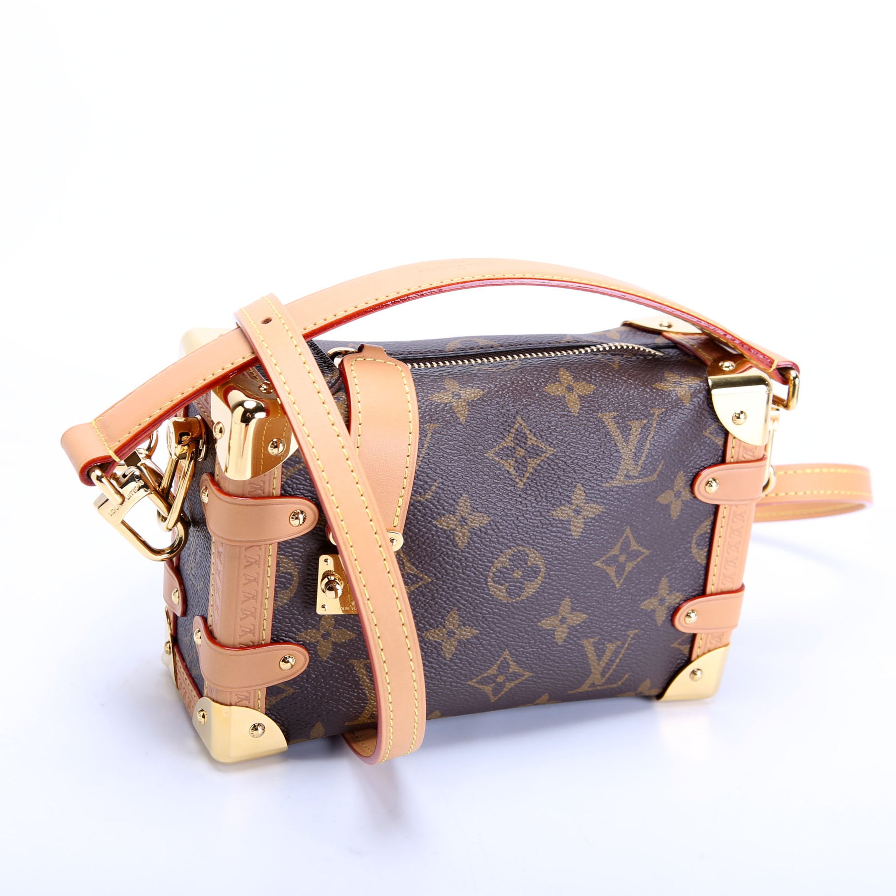 This pre-owned Louis Vuitton Side Trunk PM is guaranteed 100% authentic. The exterior is in the classic Louis Vuitton Coated Canvas Monogram.