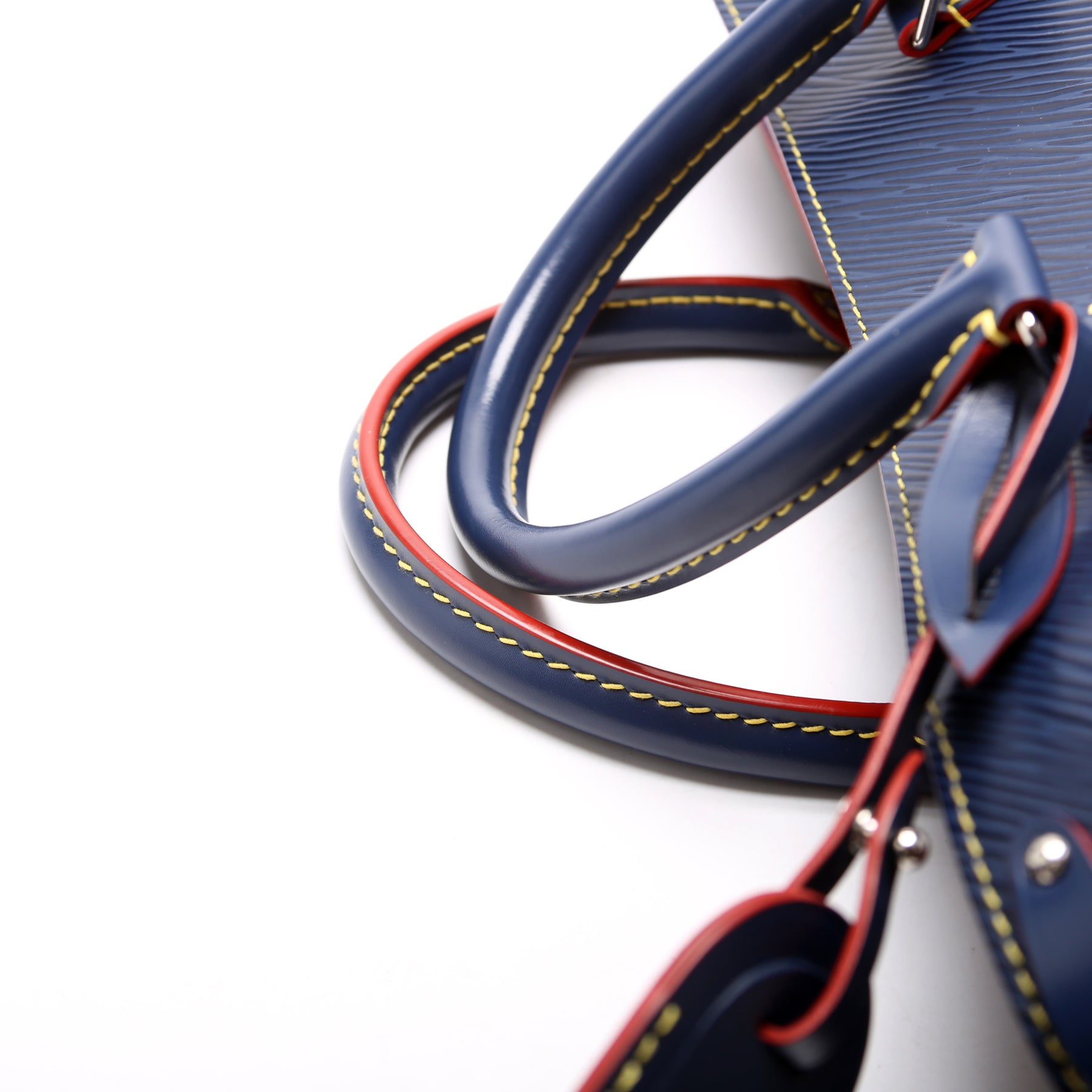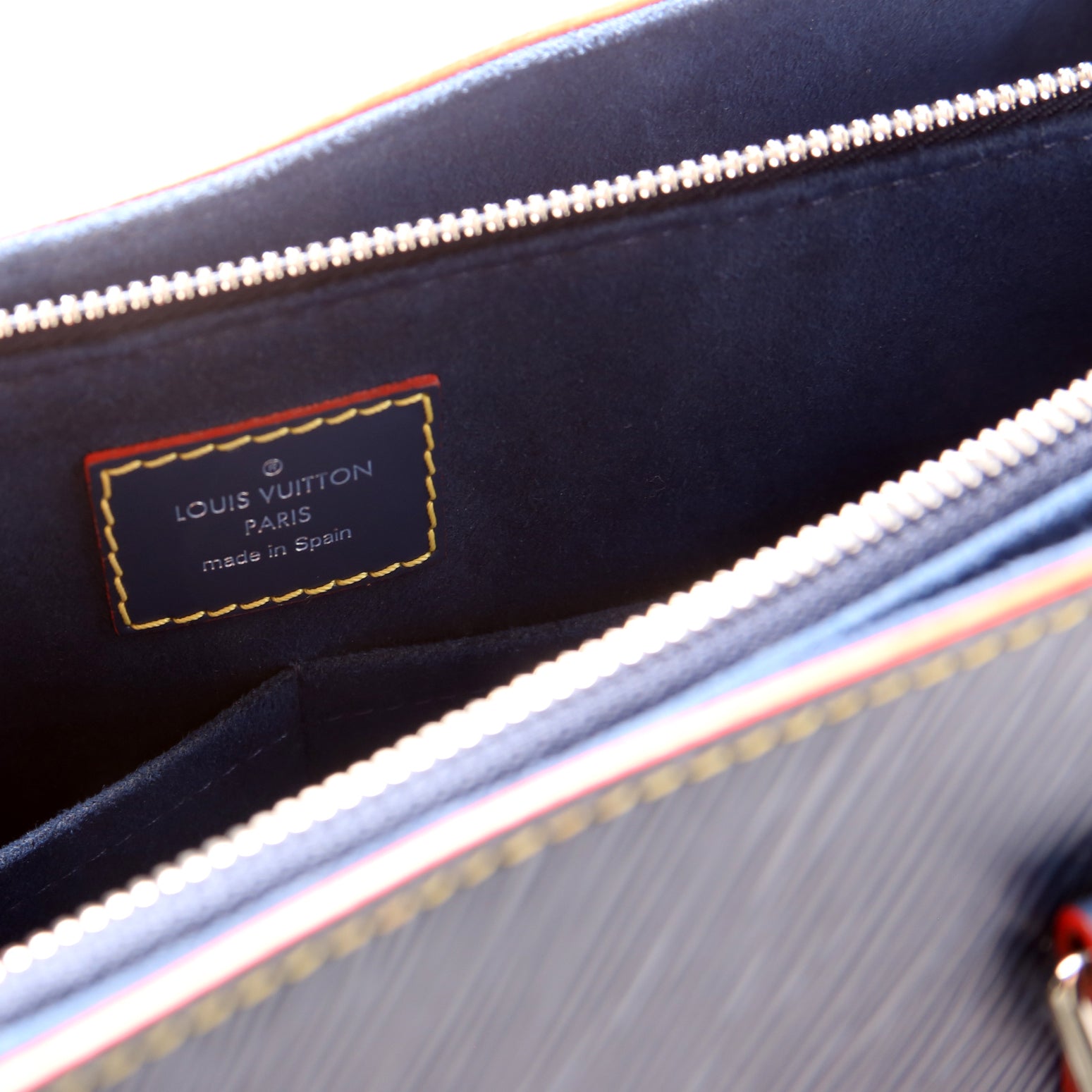 This pre-owned Louis Vuitton Soufflot MM is guaranteed 100% authentic. The exterior is in the classic Louis Vuitton Epi leather.