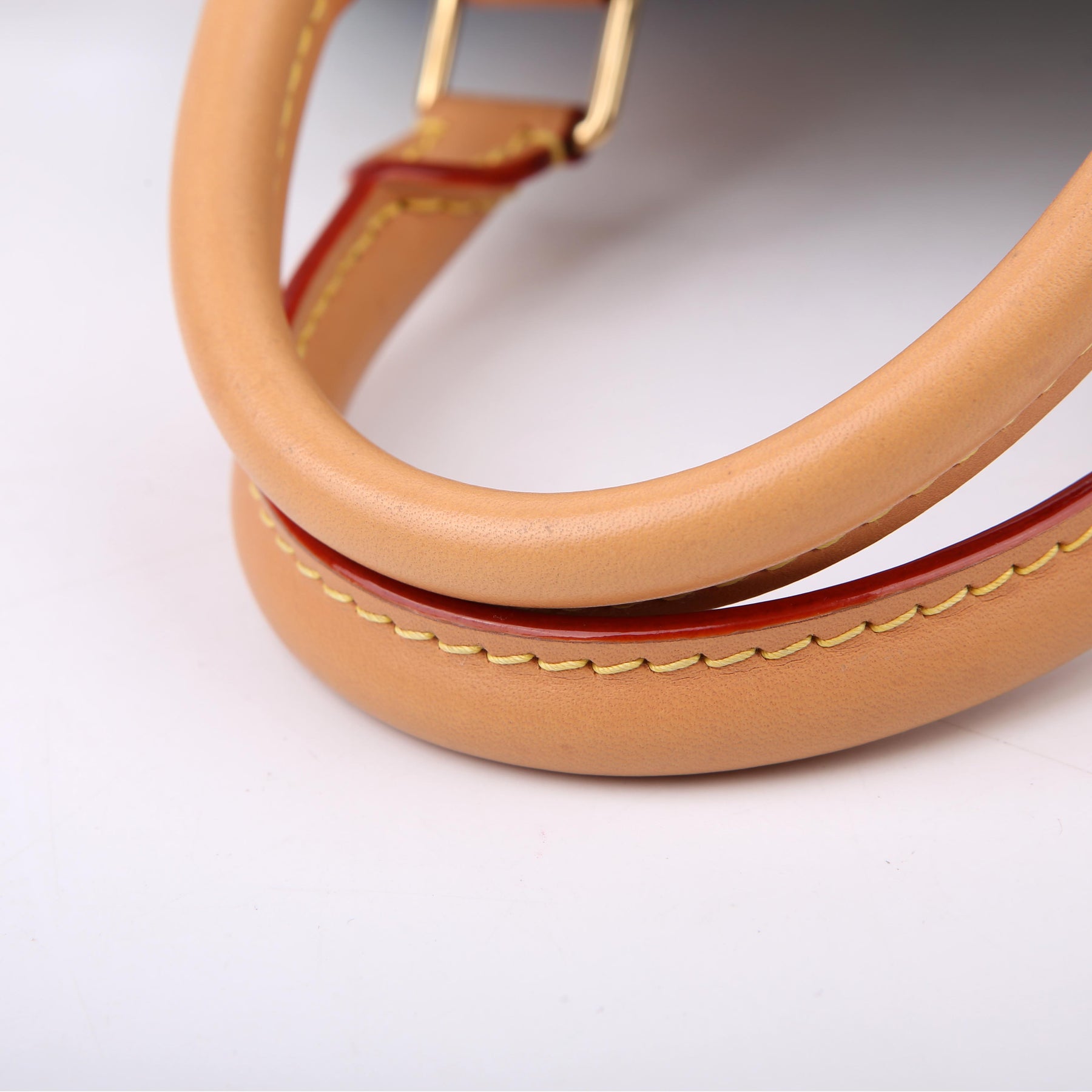 Handle: The leather handles show minor wear.