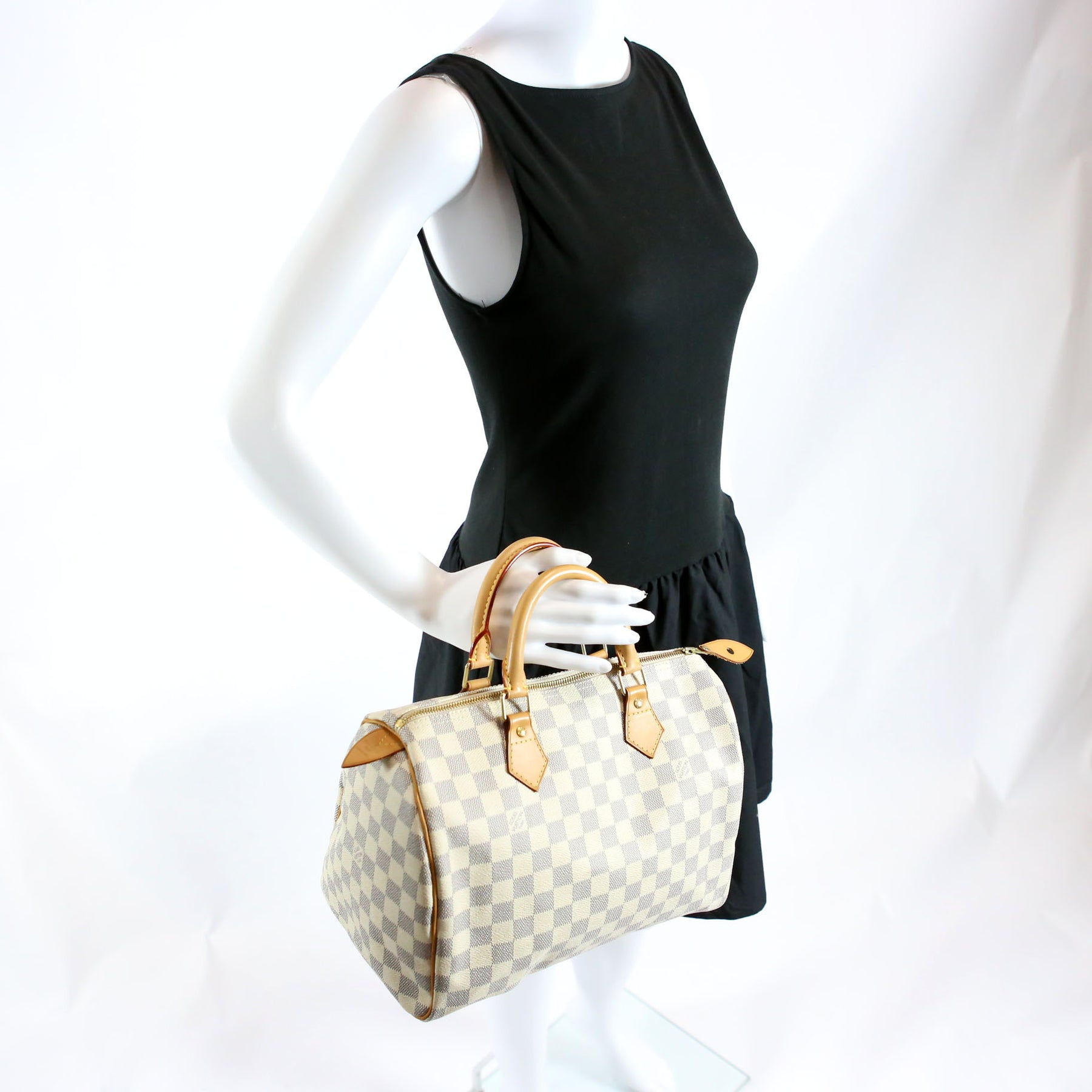 This pre-owned Louis Vuitton Speedy 30 is guaranteed 100% authentic. The exterior is in the classic Louis Vuitton Monogram coated canvas.