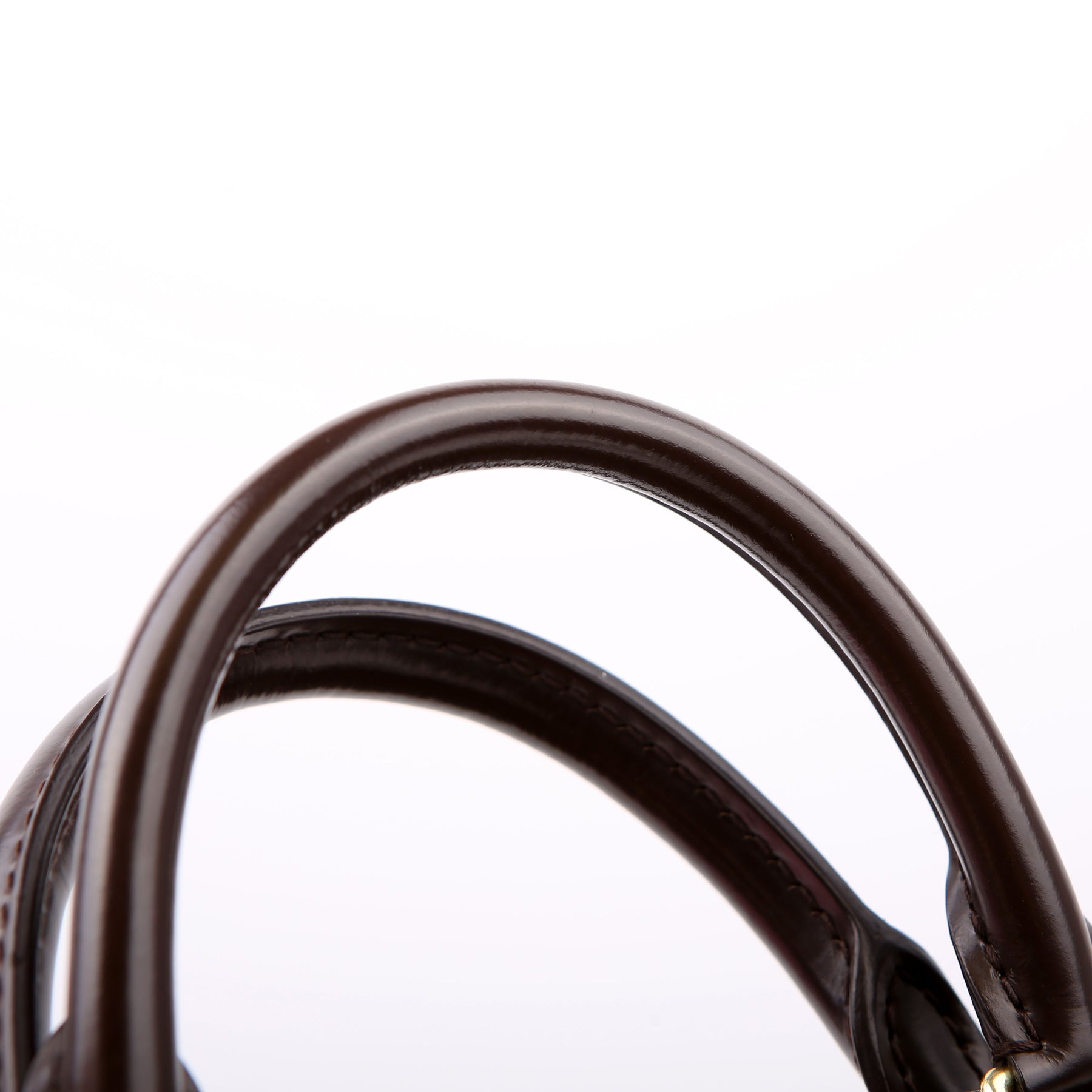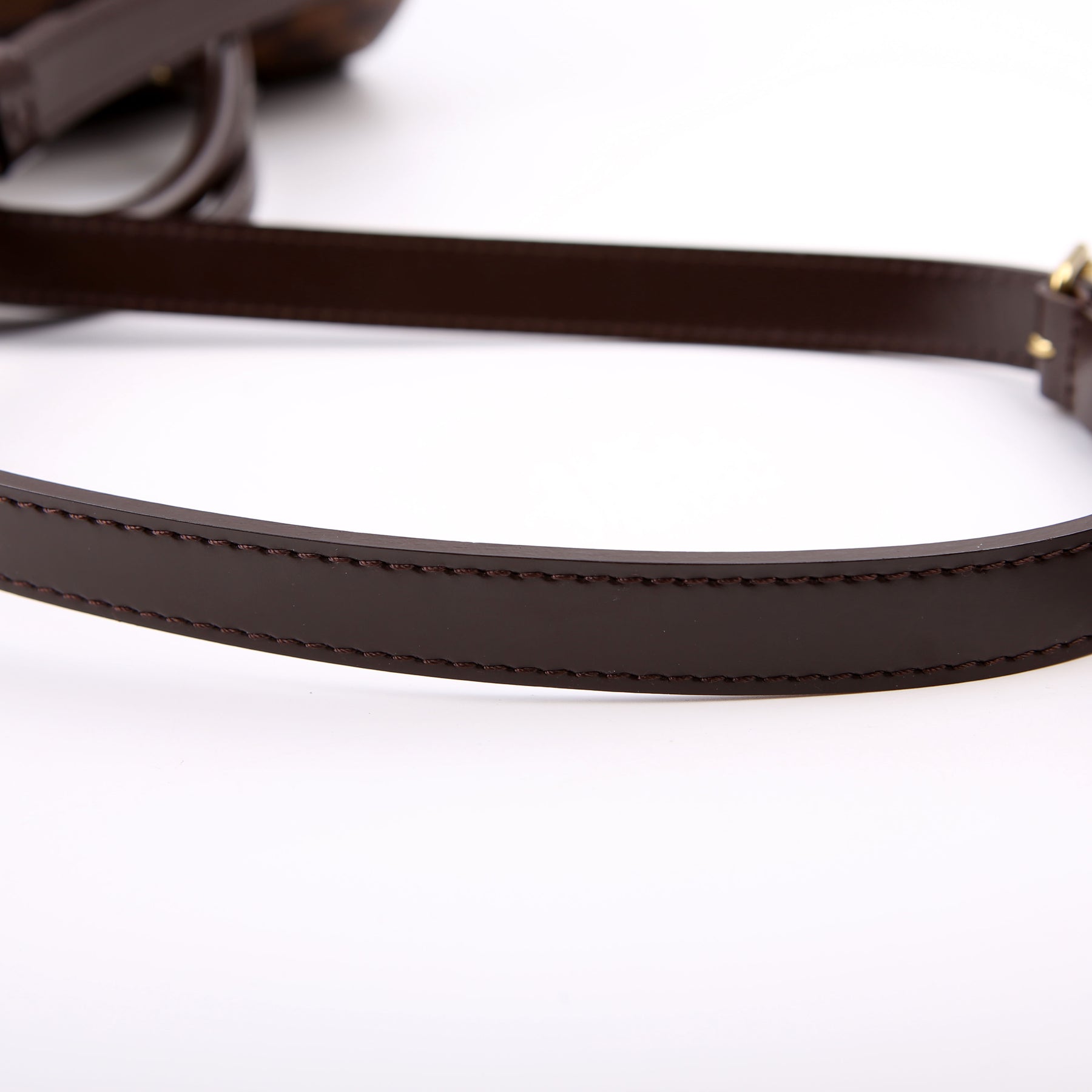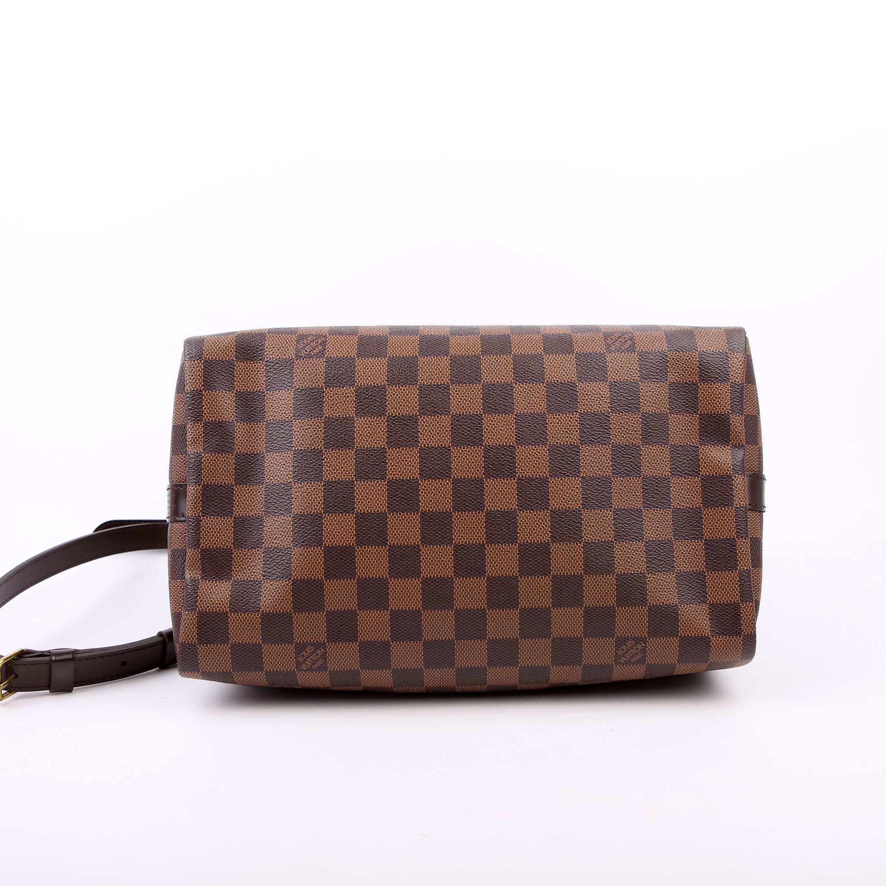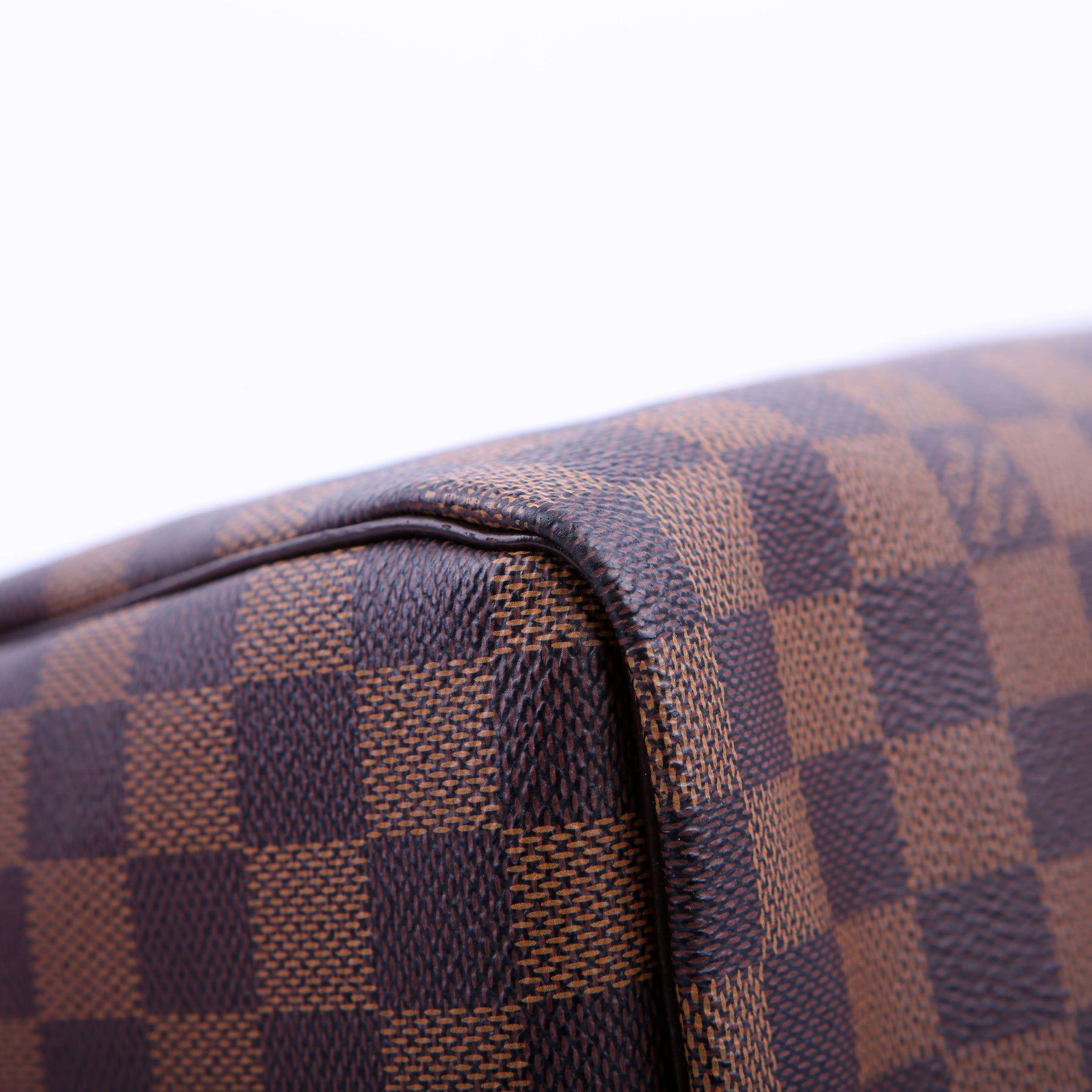 This pre-owned Louis Vuitton Speedy 30 Bandouliere is guaranteed 100% authentic. The exterior is in the classic Louis Vuitton Damier Ebene Coated Canvas.